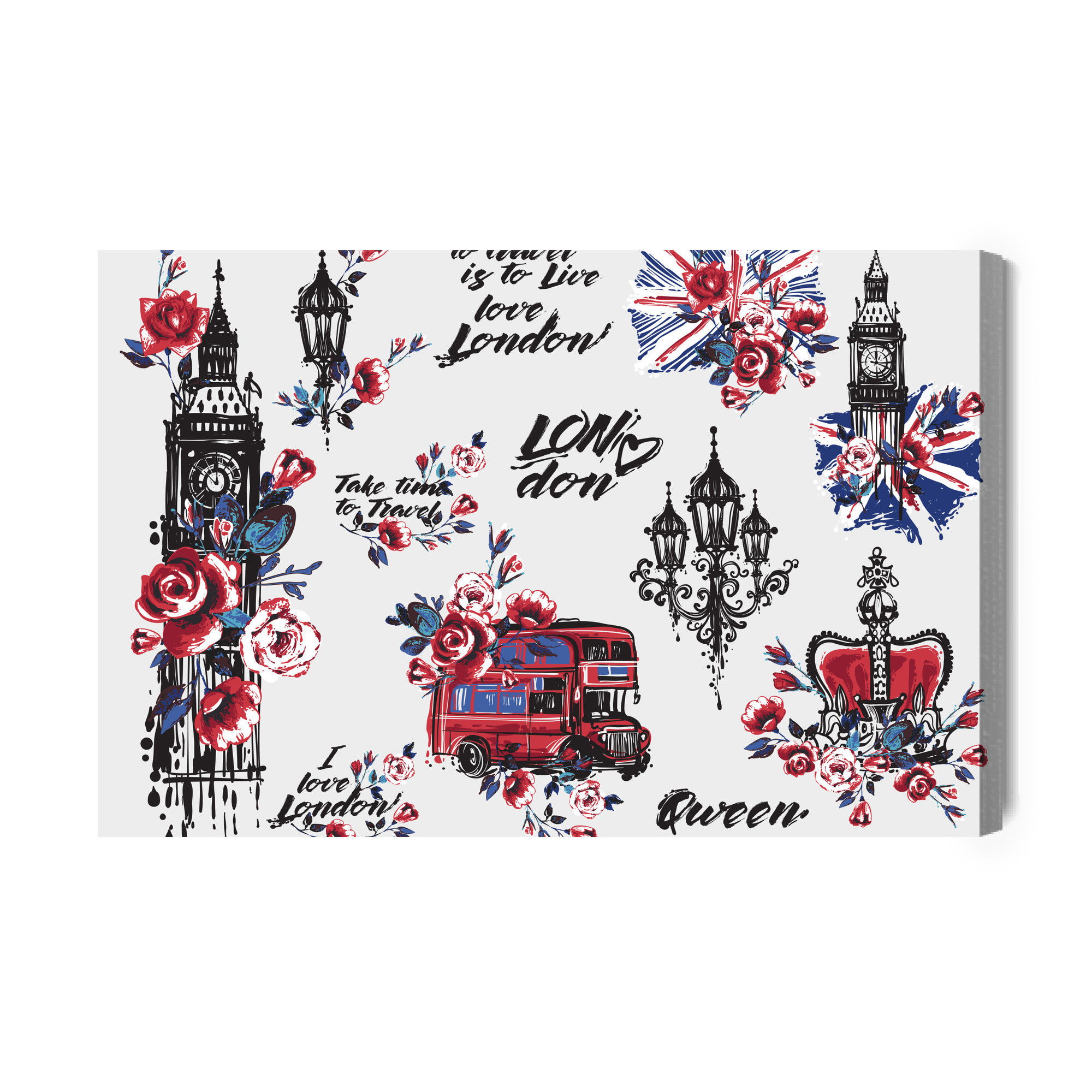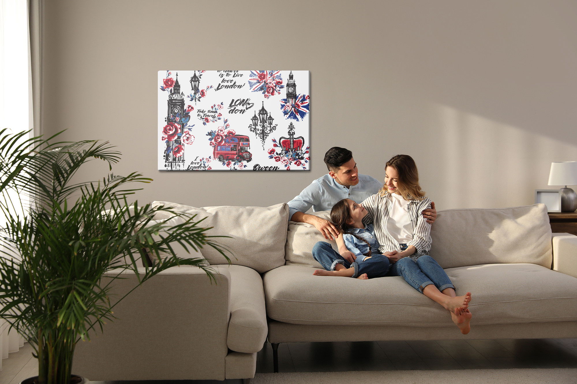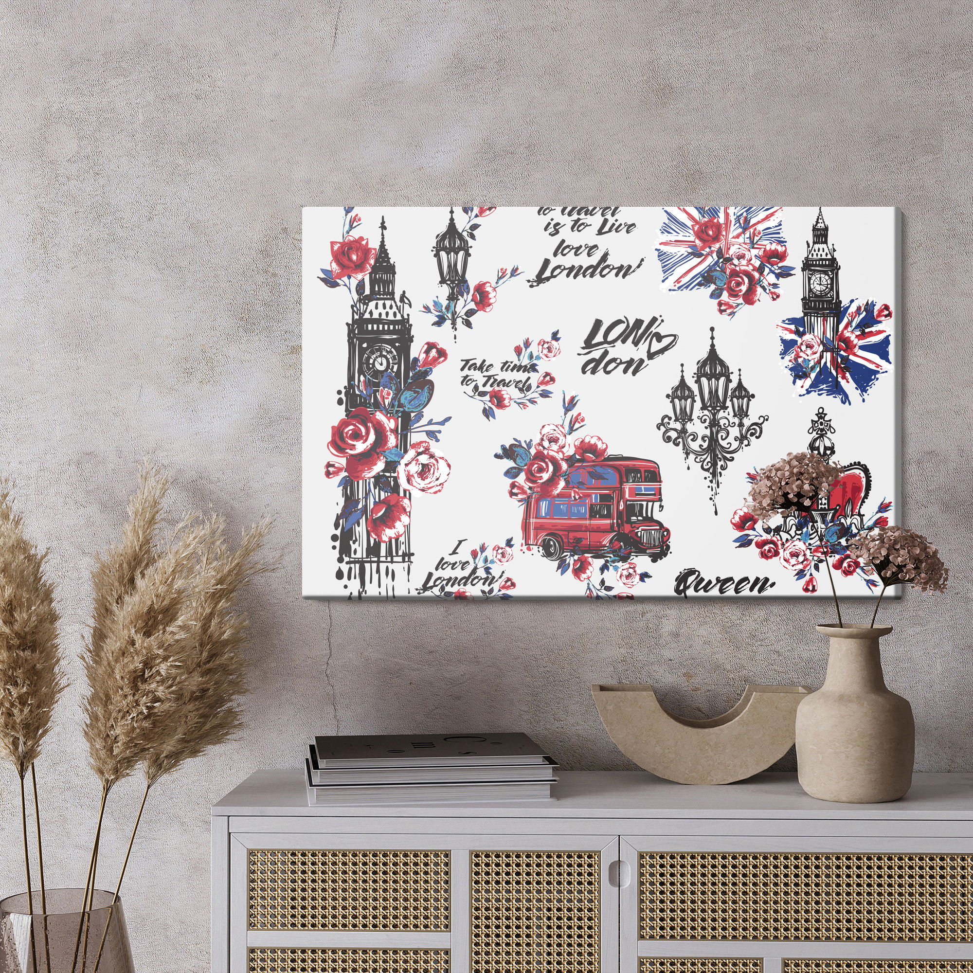 Ljuddämpande tavla – London symbols and flowers för lugnare rum och mjukare akustik