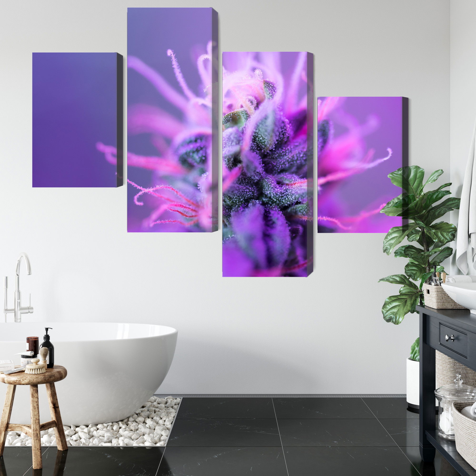 Motivet Macro plant on a pink-purple återges med hög färgprecision och detaljrikedom tack vare HP Latex-teknologi. Trycket sker med vattenbaserade, luktfria och GREENGUARD Gold-certifierade bläck som ger en upplösning på upp till 300 DPI. Färgerna är UV-beständiga och behåller sin styrka även i ljusa rum, vilket gör tavlan lämplig för både hem- och offentliga miljöer.