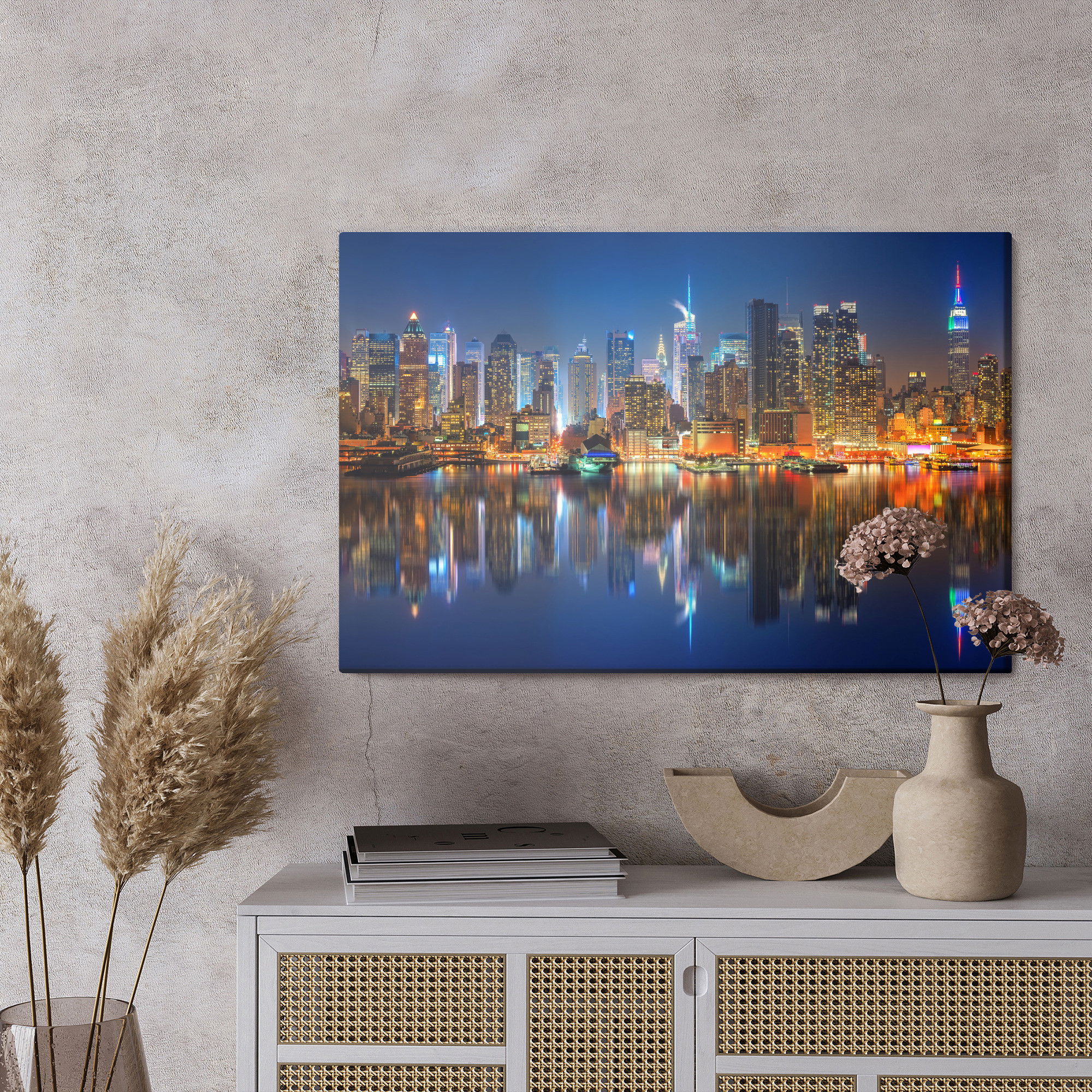 Motivet Manhattan by night återges med hög färgprecision och detaljrikedom tack vare HP Latex-teknologi. Trycket sker med vattenbaserade, luktfria och GREENGUARD Gold-certifierade bläck som ger en upplösning på upp till 300 DPI. Färgerna är UV-beständiga och behåller sin styrka även i ljusa rum, vilket gör tavlan lämplig för både hem- och offentliga miljöer.