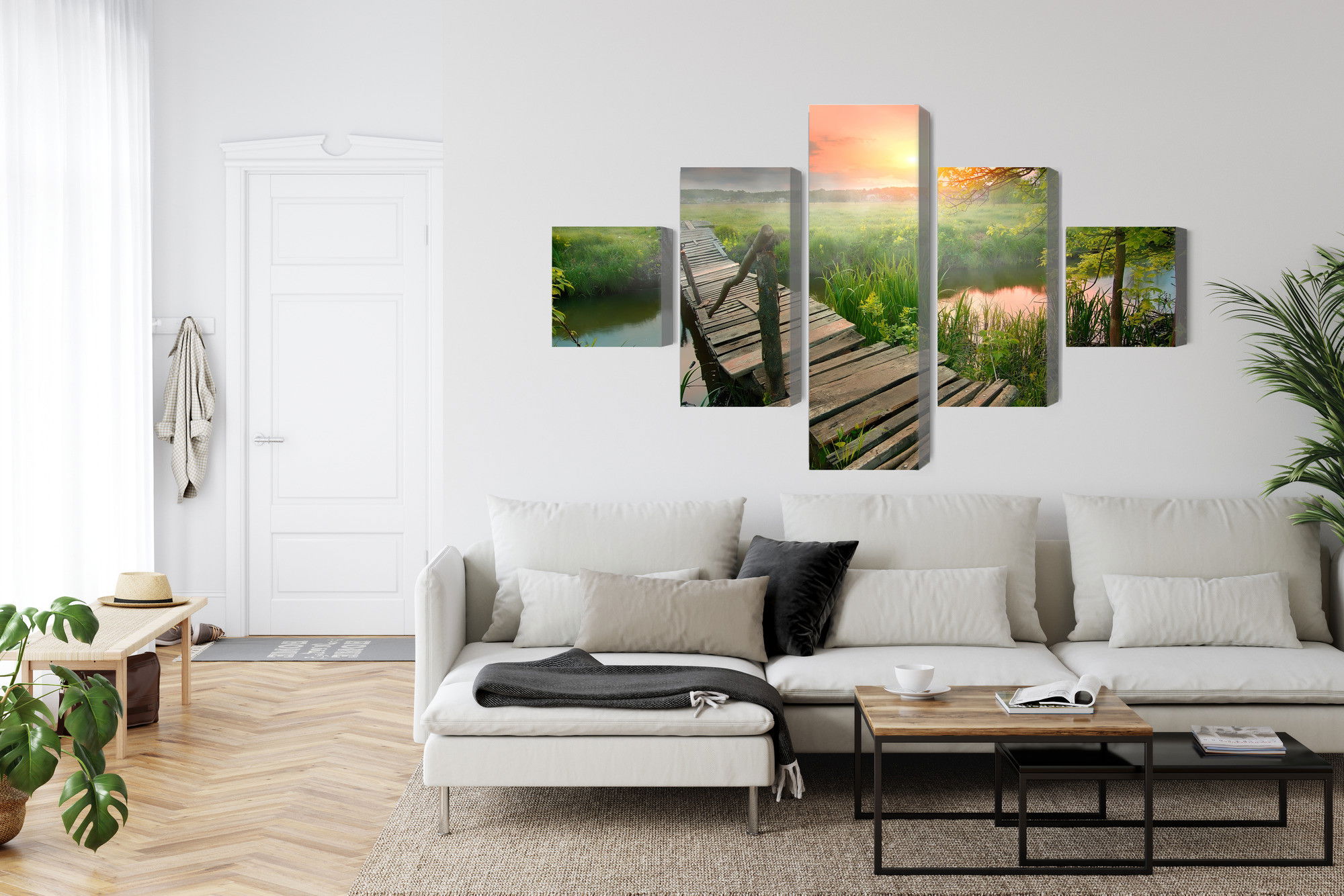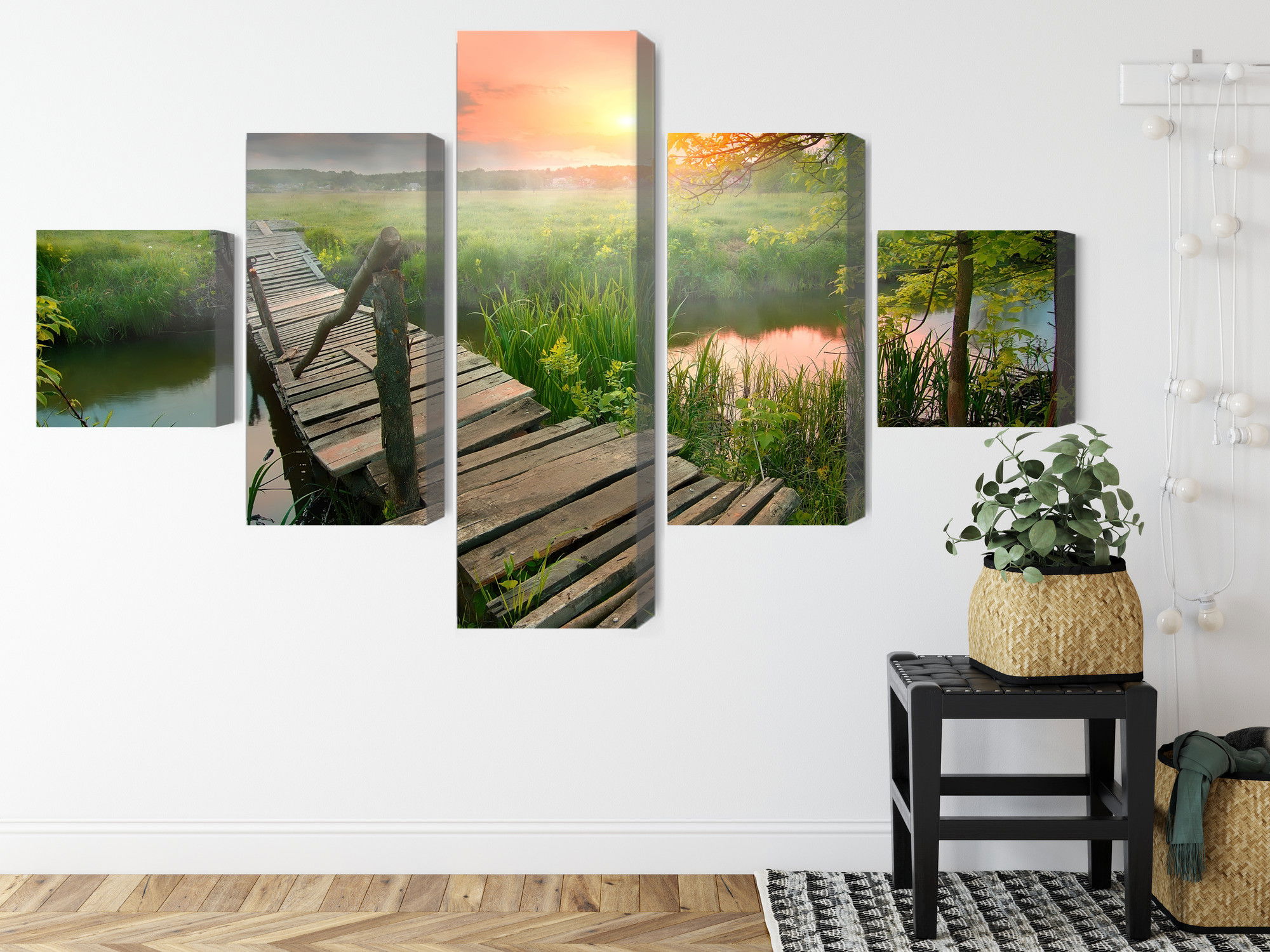 Varje tavla monteras på en massiv fururam. Format upp till 70×50 cm har en ram på 15 mm, medan format från 90×60 cm och uppåt har en ram på 20 mm. Den exakta dukspänningen gör att tavlan håller sin form över tid. Motivet Meadow at dawn trycks runt hela ramen vilket ger ett stilrent galleriuttryck där tavlan är lika vacker från sidan som framifrån. Kombinationen av rak dukspänning, rena linjer och korrekt tryck ger en professionell finish.