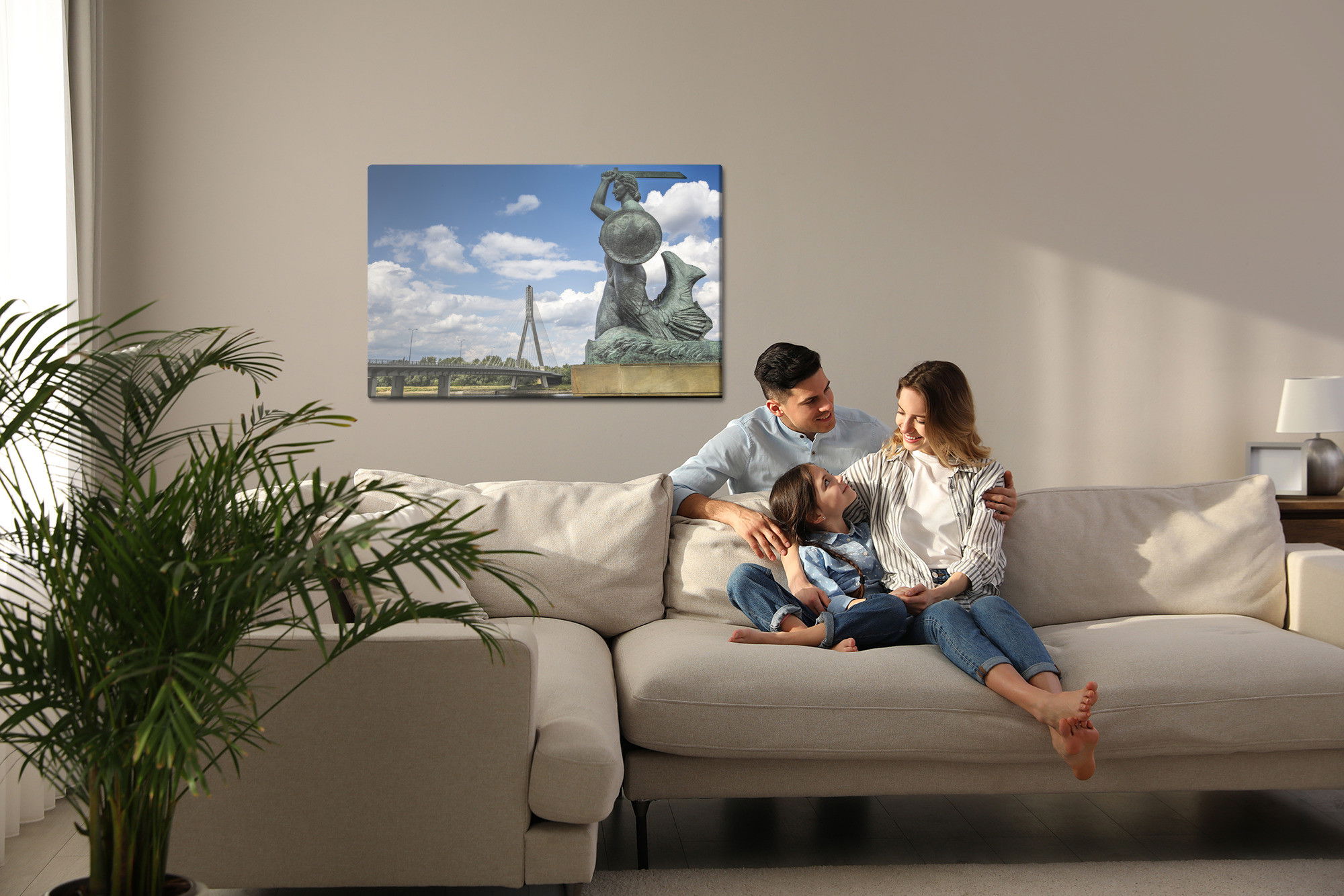 Motivet Mermaid in Warsaw återges med hög färgprecision och detaljrikedom tack vare HP Latex-teknologi. Trycket sker med vattenbaserade, luktfria och GREENGUARD Gold-certifierade bläck som ger en upplösning på upp till 300 DPI. Färgerna är UV-beständiga och behåller sin styrka även i ljusa rum, vilket gör tavlan lämplig för både hem- och offentliga miljöer.