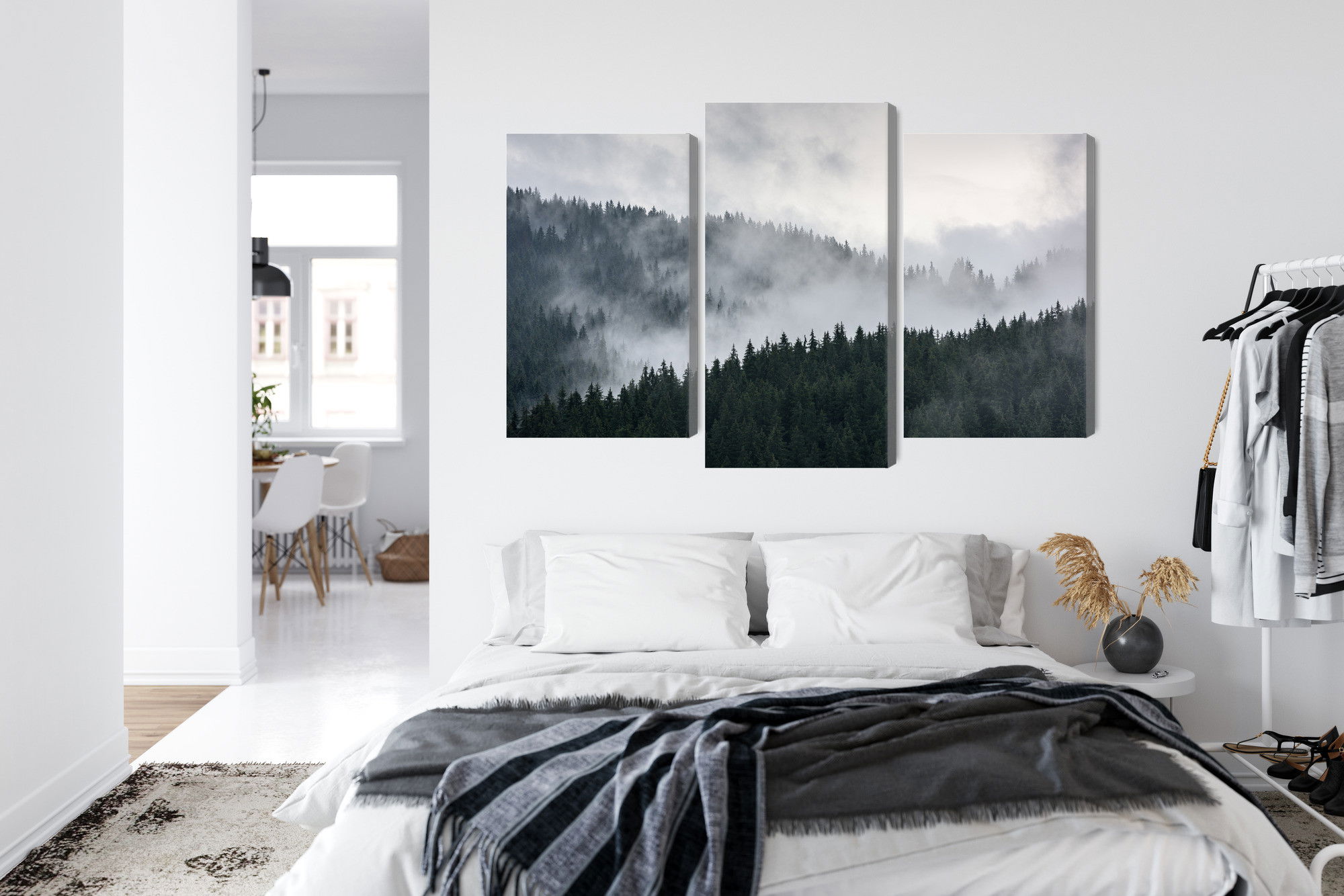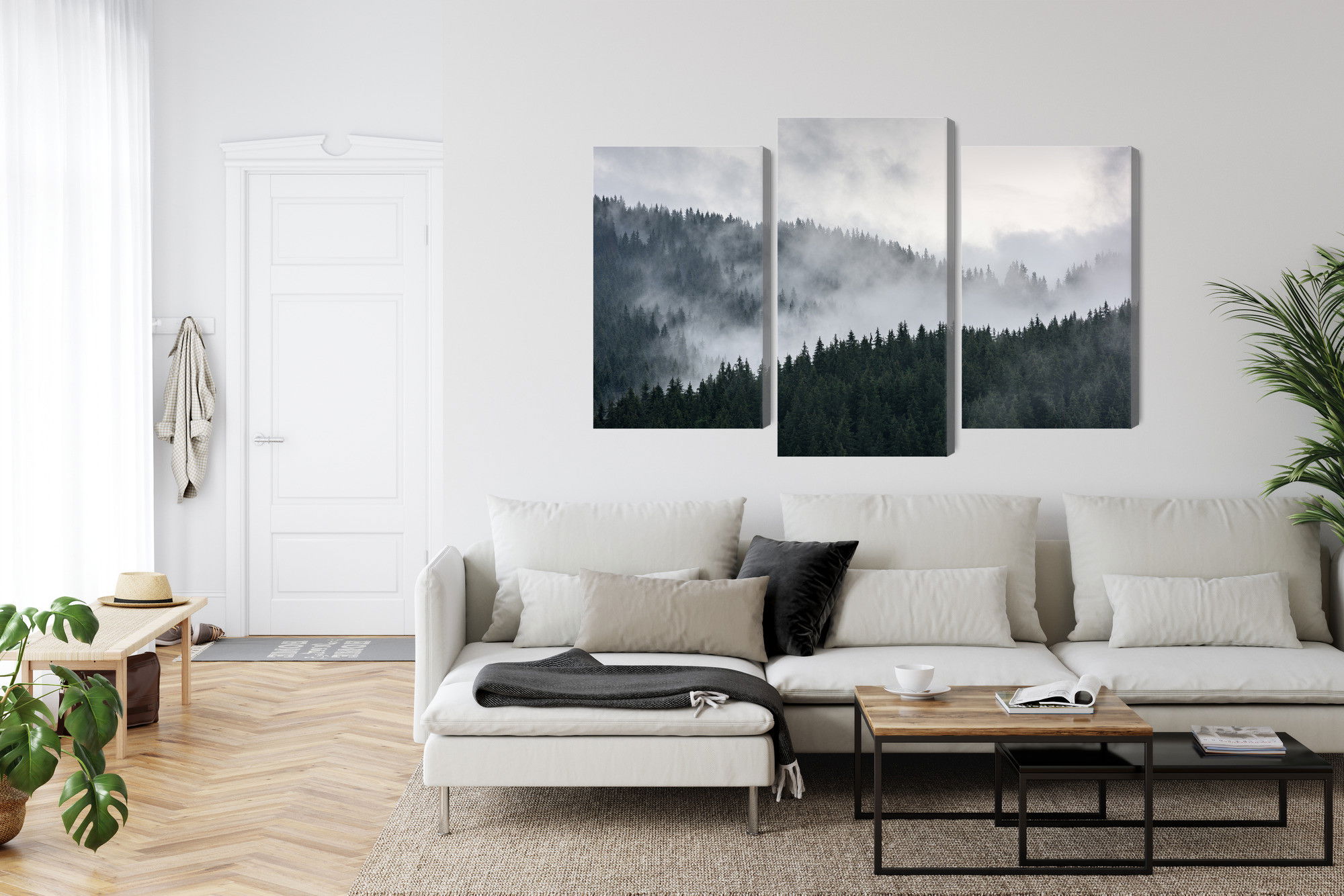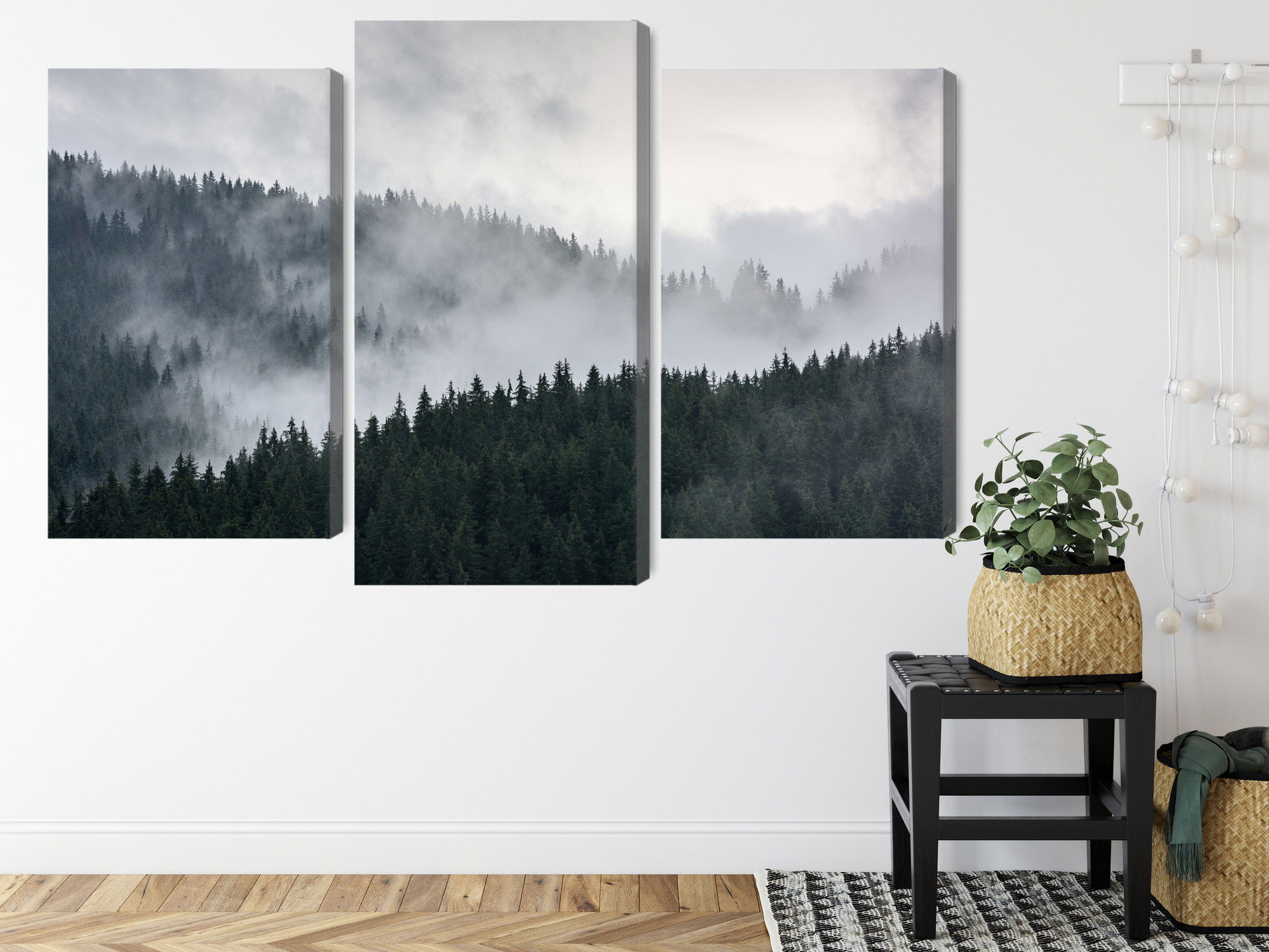 Ljuddämpande tavla – Misty 3d forest landscape för lugnare rum och mjukare akustik