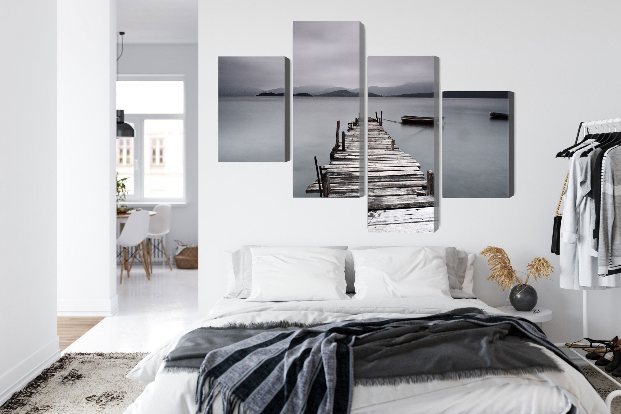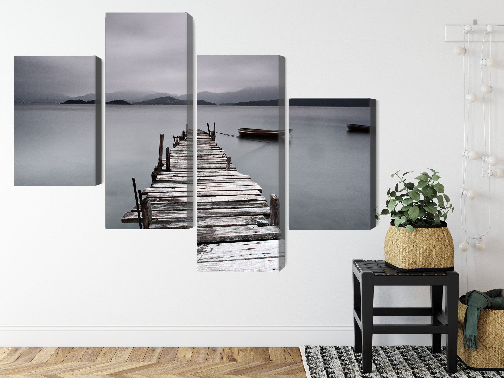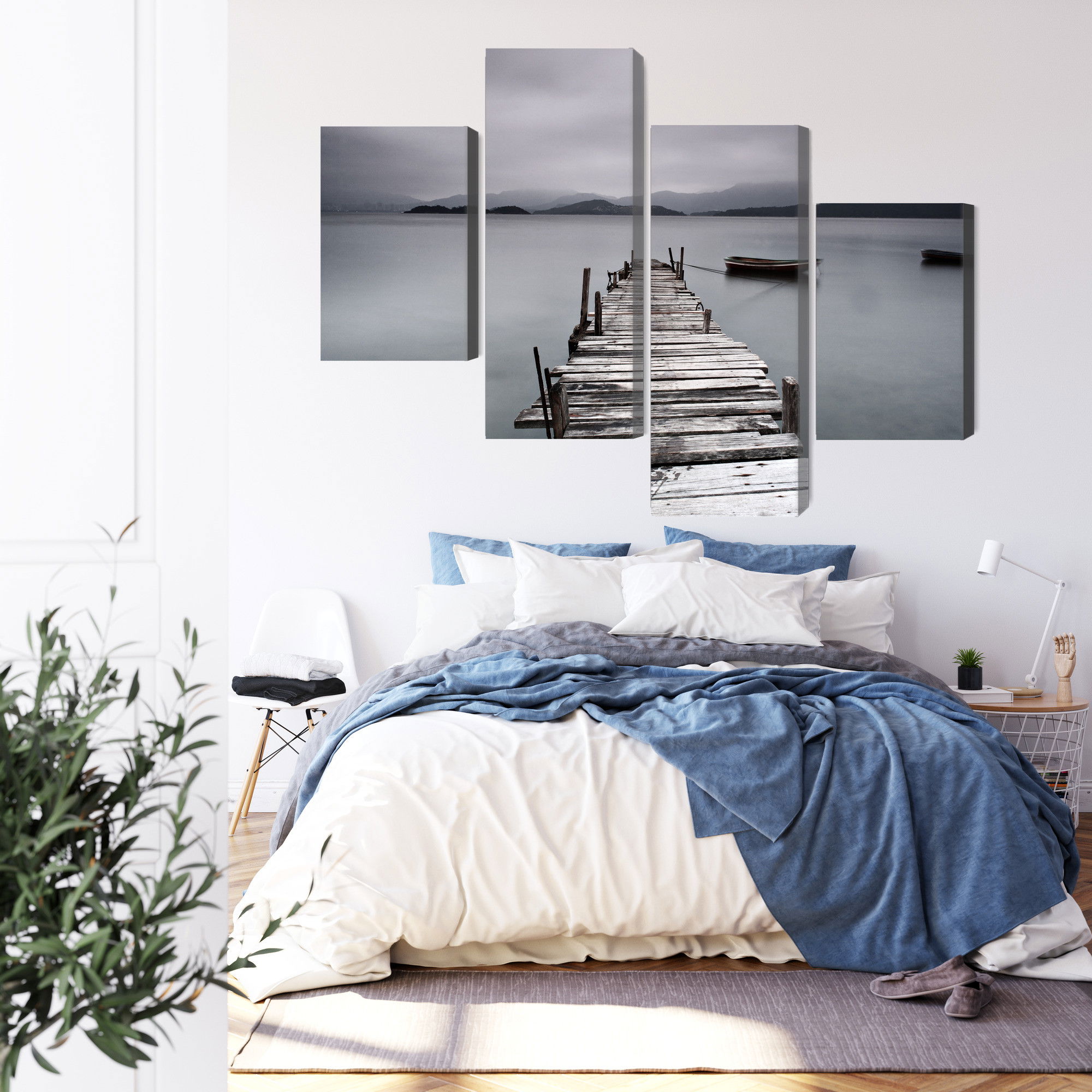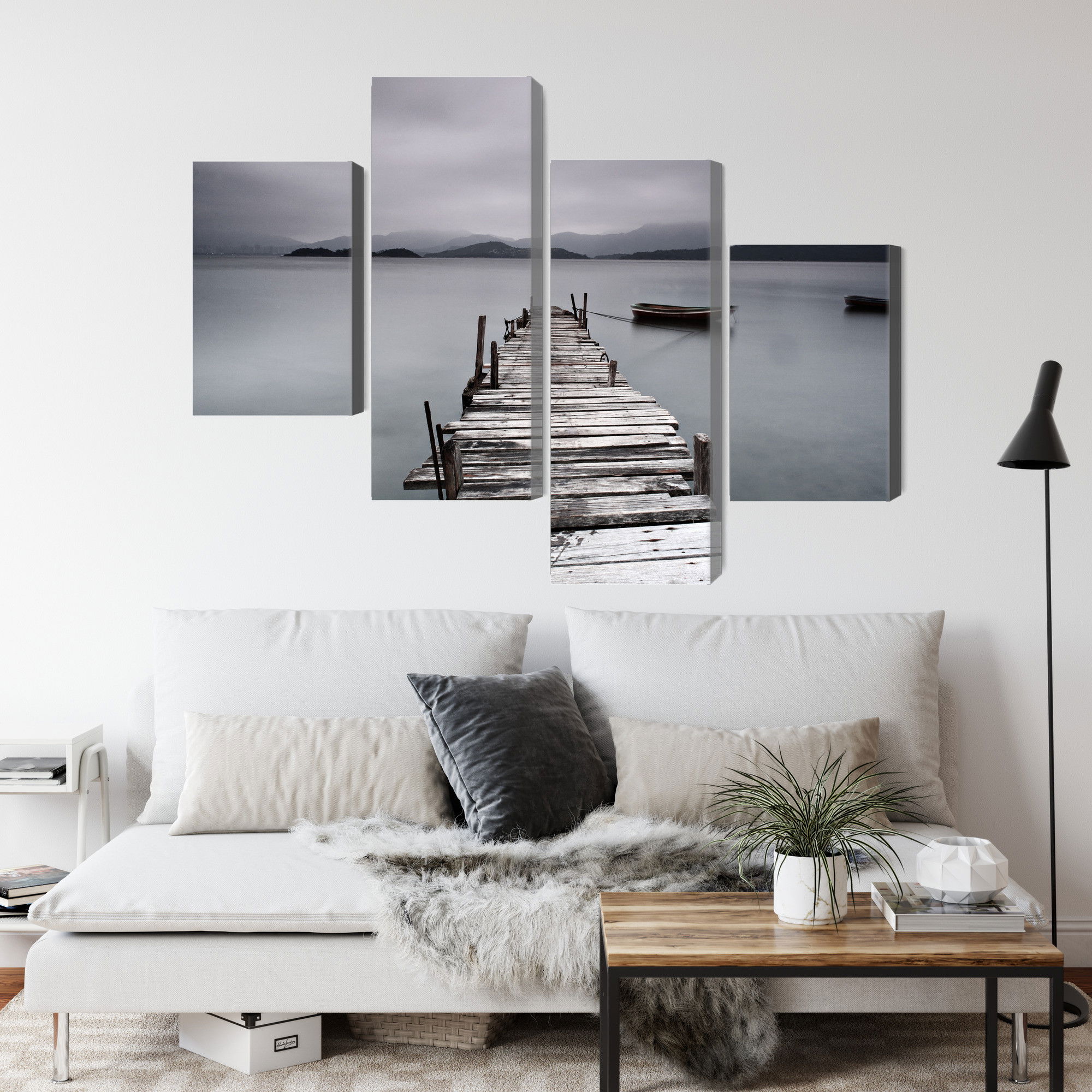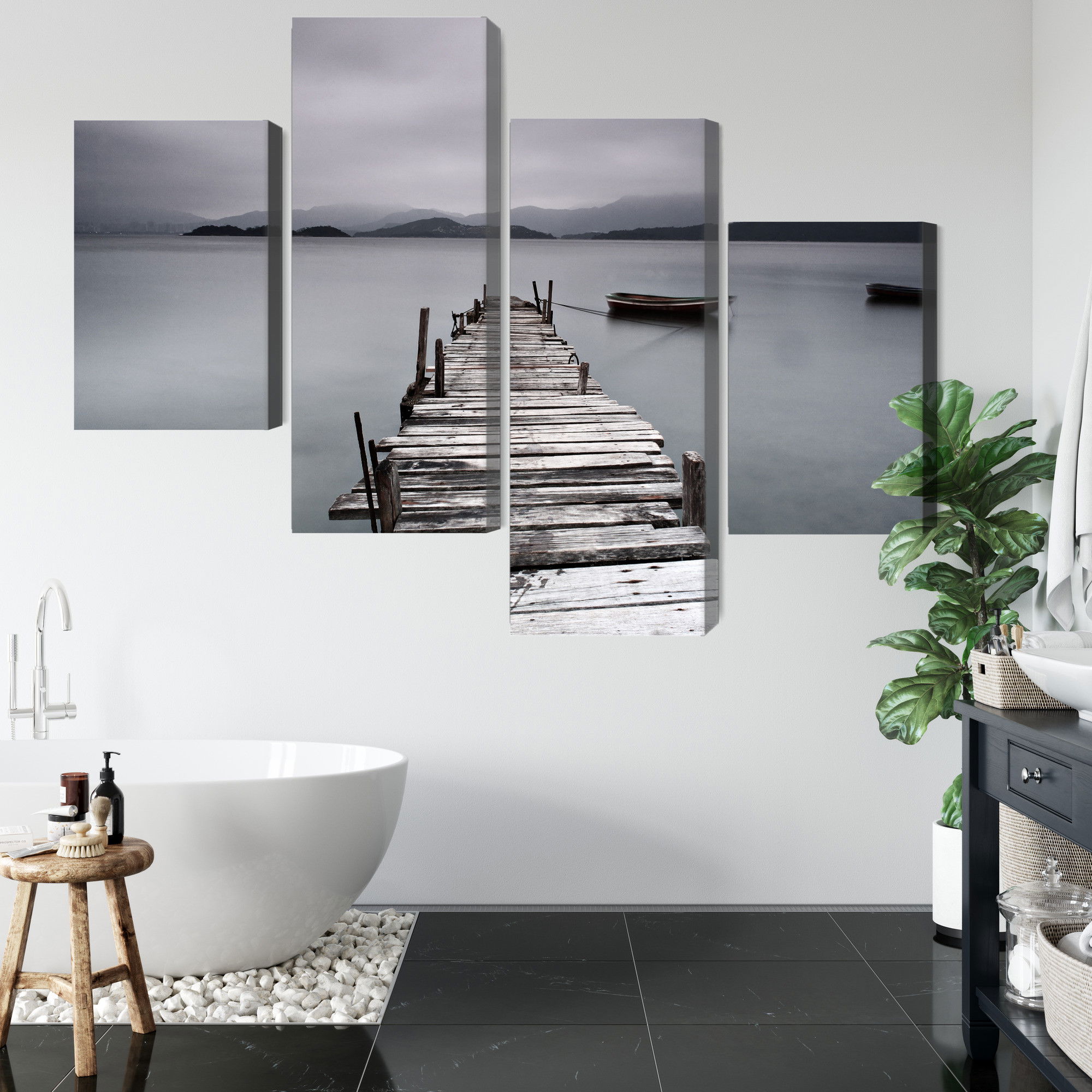 Varje tavla monteras på en massiv fururam. Format upp till 70×50 cm har en ram på 15 mm, medan format från 90×60 cm och uppåt har en ram på 20 mm. Den exakta dukspänningen gör att tavlan håller sin form över tid. Motivet Misty lake trycks runt hela ramen vilket ger ett stilrent galleriuttryck där tavlan är lika vacker från sidan som framifrån. Kombinationen av rak dukspänning, rena linjer och korrekt tryck ger en professionell finish.