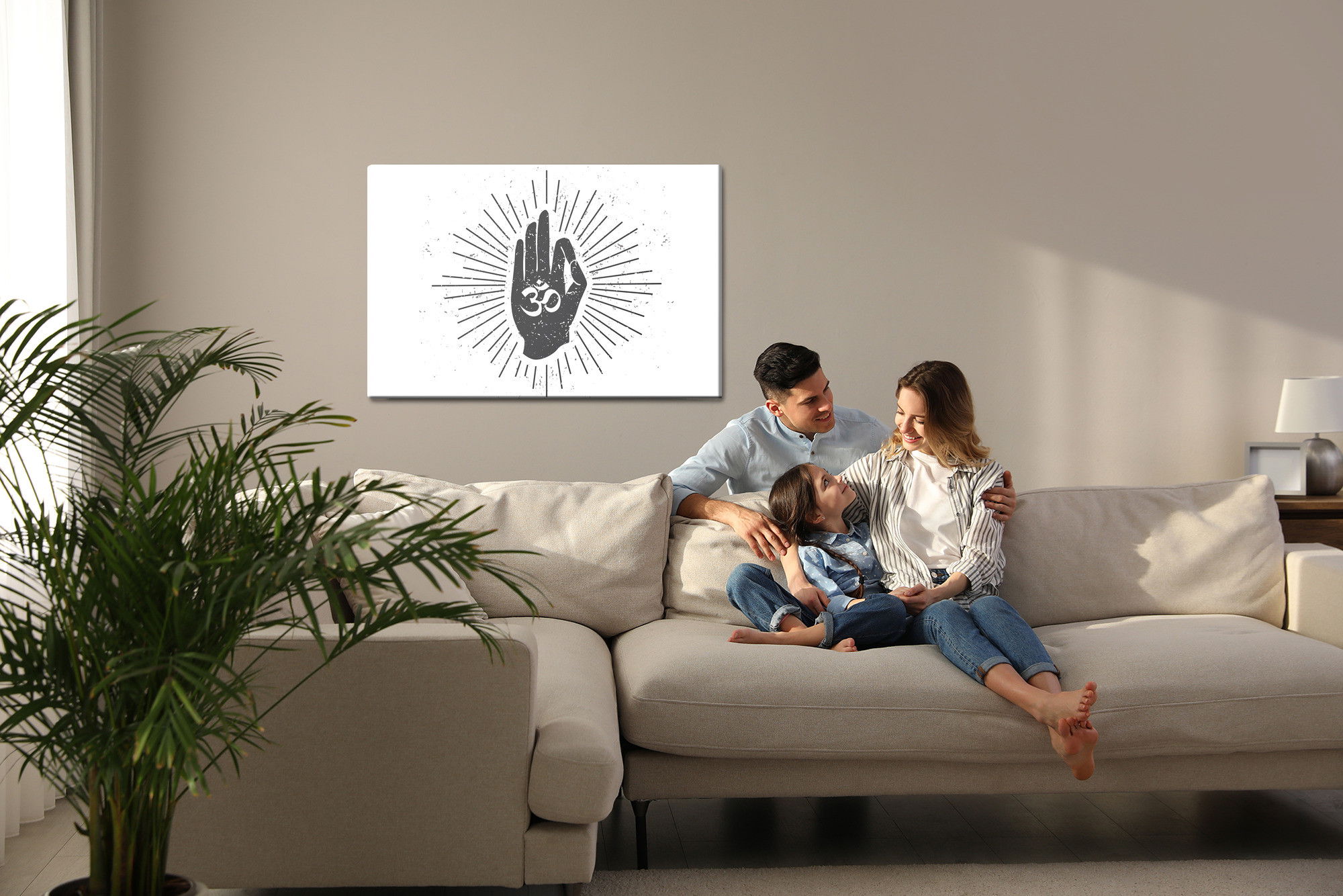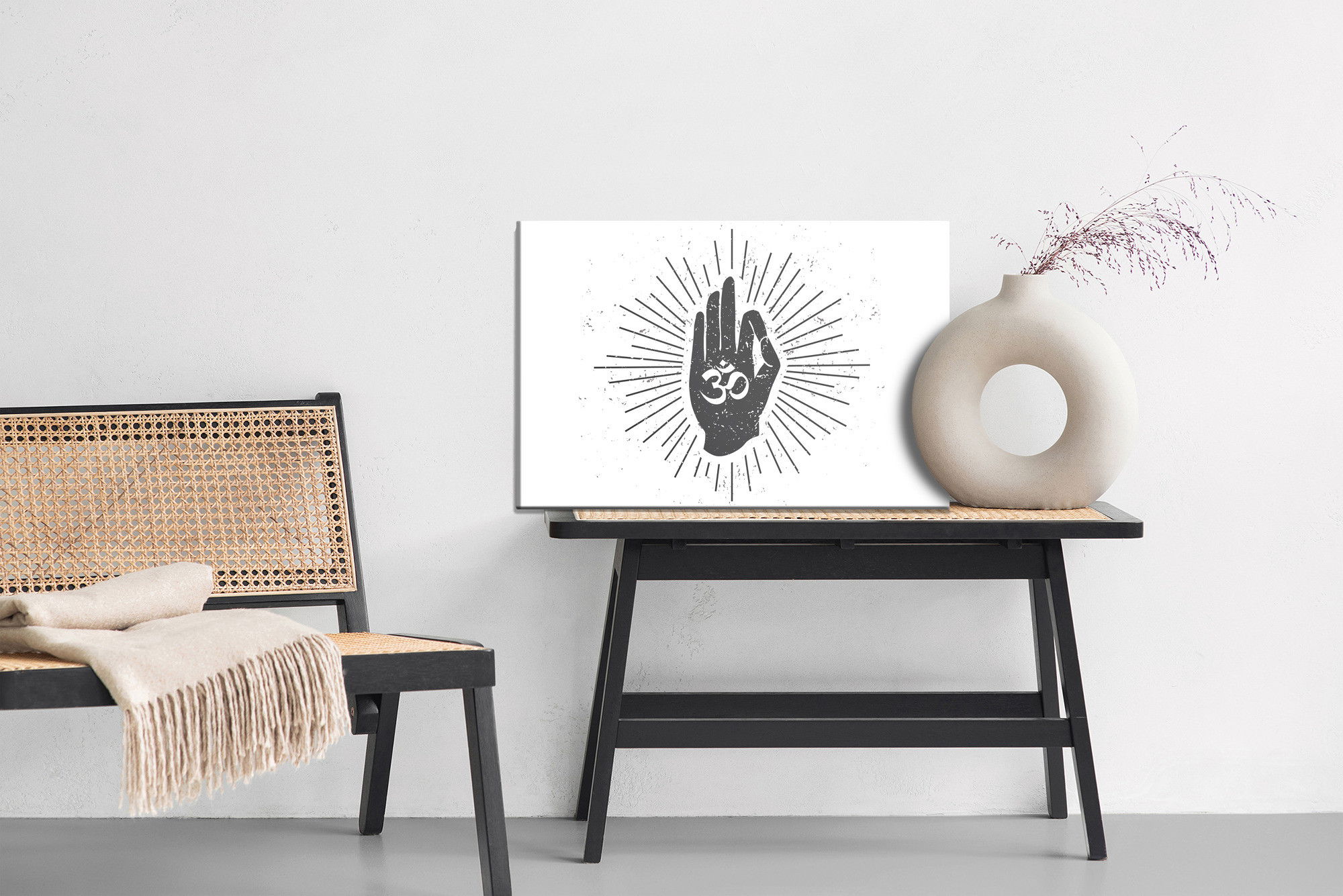 Motivet Mudra återges med hög färgprecision och detaljrikedom tack vare HP Latex-teknologi. Trycket sker med vattenbaserade, luktfria och GREENGUARD Gold-certifierade bläck som ger en upplösning på upp till 300 DPI. Färgerna är UV-beständiga och behåller sin styrka även i ljusa rum, vilket gör tavlan lämplig för både hem- och offentliga miljöer.