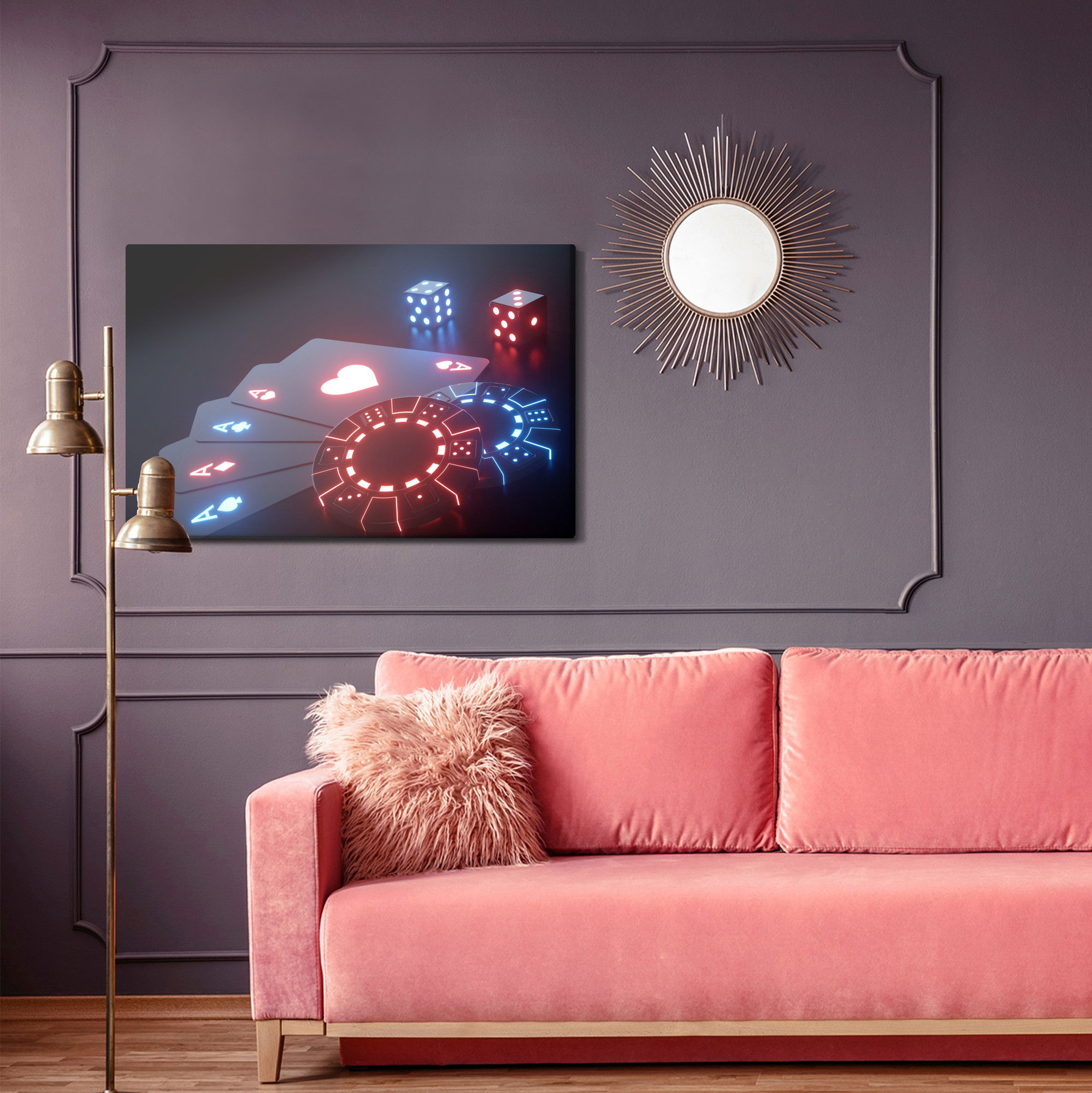 Motivet Neon game set återges med hög färgprecision och detaljrikedom tack vare HP Latex-teknologi. Trycket sker med vattenbaserade, luktfria och GREENGUARD Gold-certifierade bläck som ger en upplösning på upp till 300 DPI. Färgerna är UV-beständiga och behåller sin styrka även i ljusa rum, vilket gör tavlan lämplig för både hem- och offentliga miljöer.