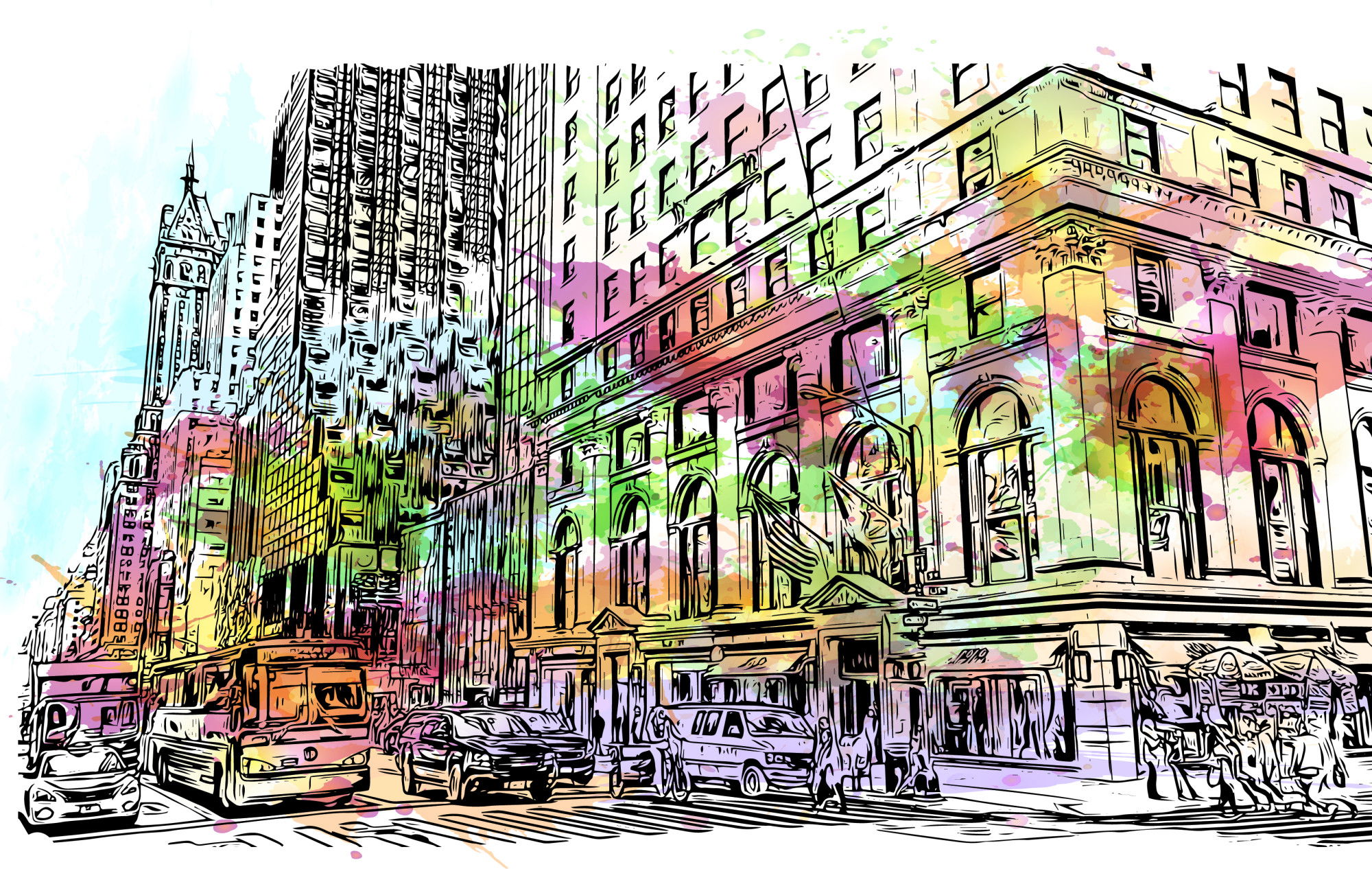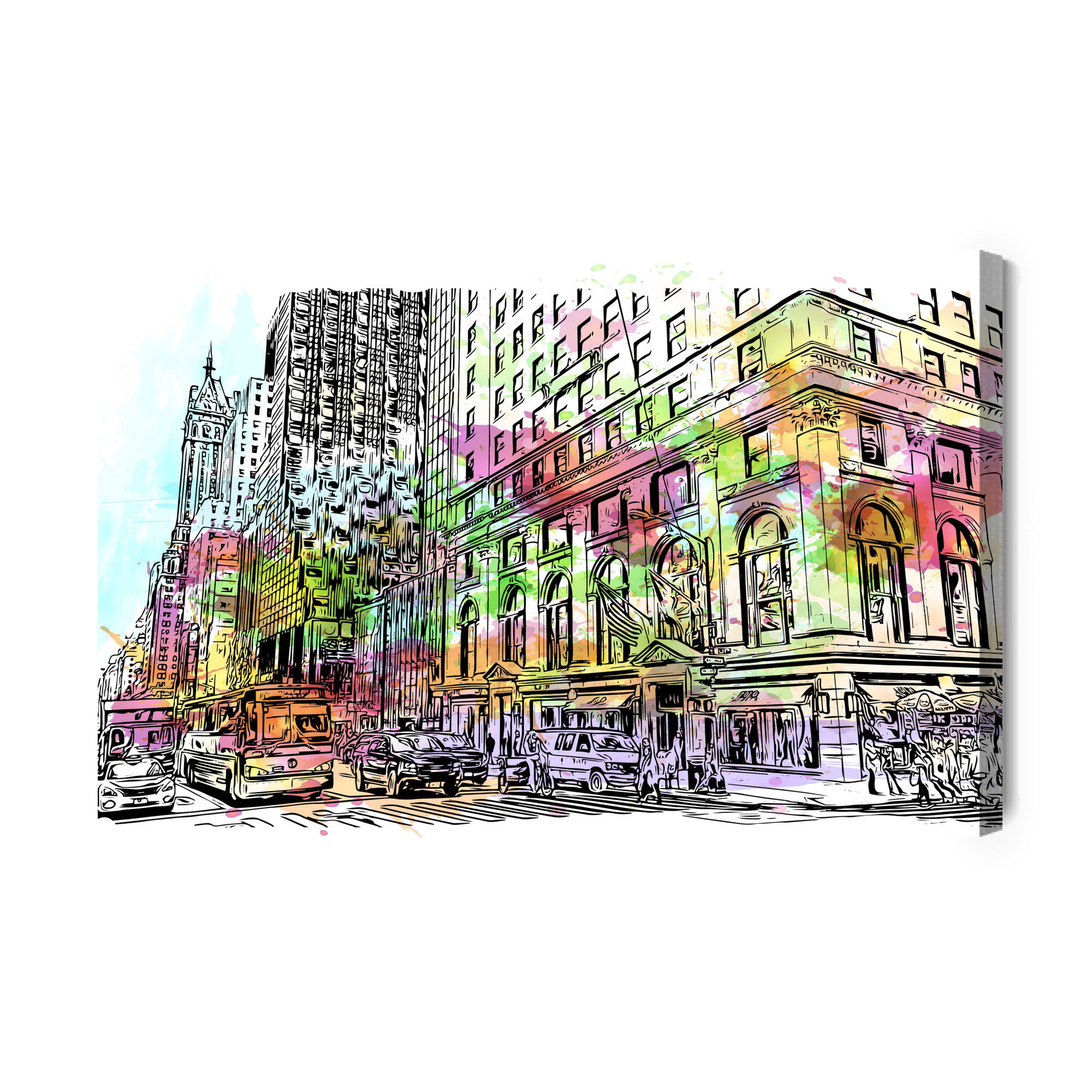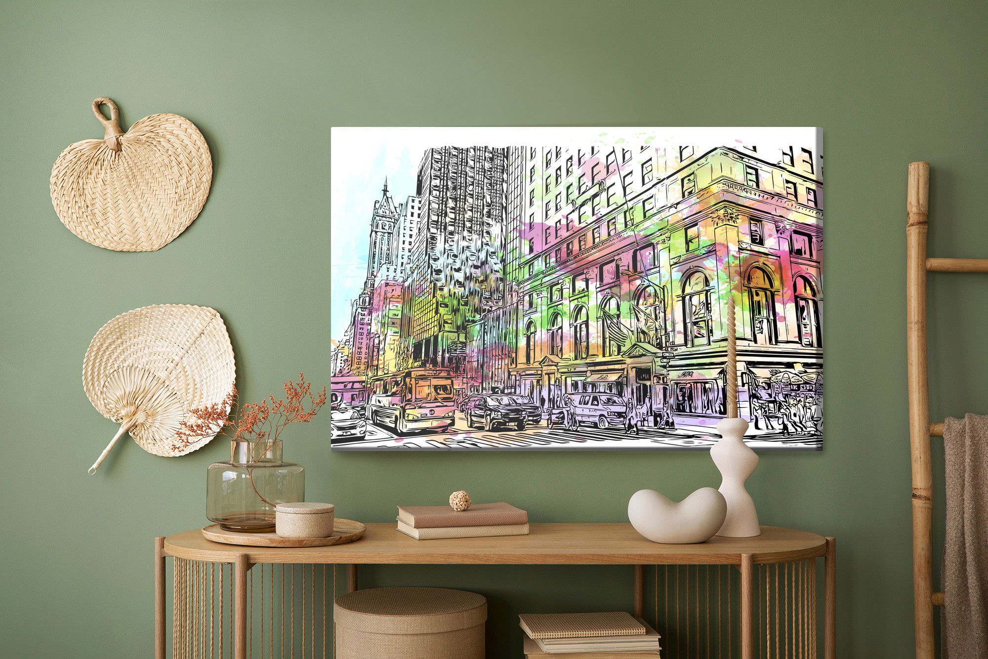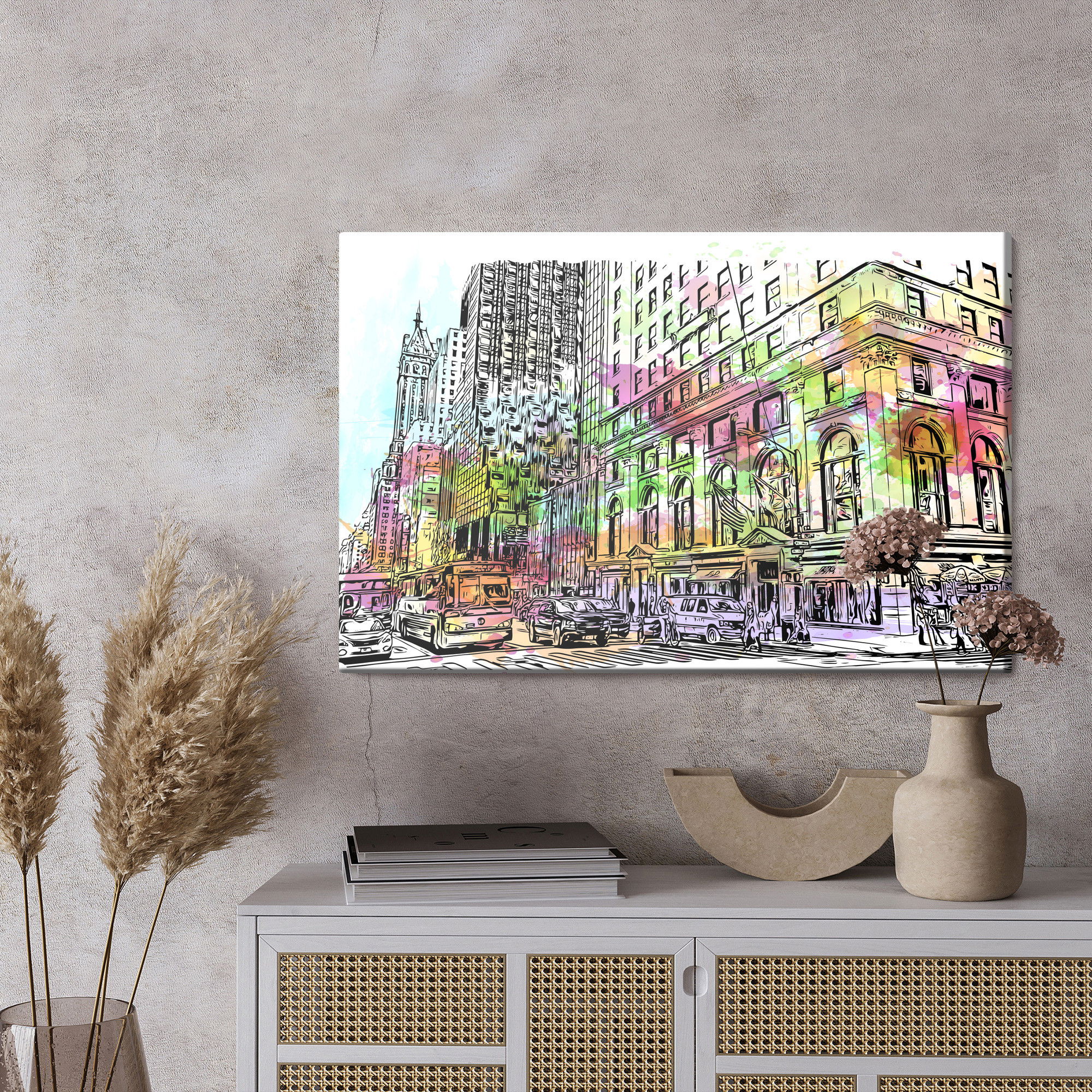 Motivet New York city buildings återges med hög färgprecision och detaljrikedom tack vare HP Latex-teknologi. Trycket sker med vattenbaserade, luktfria och GREENGUARD Gold-certifierade bläck som ger en upplösning på upp till 300 DPI. Färgerna är UV-beständiga och behåller sin styrka även i ljusa rum, vilket gör tavlan lämplig för både hem- och offentliga miljöer.