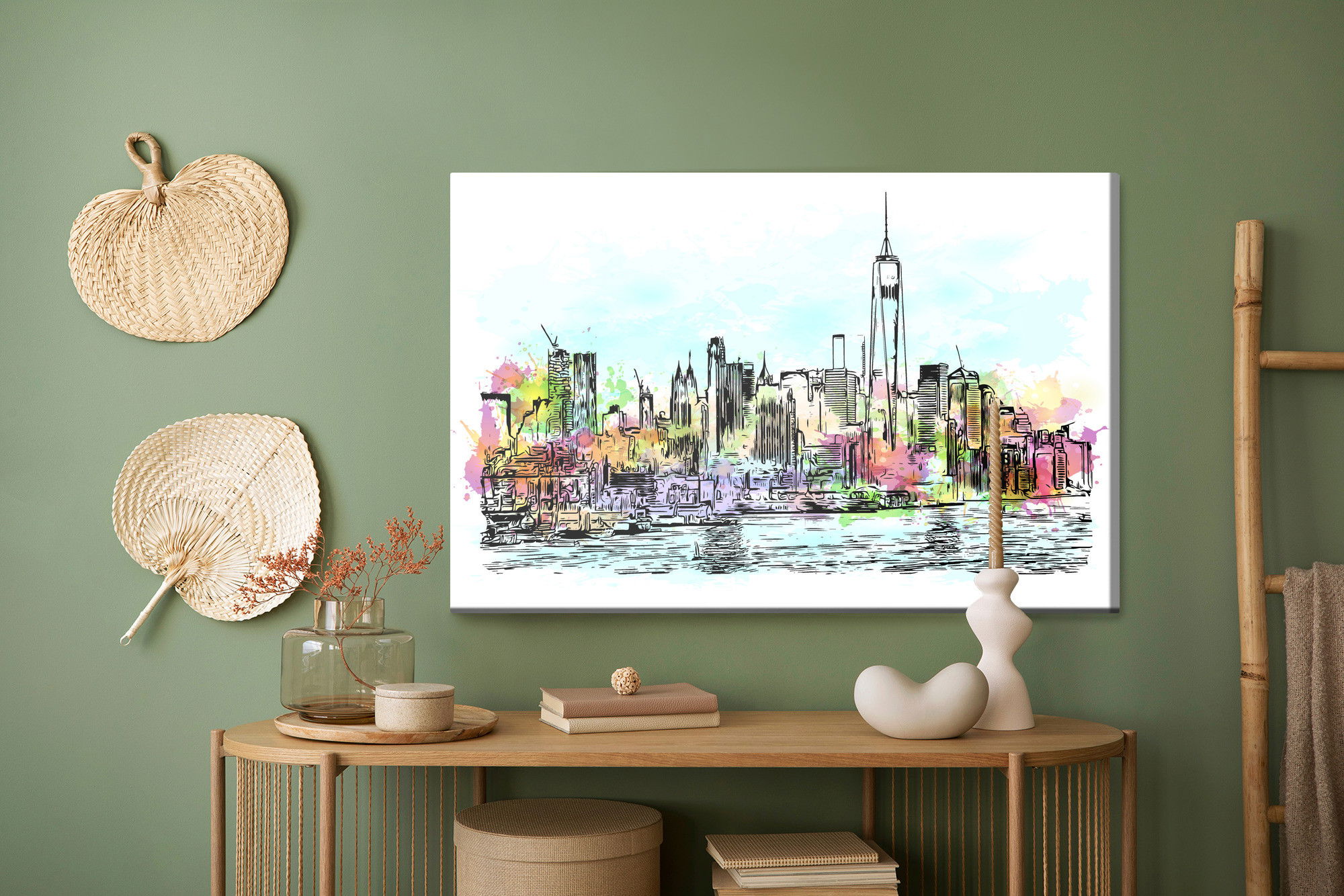 Ljuddämpande tavla – New York city panorama för lugnare rum och mjukare akustik
