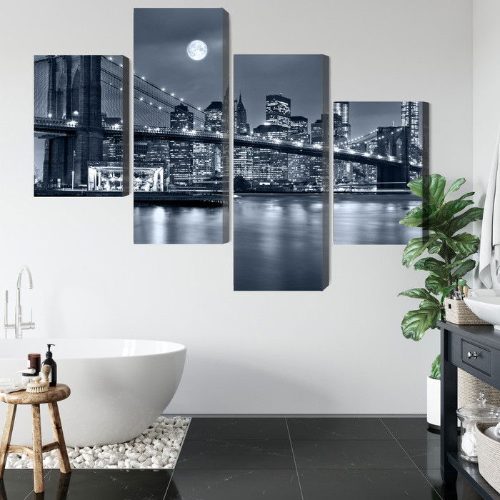 Motivet Night panorama of New York återges med hög färgprecision och detaljrikedom tack vare HP Latex-teknologi. Trycket sker med vattenbaserade, luktfria och GREENGUARD Gold-certifierade bläck som ger en upplösning på upp till 300 DPI. Färgerna är UV-beständiga och behåller sin styrka även i ljusa rum, vilket gör tavlan lämplig för både hem- och offentliga miljöer.