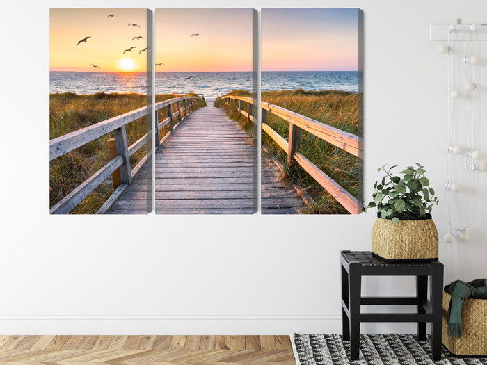 Varje tavla monteras på en massiv fururam. Format upp till 70×50 cm har en ram på 15 mm, medan format från 90×60 cm och uppåt har en ram på 20 mm. Den exakta dukspänningen gör att tavlan håller sin form över tid. Motivet North sea pier 3d trycks runt hela ramen vilket ger ett stilrent galleriuttryck där tavlan är lika vacker från sidan som framifrån. Kombinationen av rak dukspänning, rena linjer och korrekt tryck ger en professionell finish.