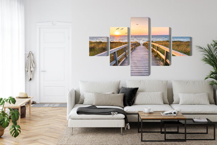Placera tavlan där du upplever mycket eko eller hög ljudnivå, till exempel i öppna planlösningar, hemmakontor eller sociala ytor. Motiv i denna kategori gör sig särskilt bra i rum där du vill skapa en genomtänkt och sammanhängande känsla. Motiv med hav, vatten och horisonter ger rummet en lugn, djup känsla där mjuka färgskiftningar och ljusreflektioner förstärker atmosfären.