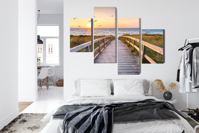 Placera tavlan där du upplever mycket eko eller hög ljudnivå, till exempel i öppna planlösningar, hemmakontor eller sociala ytor. Motiv i denna kategori gör sig särskilt bra i rum där du vill skapa en genomtänkt och sammanhängande känsla. Motiv med hav, vatten och horisonter ger rummet en lugn, djup känsla där mjuka färgskiftningar och ljusreflektioner förstärker atmosfären.