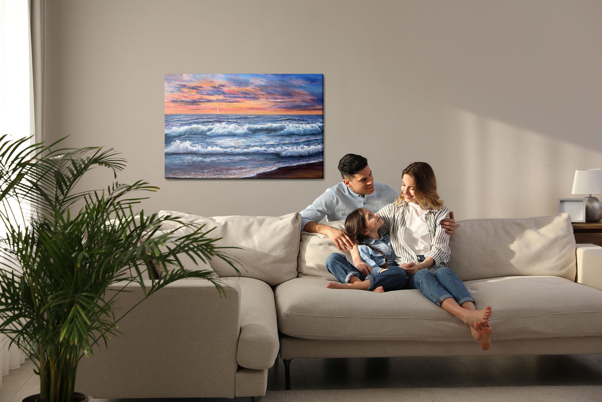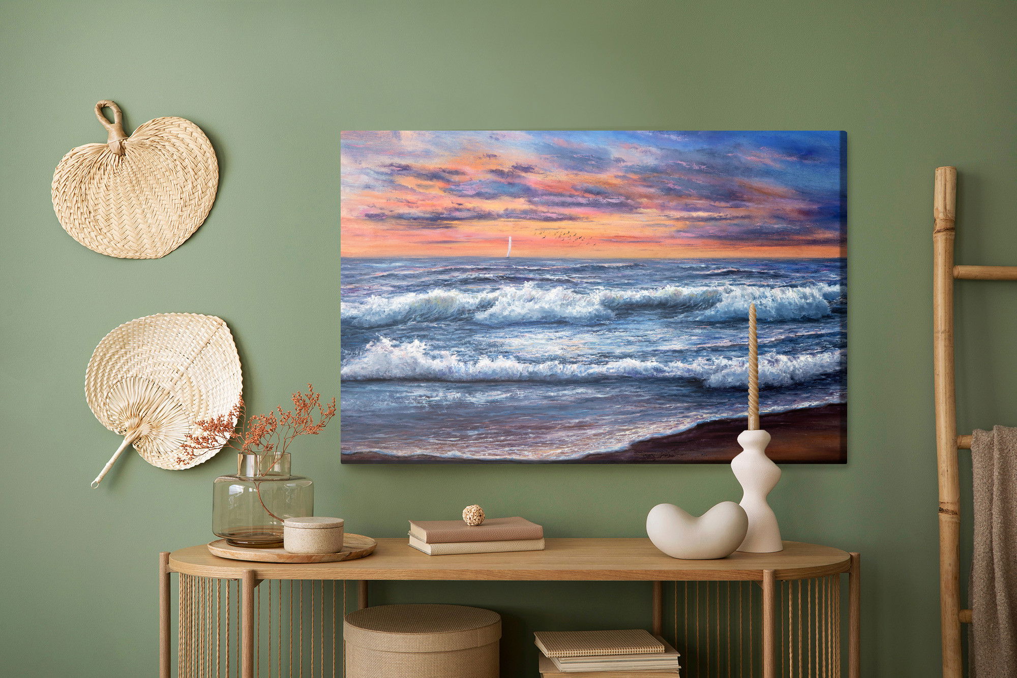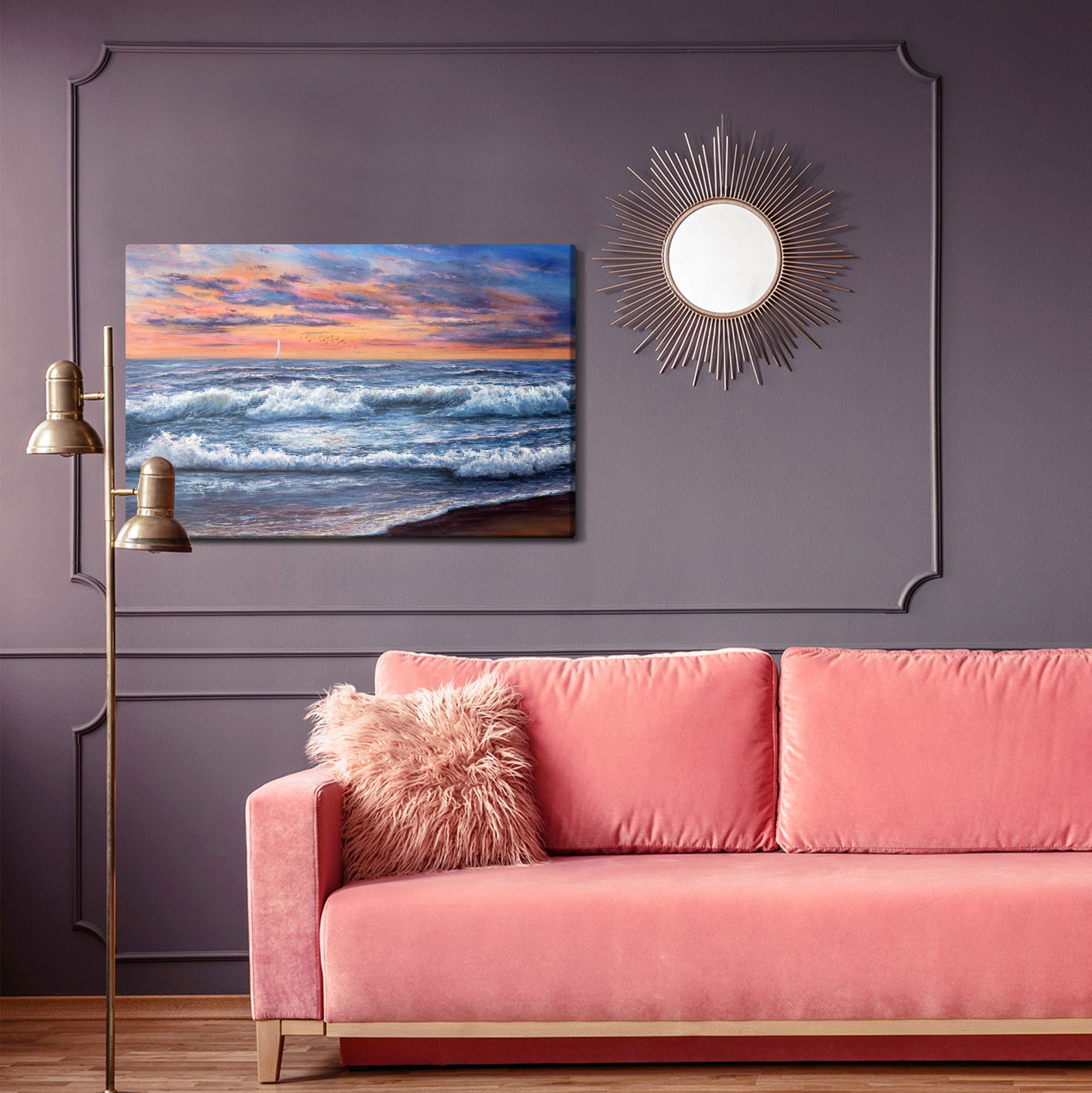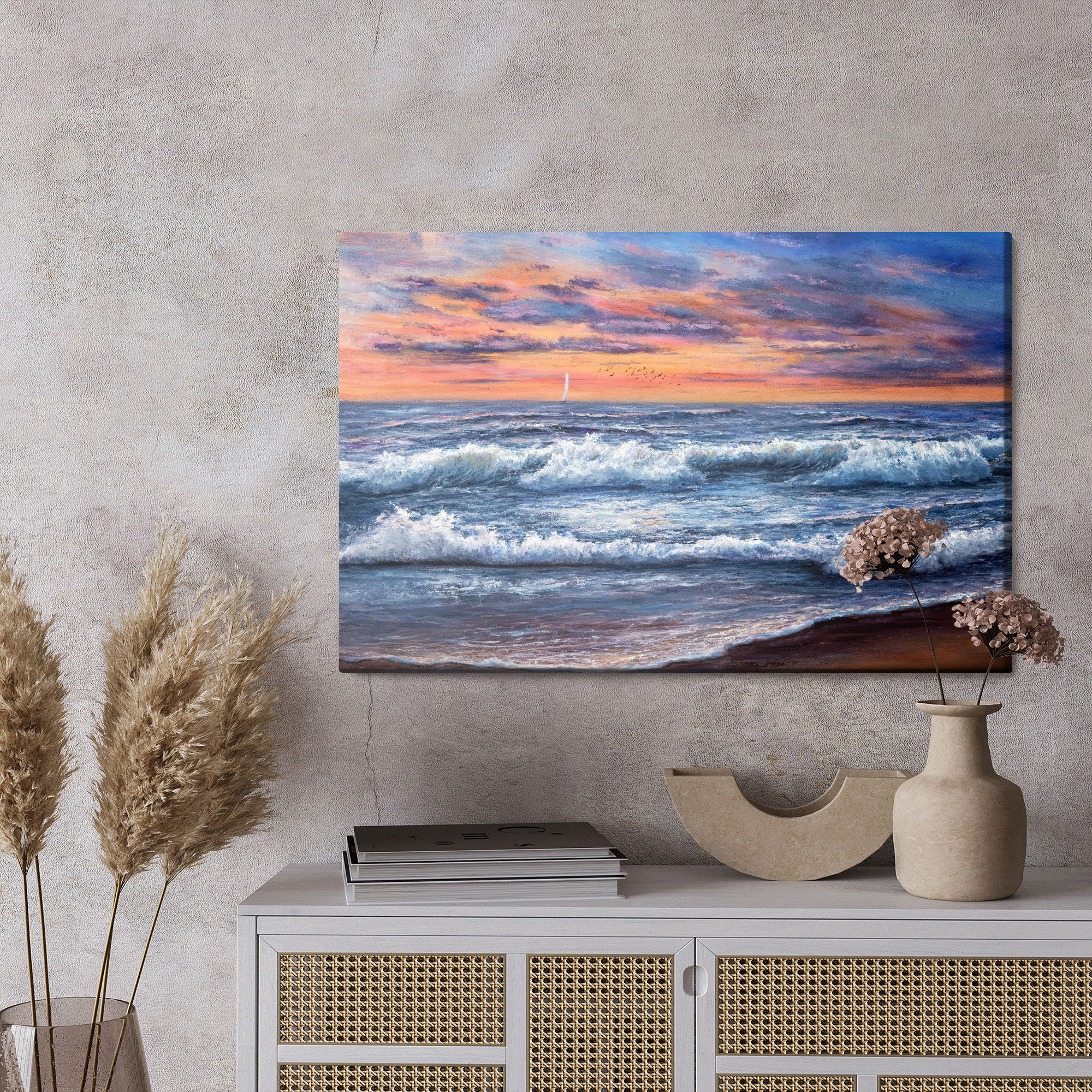 Placera tavlan där du upplever mycket eko eller hög ljudnivå, till exempel i öppna planlösningar, hemmakontor eller sociala ytor. Motiv i denna kategori gör sig särskilt bra i rum där du vill skapa en genomtänkt och sammanhängande känsla. Motiv med hav, vatten och horisonter ger rummet en lugn, djup känsla där mjuka färgskiftningar och ljusreflektioner förstärker atmosfären.