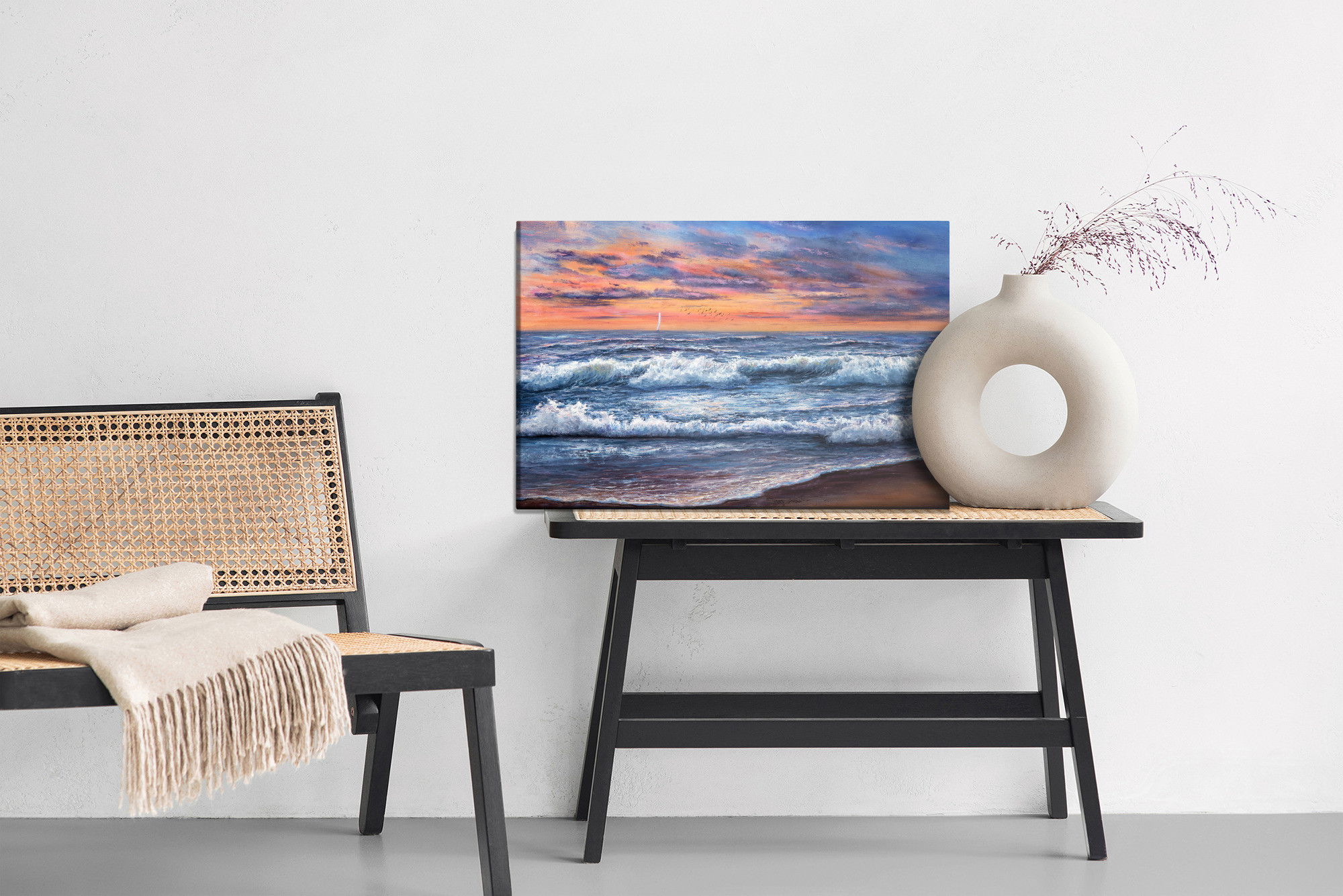 En ljuddämpande tavla Of the sea landscape är mer än en väggdekoration. En ljuddämpande tavla från SilentDirect fungerar som ett diskret men effektivt akustiskt komplement. Den mjukar upp ljudbilden, minskar eko och gör det mer behagligt att vistas i rummet under längre stunder. Samtidigt bidrar den till en mer genomarbetad helhet där både uttryck och funktion samspelar.