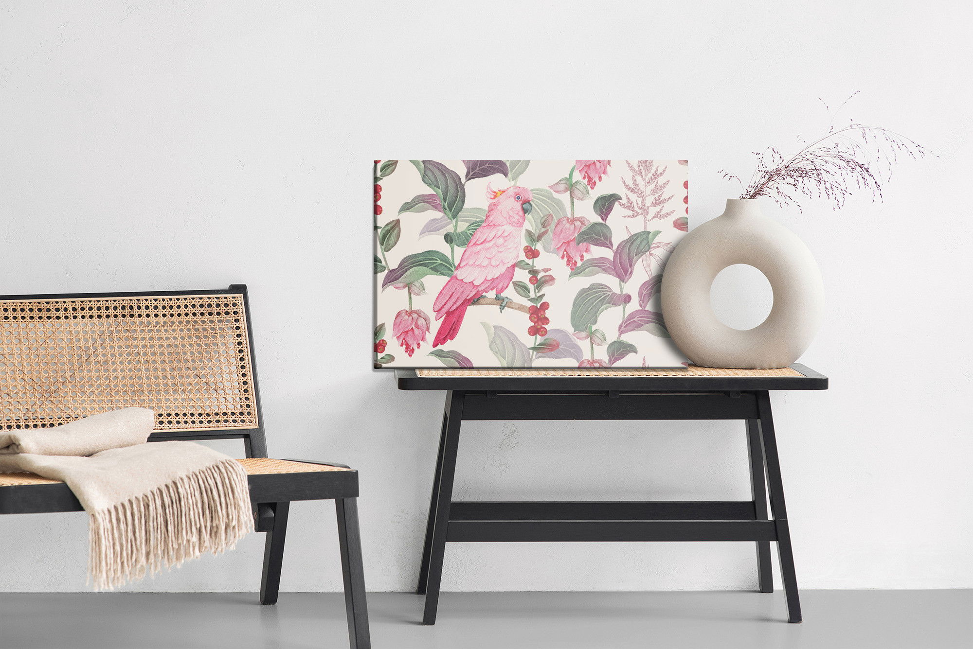 Ljuddämpande tavla – Of tropical pink parrot för lugnare rum och mjukare akustik