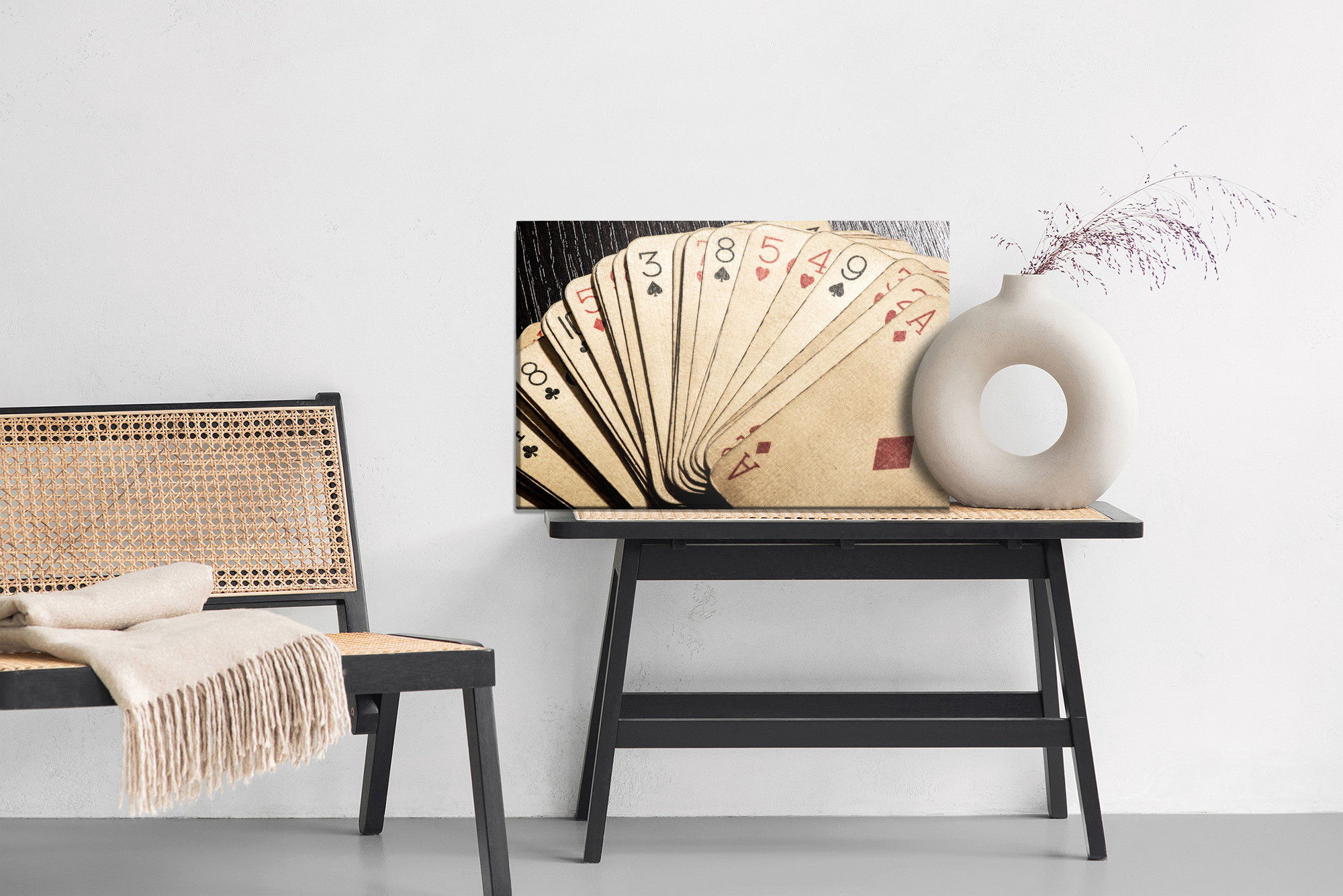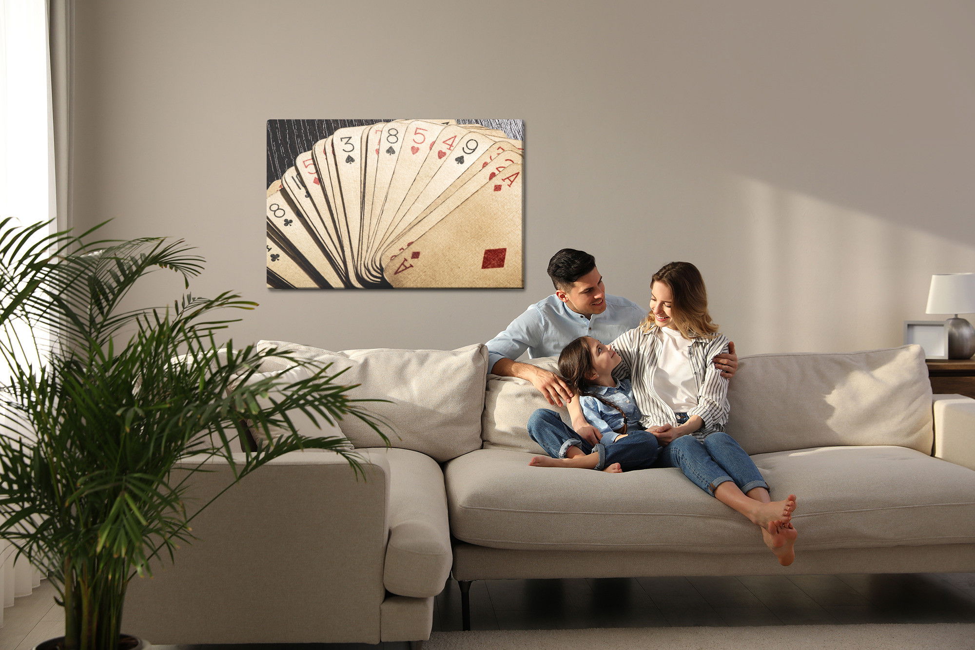 Varje tavla monteras på en massiv fururam. Format upp till 70×50 cm har en ram på 15 mm, medan format från 90×60 cm och uppåt har en ram på 20 mm. Den exakta dukspänningen gör att tavlan håller sin form över tid. Motivet Old deck top view trycks runt hela ramen vilket ger ett stilrent galleriuttryck där tavlan är lika vacker från sidan som framifrån. Kombinationen av rak dukspänning, rena linjer och korrekt tryck ger en professionell finish.