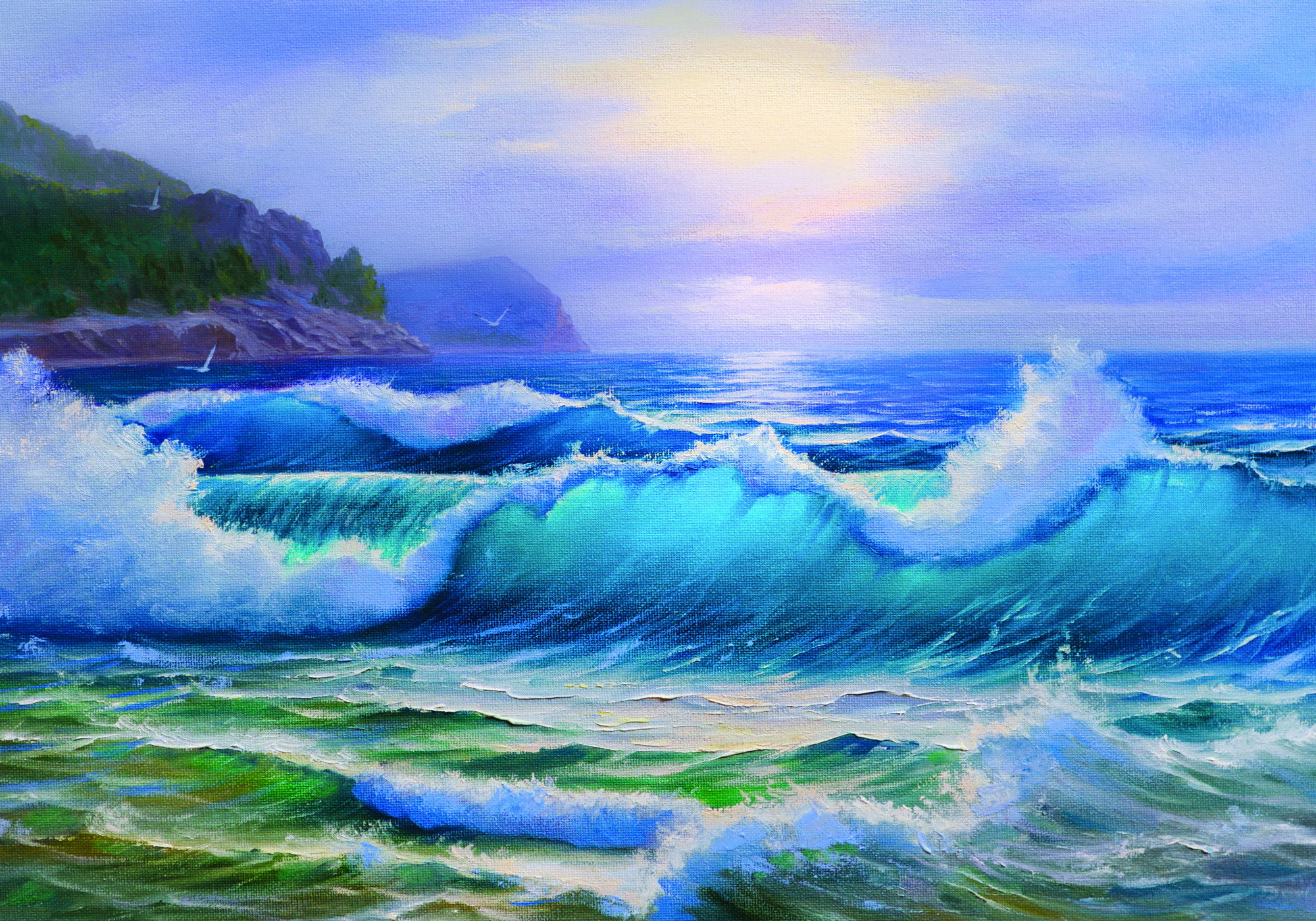 Ljuddämpande tavla – Painted seascape för lugnare rum och mjukare akustik
