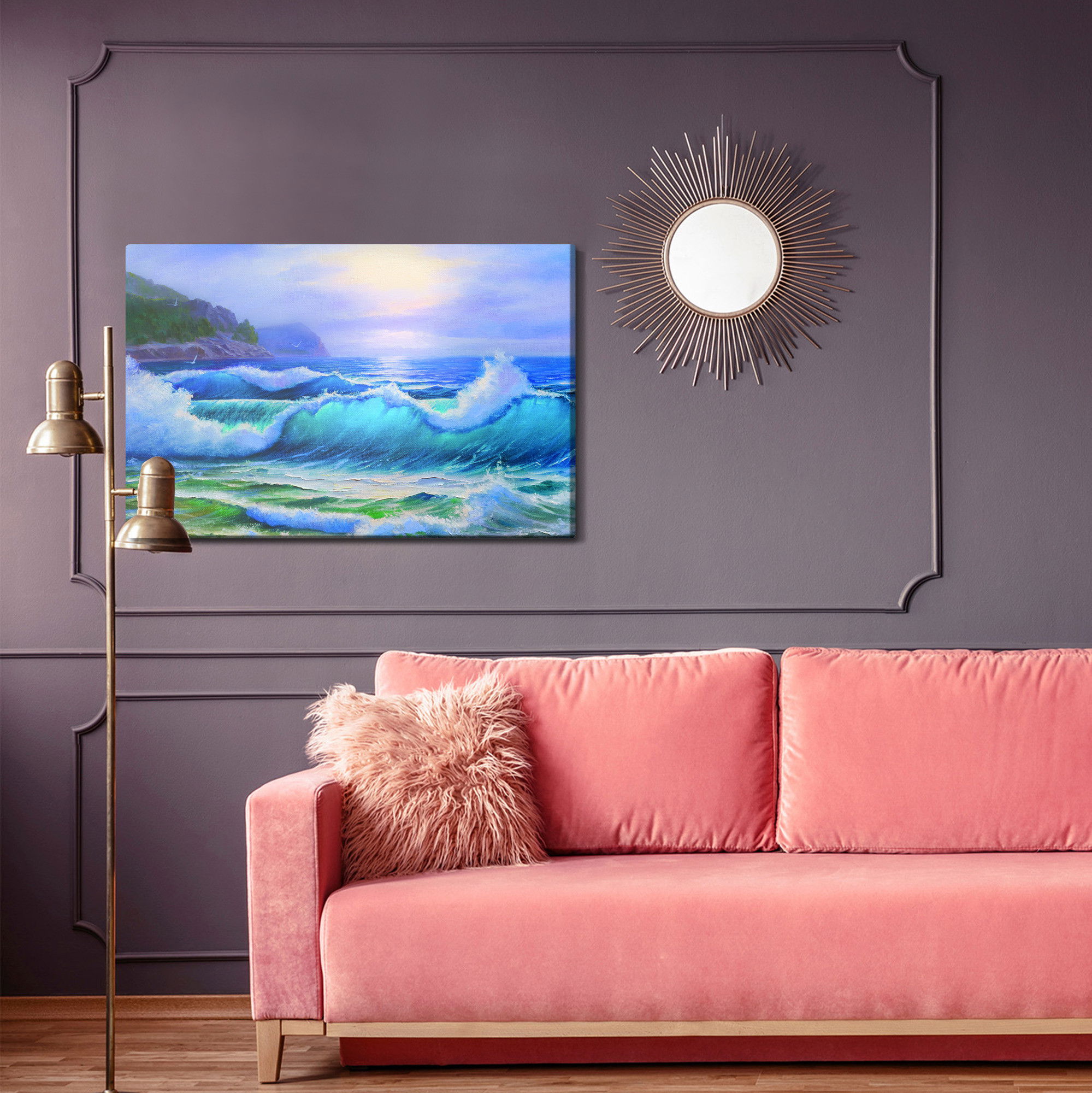 Motivet Painted seascape återges med hög färgprecision och detaljrikedom tack vare HP Latex-teknologi. Trycket sker med vattenbaserade, luktfria och GREENGUARD Gold-certifierade bläck som ger en upplösning på upp till 300 DPI. Färgerna är UV-beständiga och behåller sin styrka även i ljusa rum, vilket gör tavlan lämplig för både hem- och offentliga miljöer.