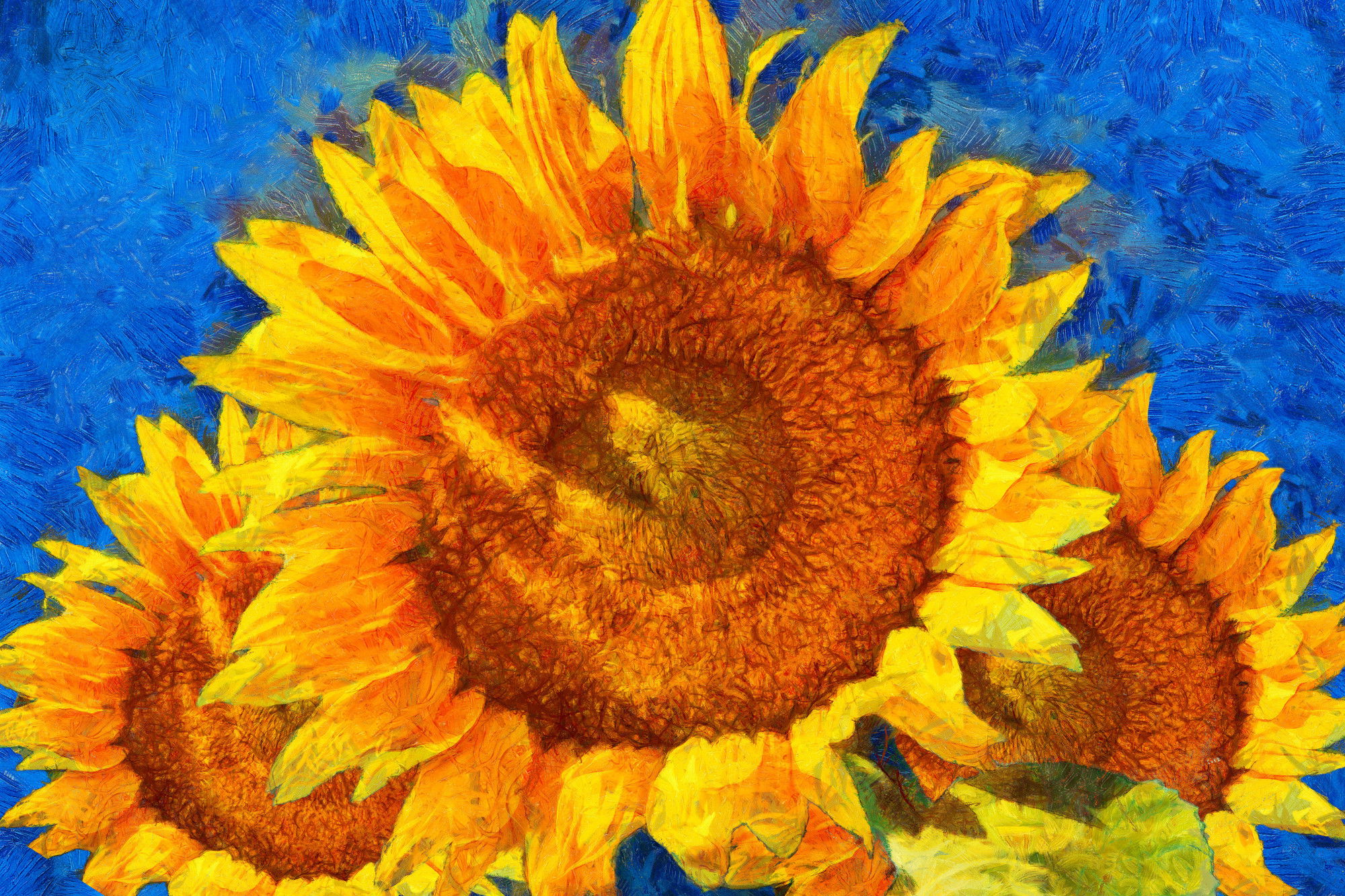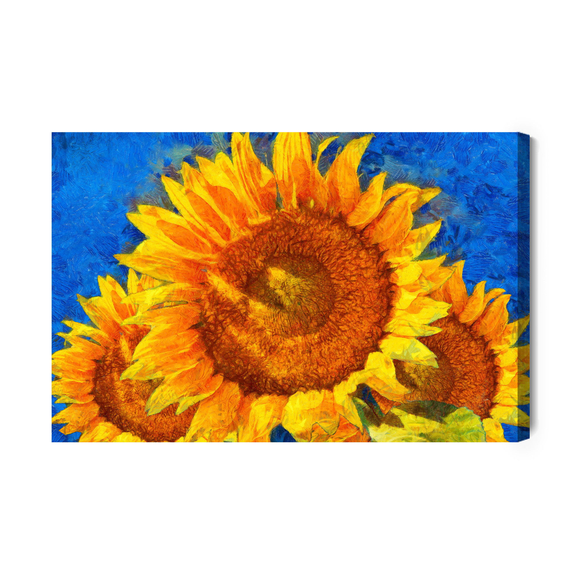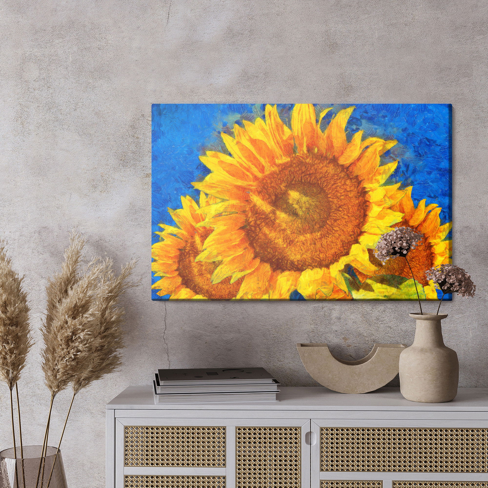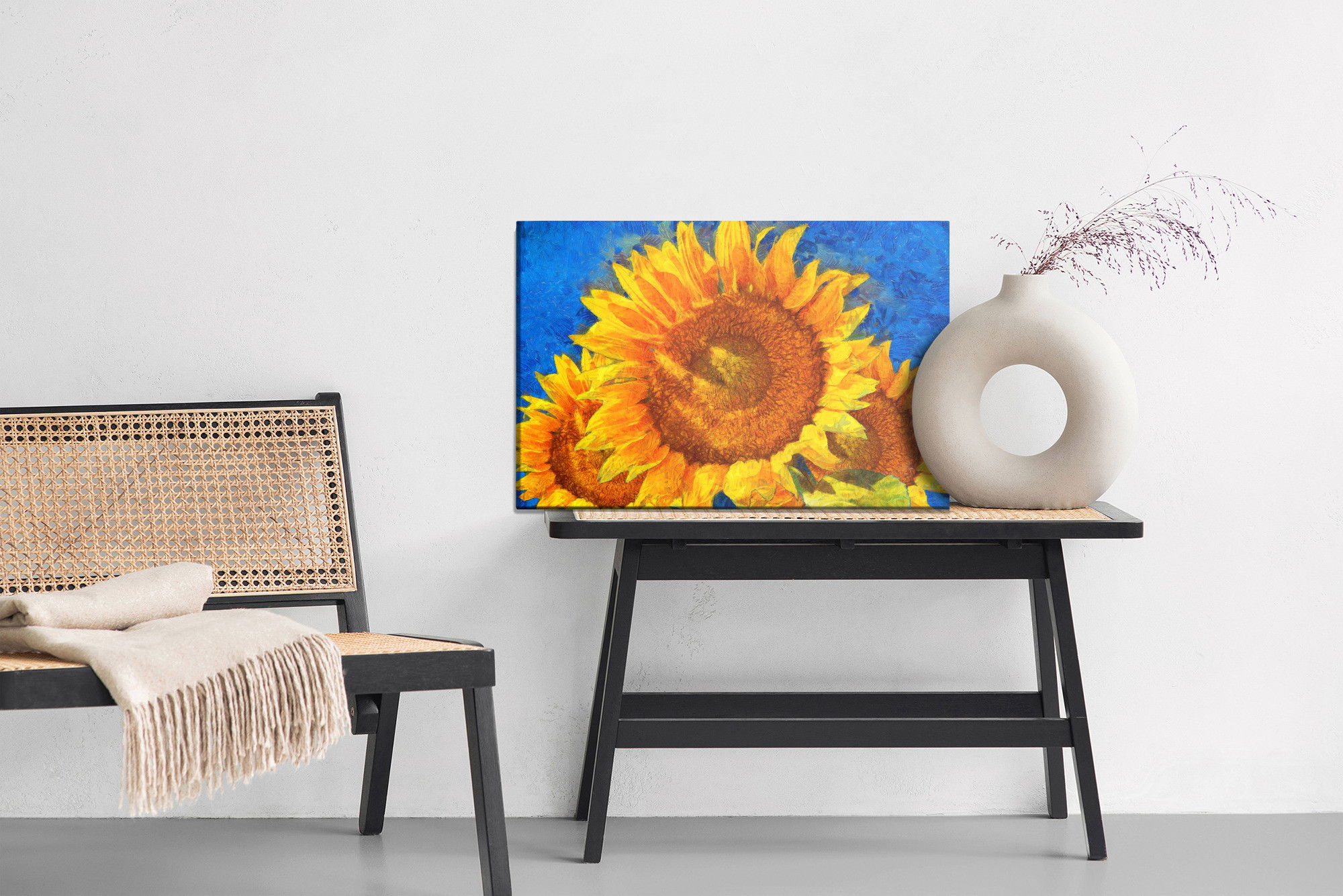Ljuddämpande tavla - Painted sunflowers on a blue