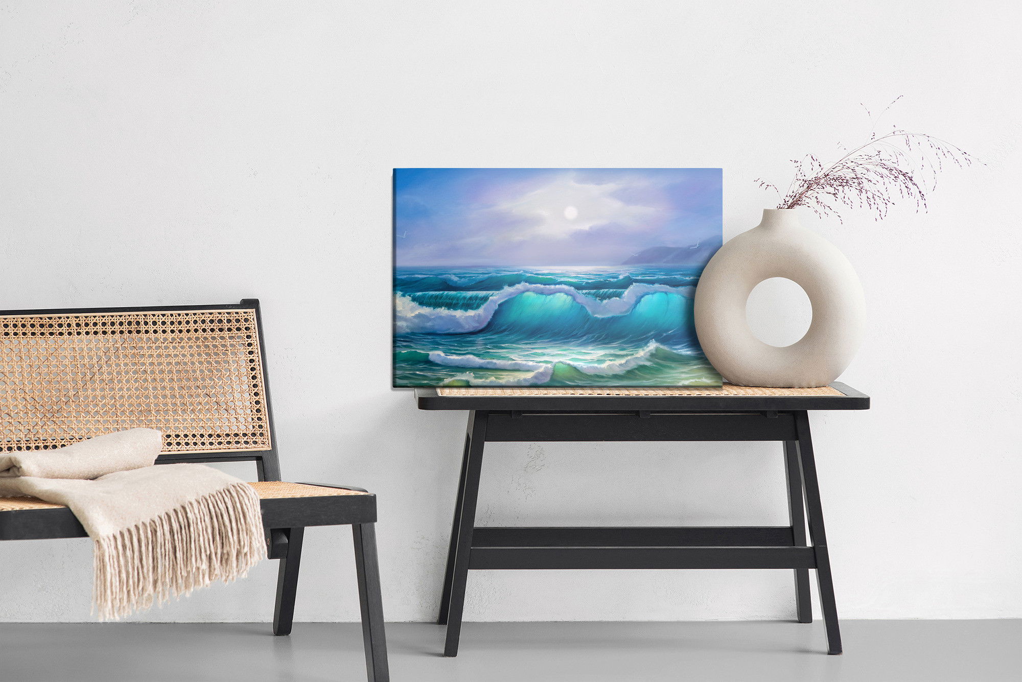 Placera tavlan där du upplever mycket eko eller hög ljudnivå, till exempel i öppna planlösningar, hemmakontor eller sociala ytor. Motiv i denna kategori gör sig särskilt bra i rum där du vill skapa en genomtänkt och sammanhängande känsla. Motiv med hav, vatten och horisonter ger rummet en lugn, djup känsla där mjuka färgskiftningar och ljusreflektioner förstärker atmosfären.
