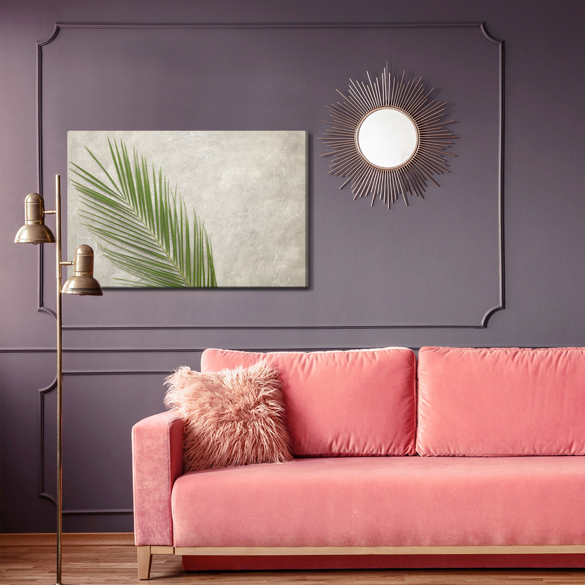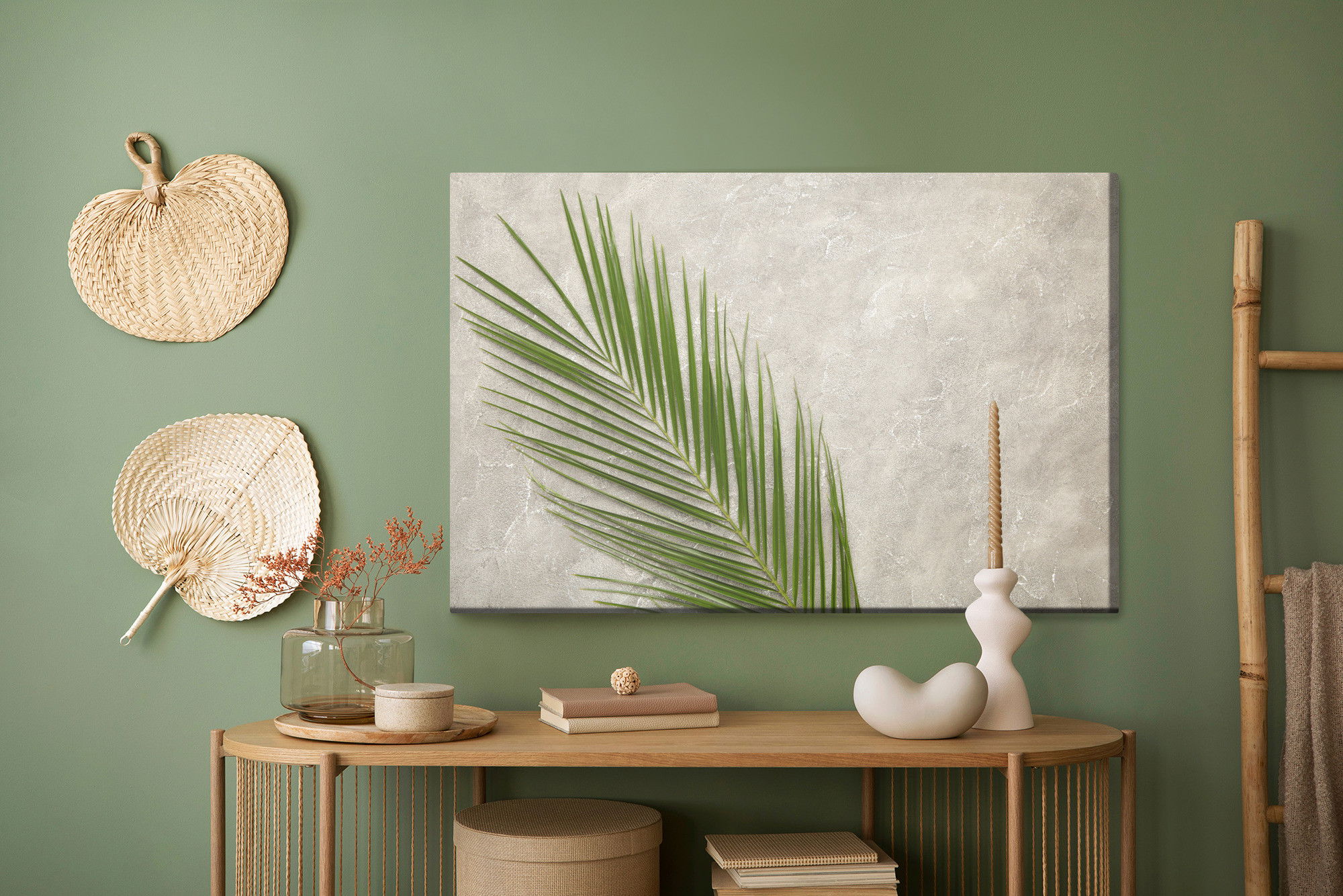 Ljuddämpande tavla – Palm leaf on a concrete för lugnare rum och mjukare akustik