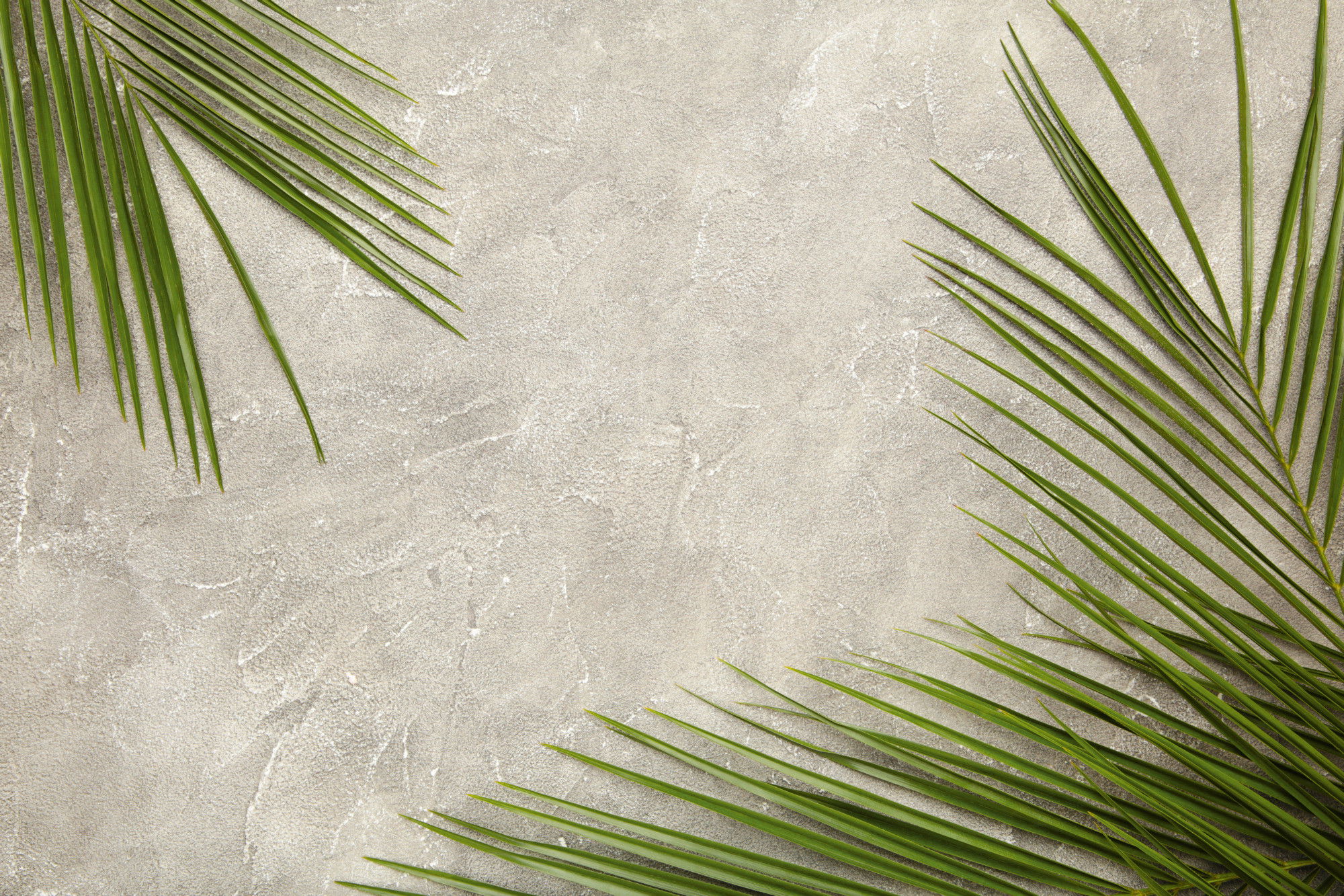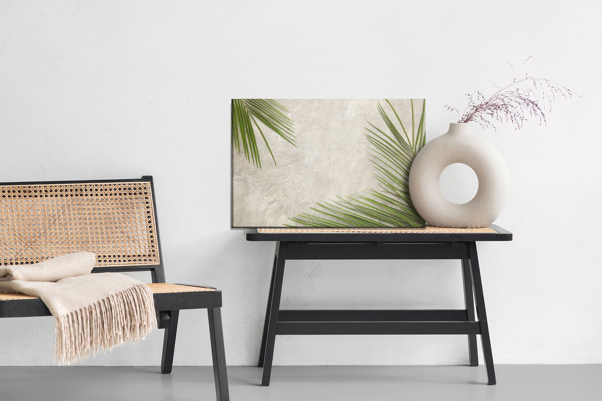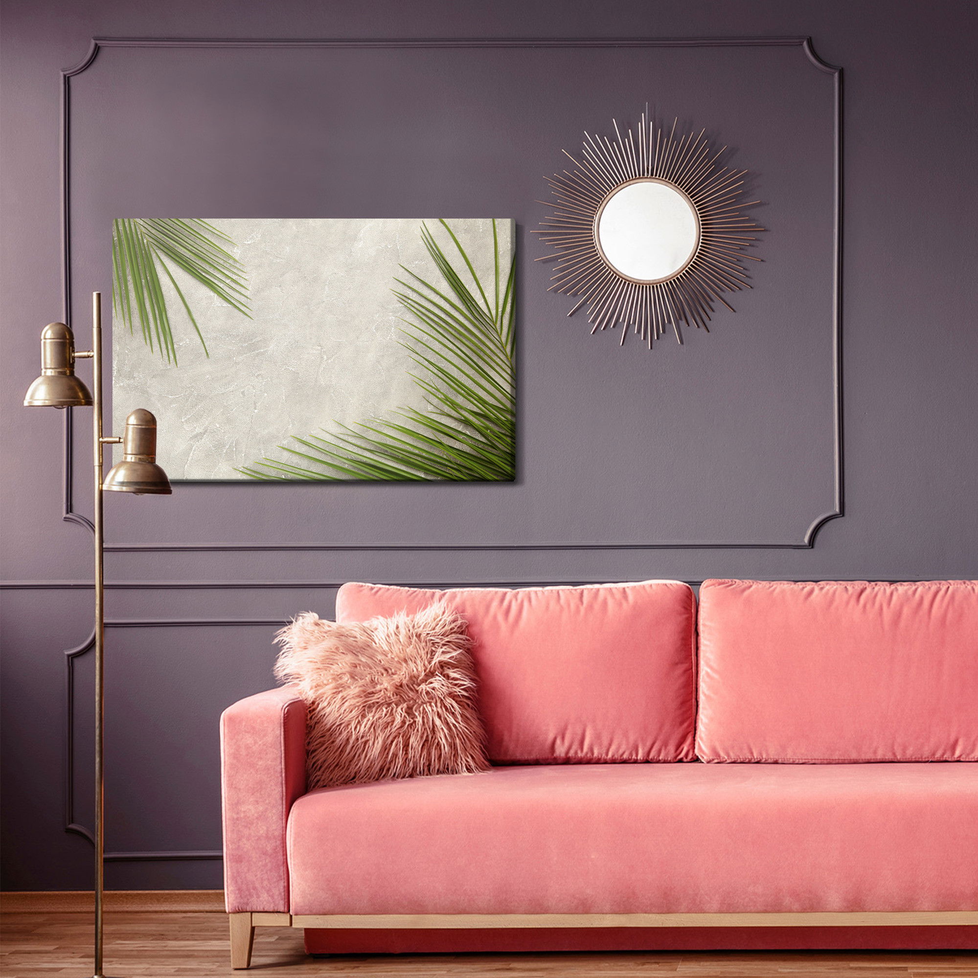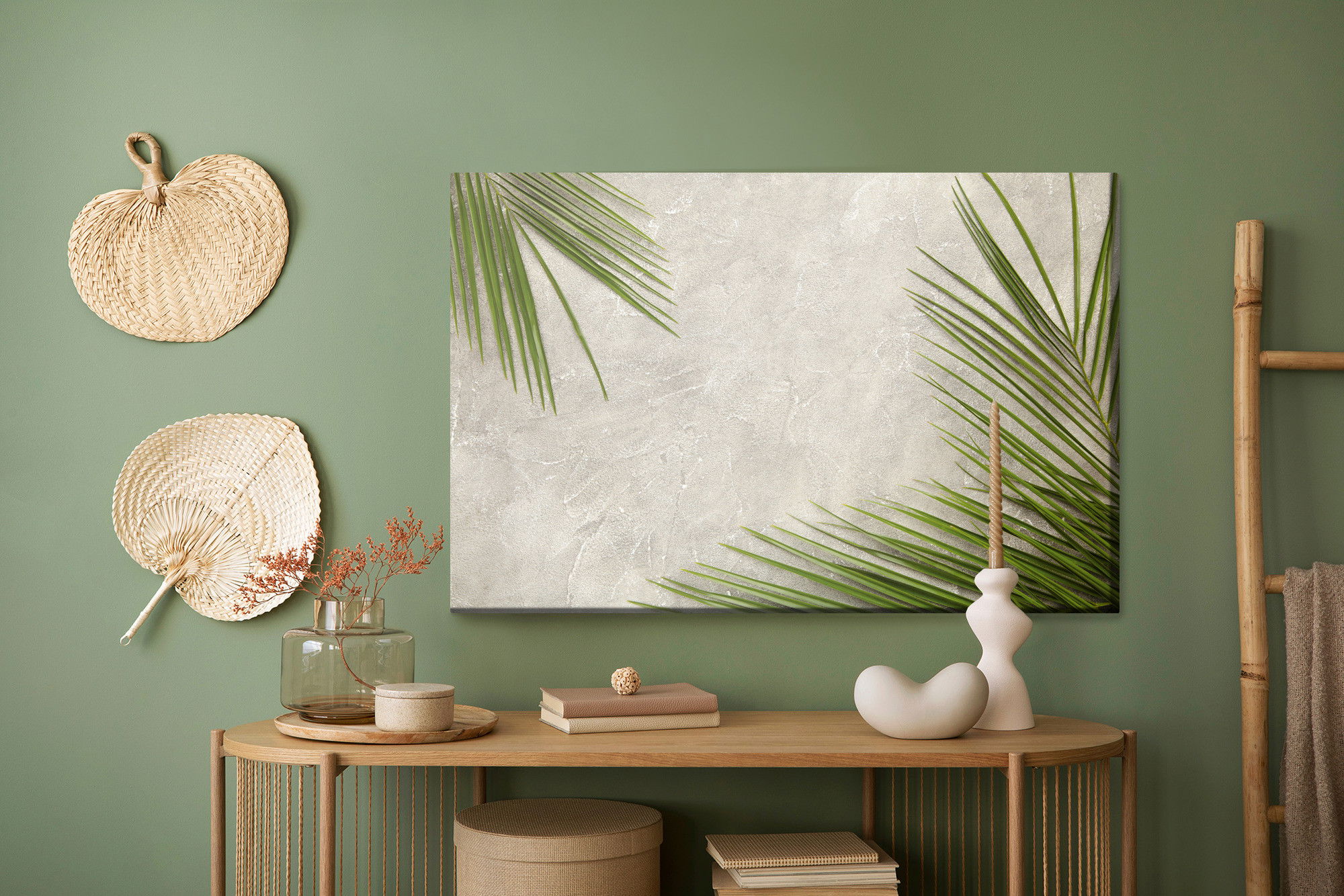 Ljuddämpande tavla – Palm leaves on a concrete för lugnare rum och mjukare akustik