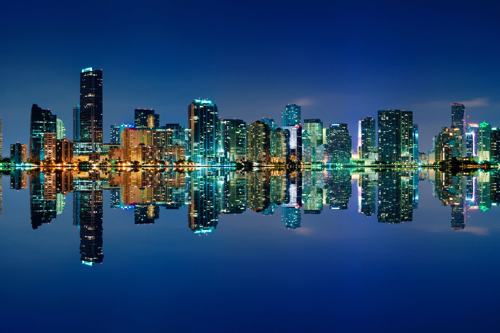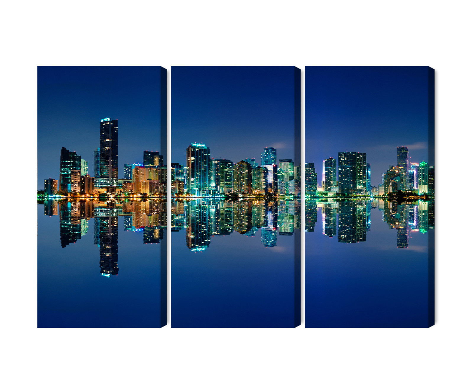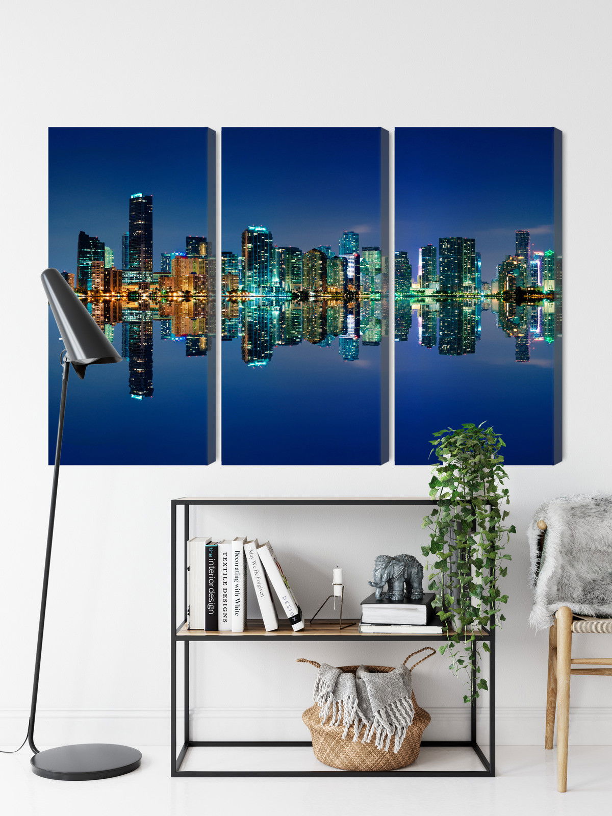 Ljuddämpande tavla – Panorama of miami by night för lugnare rum och mjukare akustik