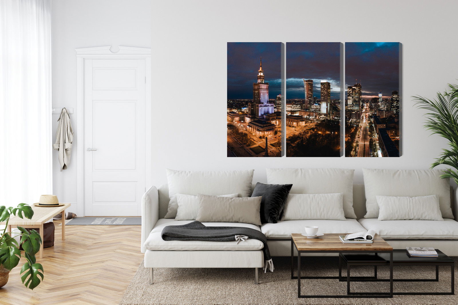 Motivet Panorama of the center återges med hög färgprecision och detaljrikedom tack vare HP Latex-teknologi. Trycket sker med vattenbaserade, luktfria och GREENGUARD Gold-certifierade bläck som ger en upplösning på upp till 300 DPI. Färgerna är UV-beständiga och behåller sin styrka även i ljusa rum, vilket gör tavlan lämplig för både hem- och offentliga miljöer.