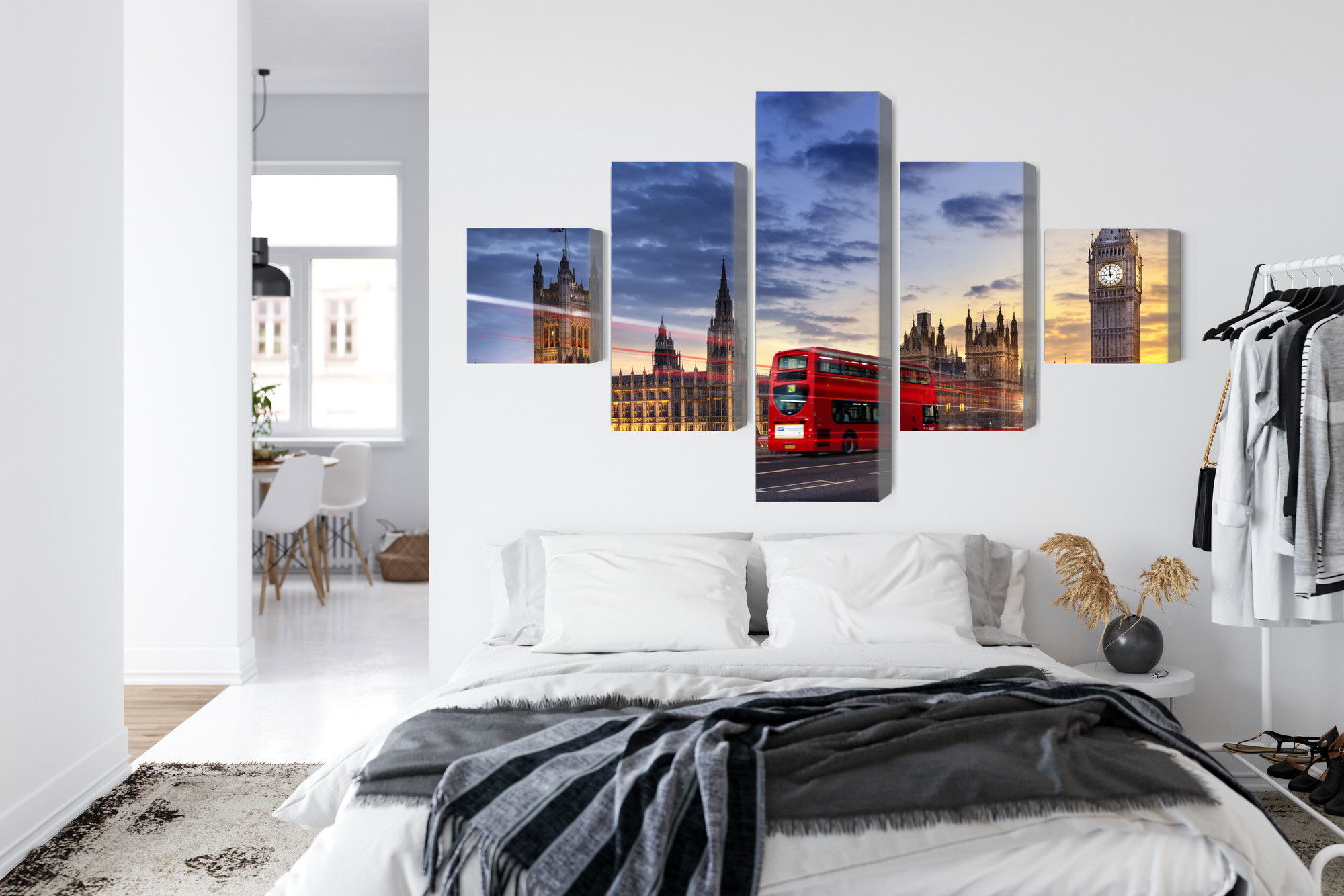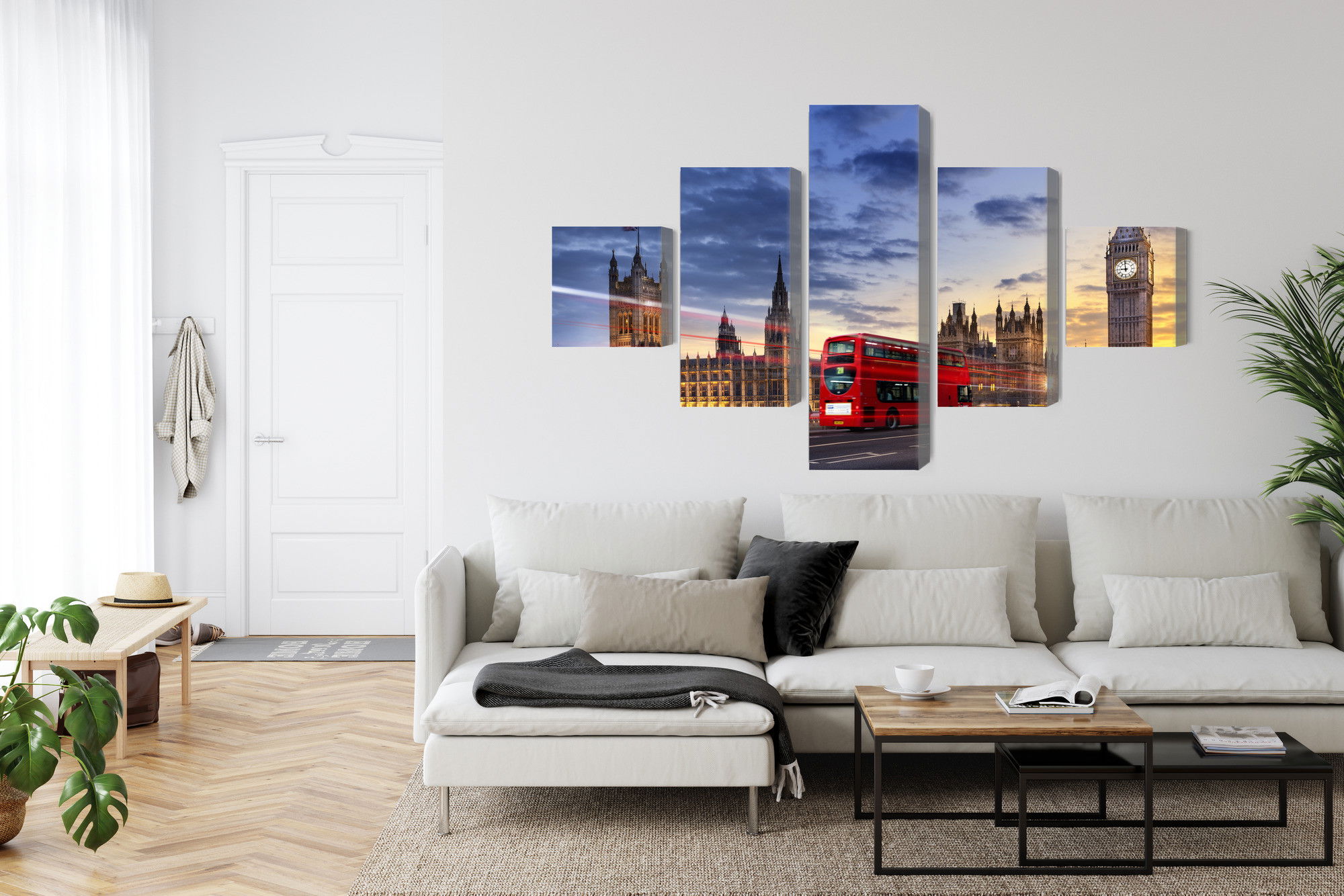 SilentDirects ljuddämpande tavla Panorama of westminster kombinerar ett högupplöst motiv med avancerad akustikteknik. Varje tavla monteras i Sverige och bygger på en stabil canvastavla med fururam, där insidan av ramen fylls med en ljudabsorberande kärna av återvunnen polyester. Konstruktionen gör tavlan till ett både estetiskt och funktionellt inslag i rummet.
