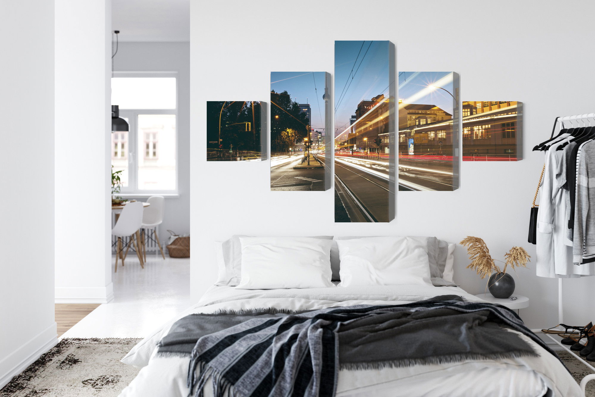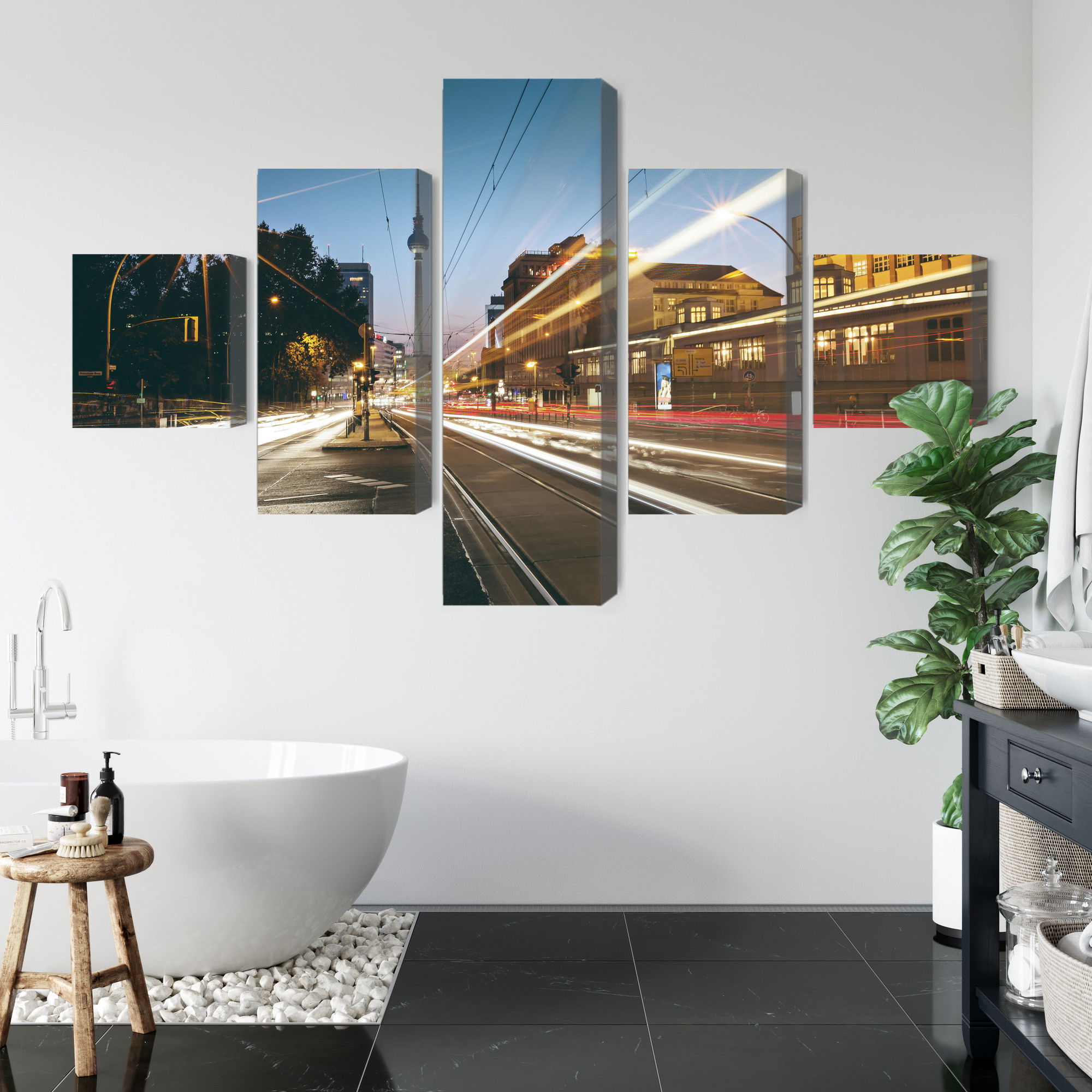 Placera tavlan där du upplever mycket eko eller hög ljudnivå, till exempel i öppna planlösningar, hemmakontor eller sociala ytor. Motiv i denna kategori gör sig särskilt bra i rum där du vill skapa en genomtänkt och sammanhängande känsla. Stadsmotiv med arkitektur, gator och silhuetter ger rummet ett mer urbant uttryck där linjer och perspektiv tillför energi och struktur.