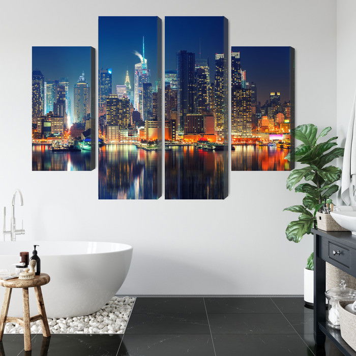 Motivet Panoramic view of manhattan återges med hög färgprecision och detaljrikedom tack vare HP Latex-teknologi. Trycket sker med vattenbaserade, luktfria och GREENGUARD Gold-certifierade bläck som ger en upplösning på upp till 300 DPI. Färgerna är UV-beständiga och behåller sin styrka även i ljusa rum, vilket gör tavlan lämplig för både hem- och offentliga miljöer.
