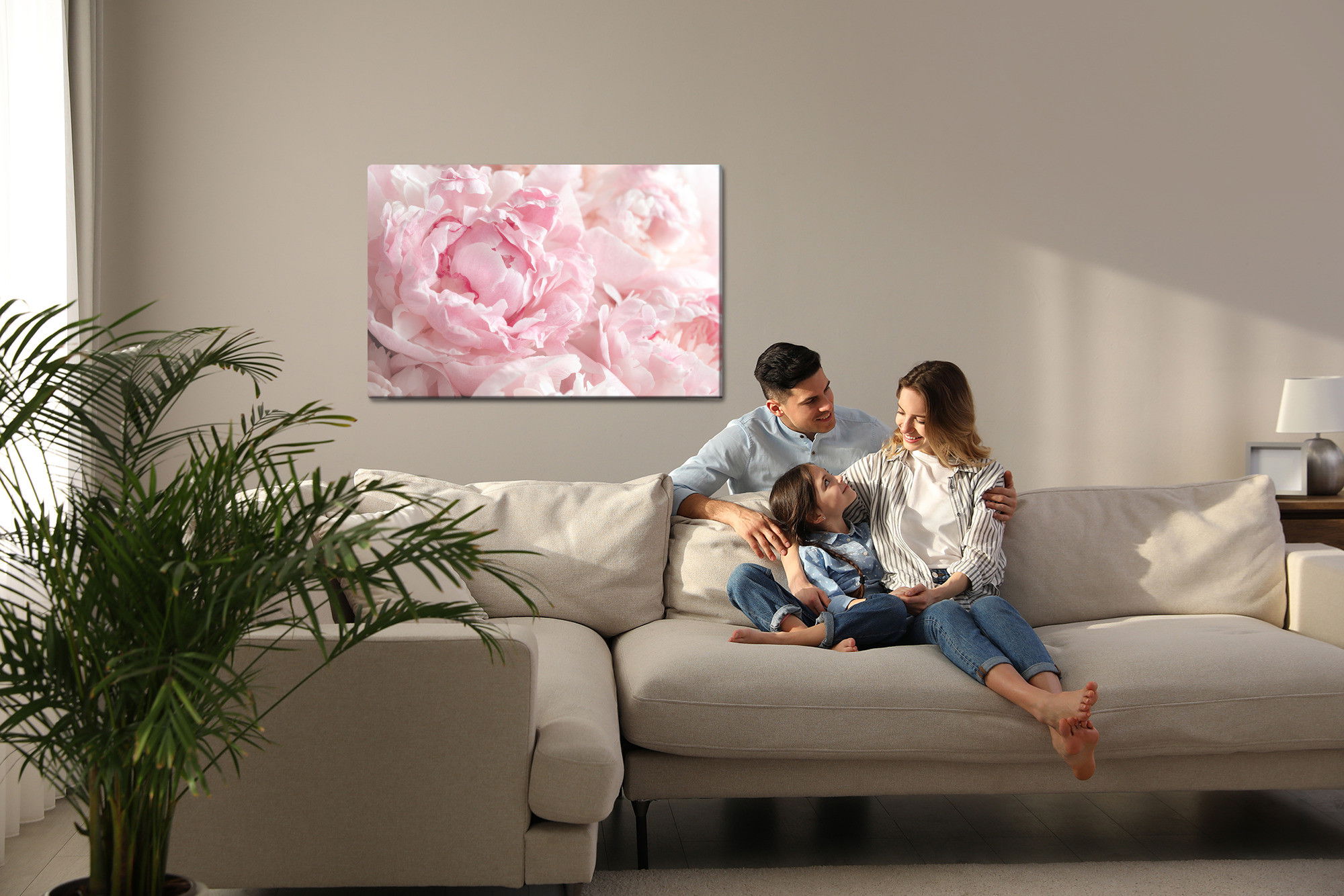 Motivet Peonies in light pink återges med hög färgprecision och detaljrikedom tack vare HP Latex-teknologi. Trycket sker med vattenbaserade, luktfria och GREENGUARD Gold-certifierade bläck som ger en upplösning på upp till 300 DPI. Färgerna är UV-beständiga och behåller sin styrka även i ljusa rum, vilket gör tavlan lämplig för både hem- och offentliga miljöer.
