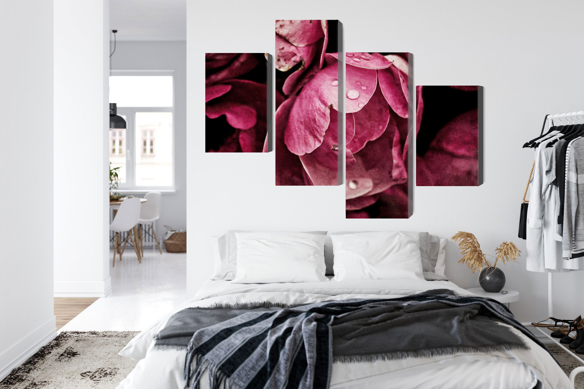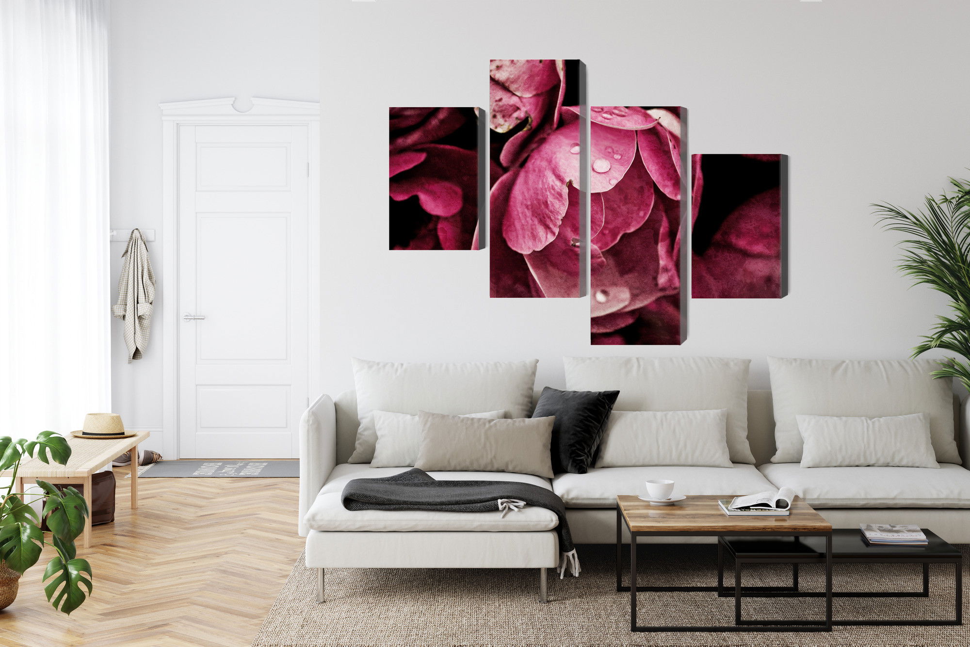 Placera tavlan där du upplever mycket eko eller hög ljudnivå, till exempel i öppna planlösningar, hemmakontor eller sociala ytor. Motiv i denna kategori gör sig särskilt bra i rum där du vill skapa en genomtänkt och sammanhängande känsla. Blommotiv bidrar med subtil detaljrikedom och naturliga färgövergångar som gör rummet välkomnande och levande utan att ta över helheten.