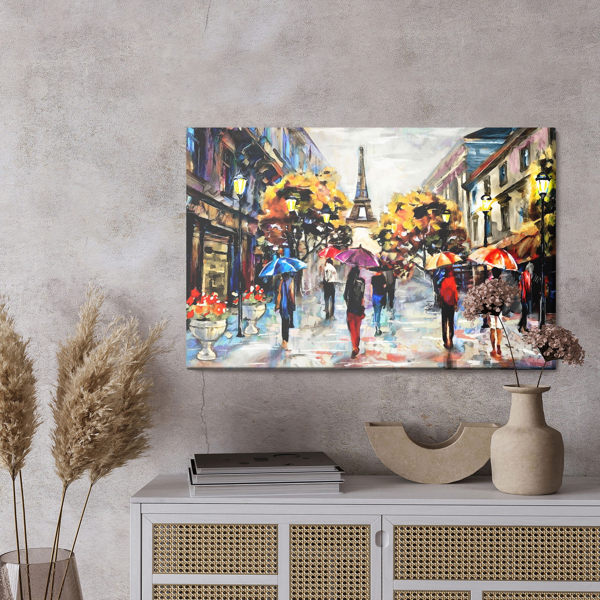 Placera tavlan där du upplever mycket eko eller hög ljudnivå, till exempel i öppna planlösningar, hemmakontor eller sociala ytor. Motiv i denna kategori gör sig särskilt bra i rum där du vill skapa en genomtänkt och sammanhängande känsla. Stadsmotiv med arkitektur, gator och silhuetter ger rummet ett mer urbant uttryck där linjer och perspektiv tillför energi och struktur.