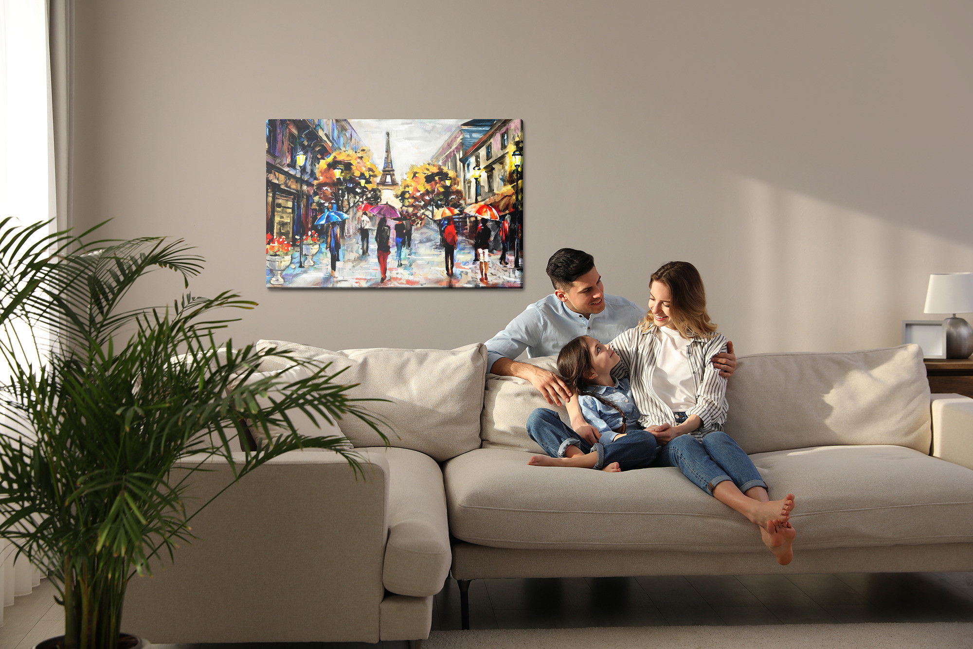 Varje tavla monteras på en massiv fururam. Format upp till 70×50 cm har en ram på 15 mm, medan format från 90×60 cm och uppåt har en ram på 20 mm. Den exakta dukspänningen gör att tavlan håller sin form över tid. Motivet People with colorful trycks runt hela ramen vilket ger ett stilrent galleriuttryck där tavlan är lika vacker från sidan som framifrån. Kombinationen av rak dukspänning, rena linjer och korrekt tryck ger en professionell finish.