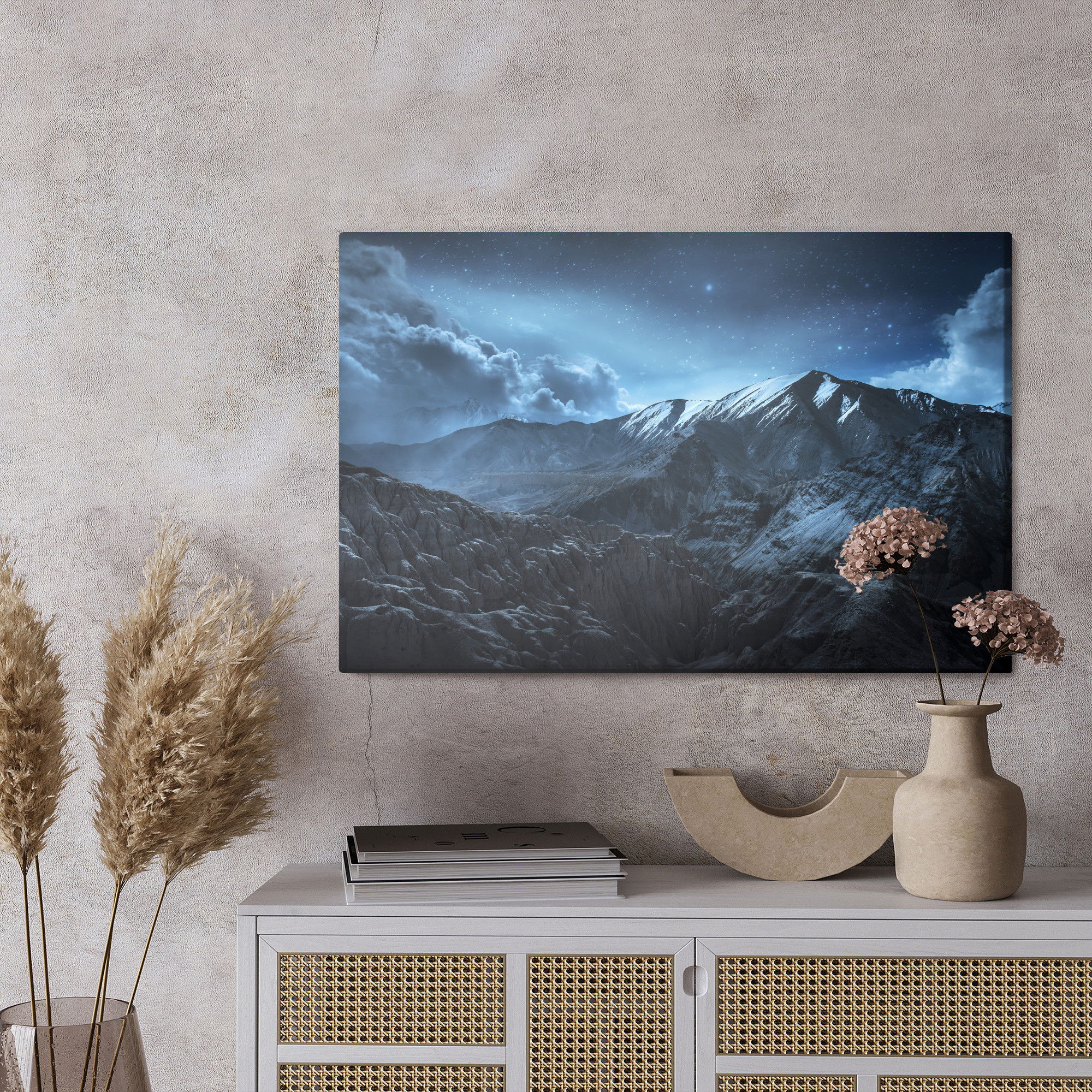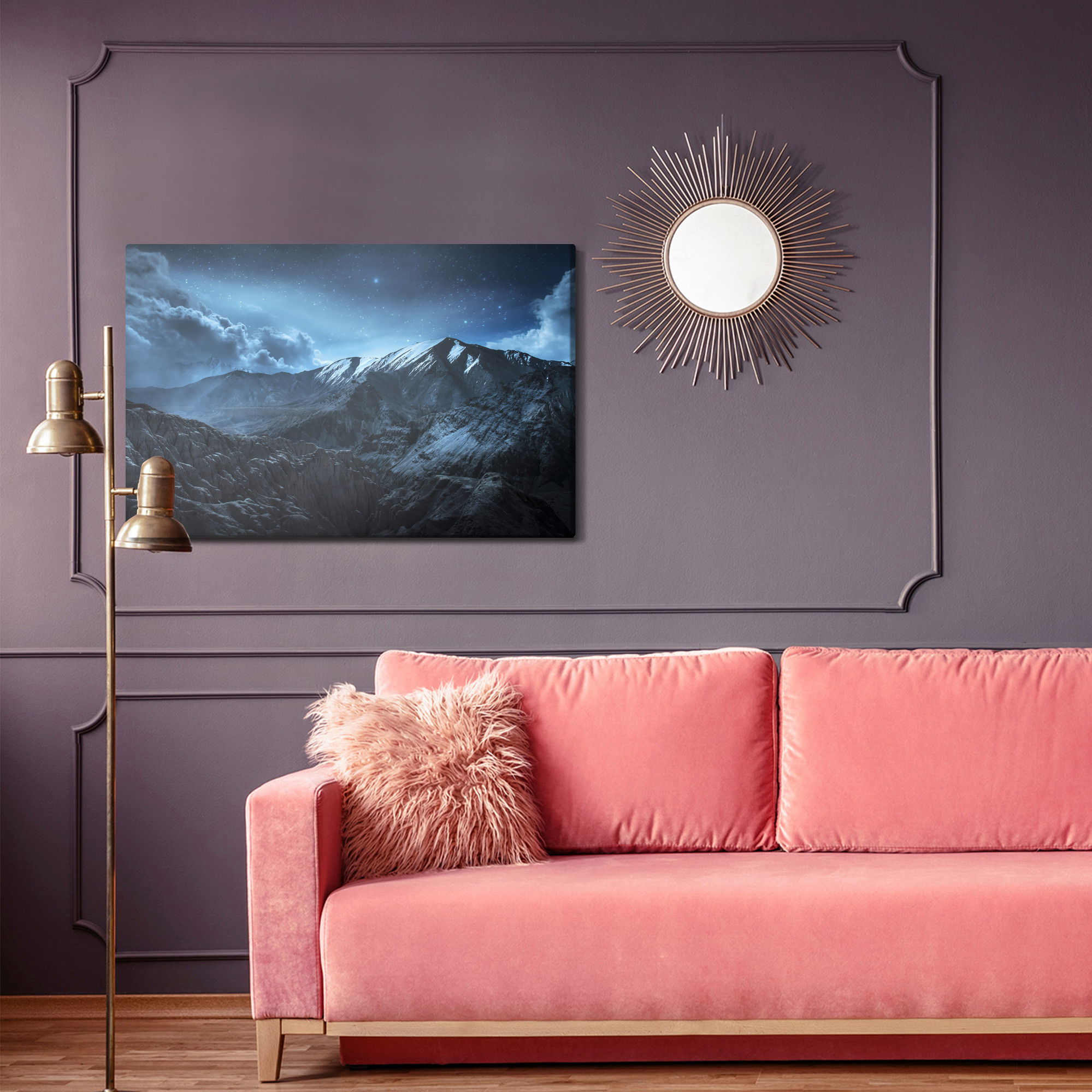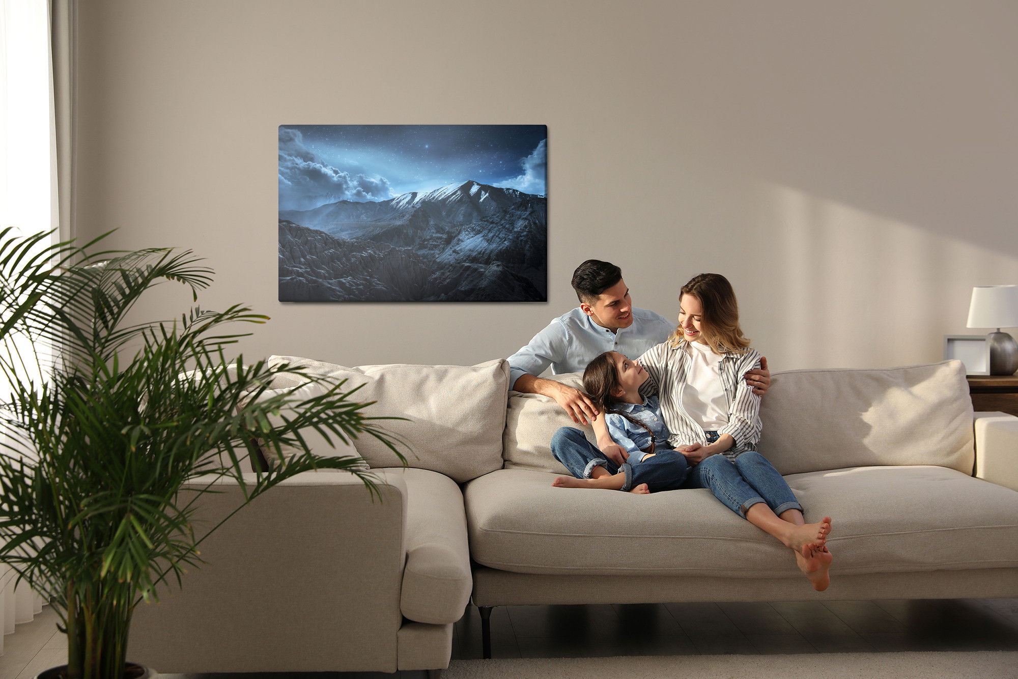 Motivet Picturesque mountain återges med hög färgprecision och detaljrikedom tack vare HP Latex-teknologi. Trycket sker med vattenbaserade, luktfria och GREENGUARD Gold-certifierade bläck som ger en upplösning på upp till 300 DPI. Färgerna är UV-beständiga och behåller sin styrka även i ljusa rum, vilket gör tavlan lämplig för både hem- och offentliga miljöer.