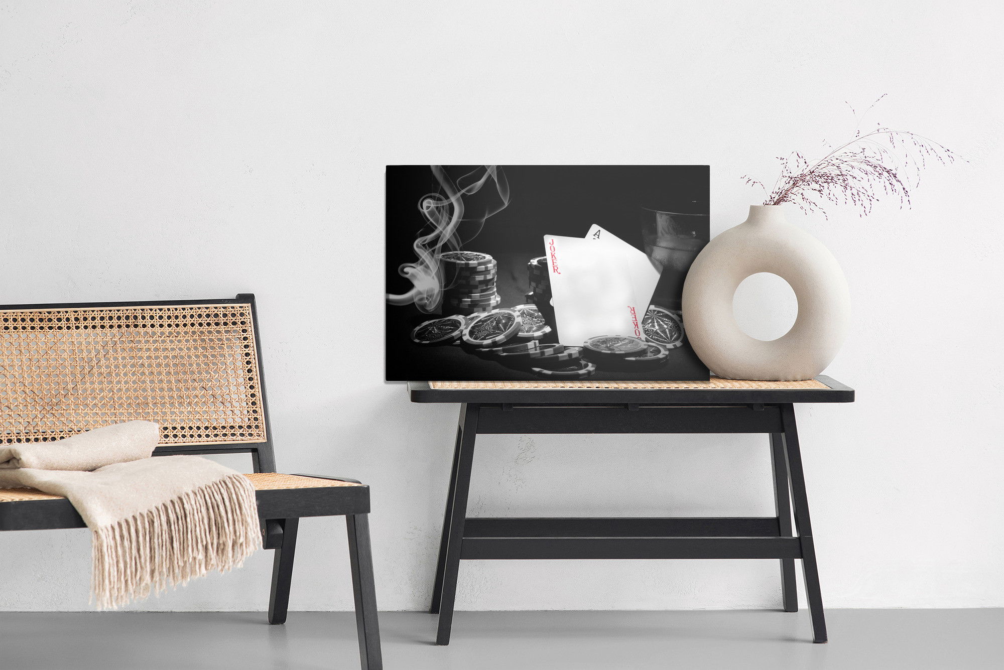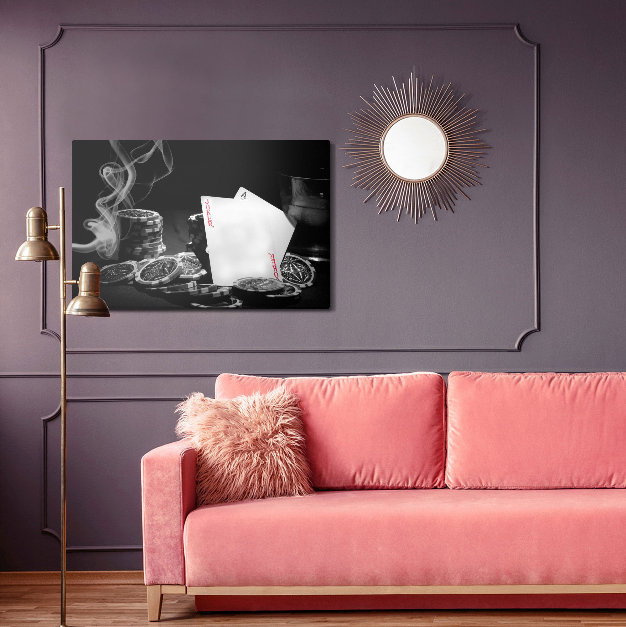 Motivet Poker set återges med hög färgprecision och detaljrikedom tack vare HP Latex-teknologi. Trycket sker med vattenbaserade, luktfria och GREENGUARD Gold-certifierade bläck som ger en upplösning på upp till 300 DPI. Färgerna är UV-beständiga och behåller sin styrka även i ljusa rum, vilket gör tavlan lämplig för både hem- och offentliga miljöer.