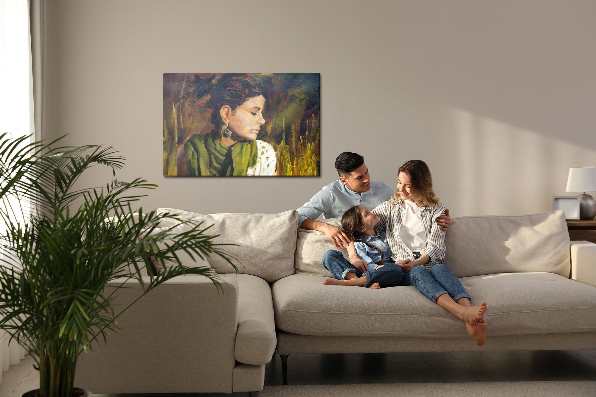 Ljuddämpande tavla – Portrait of a woman för lugnare rum och mjukare akustik