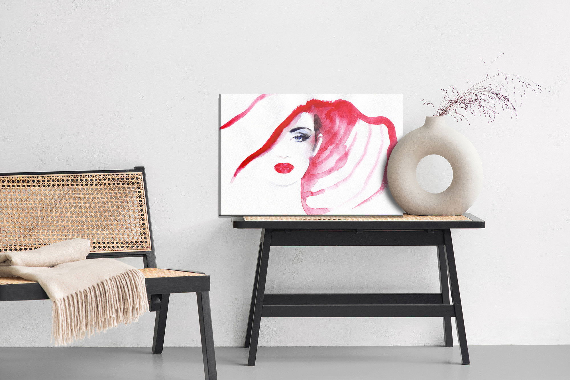 Varje tavla monteras på en massiv fururam. Format upp till 70×50 cm har en ram på 15 mm, medan format från 90×60 cm och uppåt har en ram på 20 mm. Den exakta dukspänningen gör att tavlan håller sin form över tid. Motivet Portrait of a woman in a hat trycks runt hela ramen vilket ger ett stilrent galleriuttryck där tavlan är lika vacker från sidan som framifrån. Kombinationen av rak dukspänning, rena linjer och korrekt tryck ger en professionell finish.