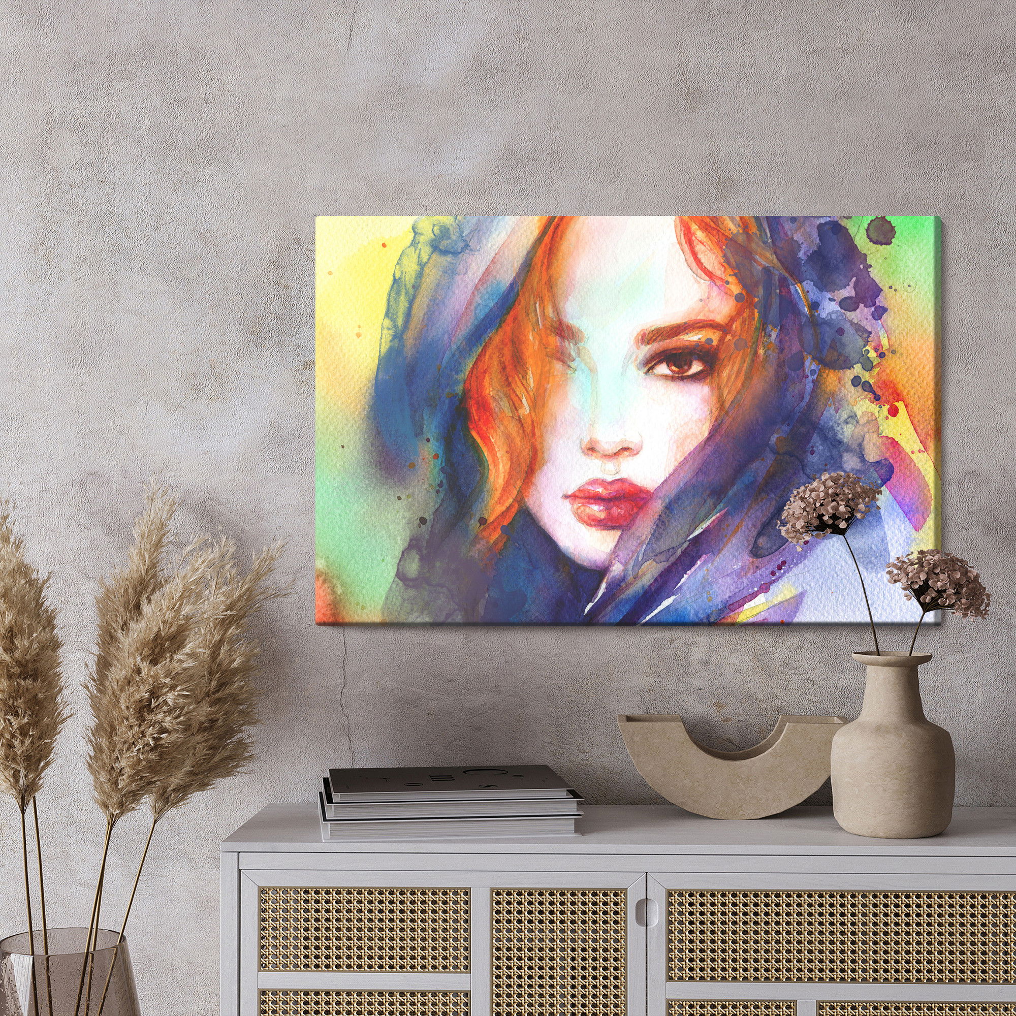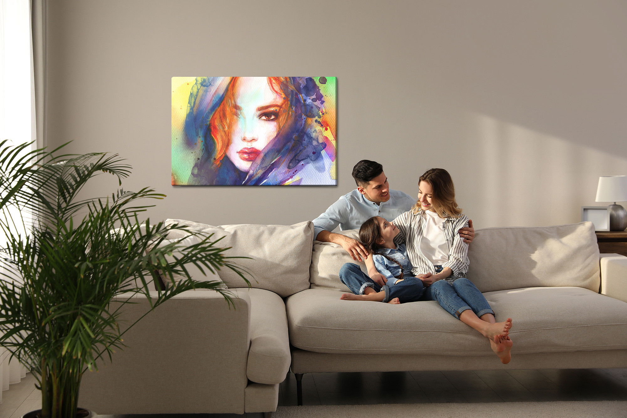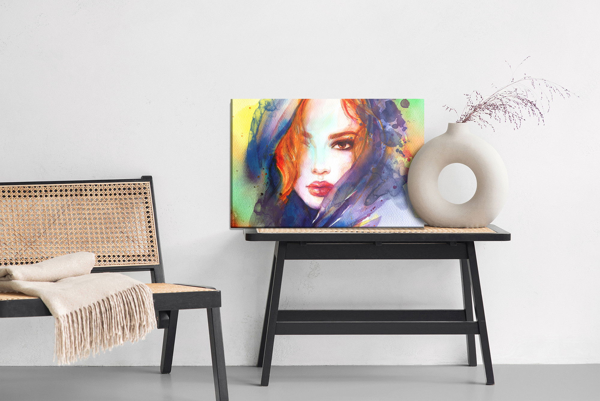 Motivet Portrait of a young woman återges med hög färgprecision och detaljrikedom tack vare HP Latex-teknologi. Trycket sker med vattenbaserade, luktfria och GREENGUARD Gold-certifierade bläck som ger en upplösning på upp till 300 DPI. Färgerna är UV-beständiga och behåller sin styrka även i ljusa rum, vilket gör tavlan lämplig för både hem- och offentliga miljöer.