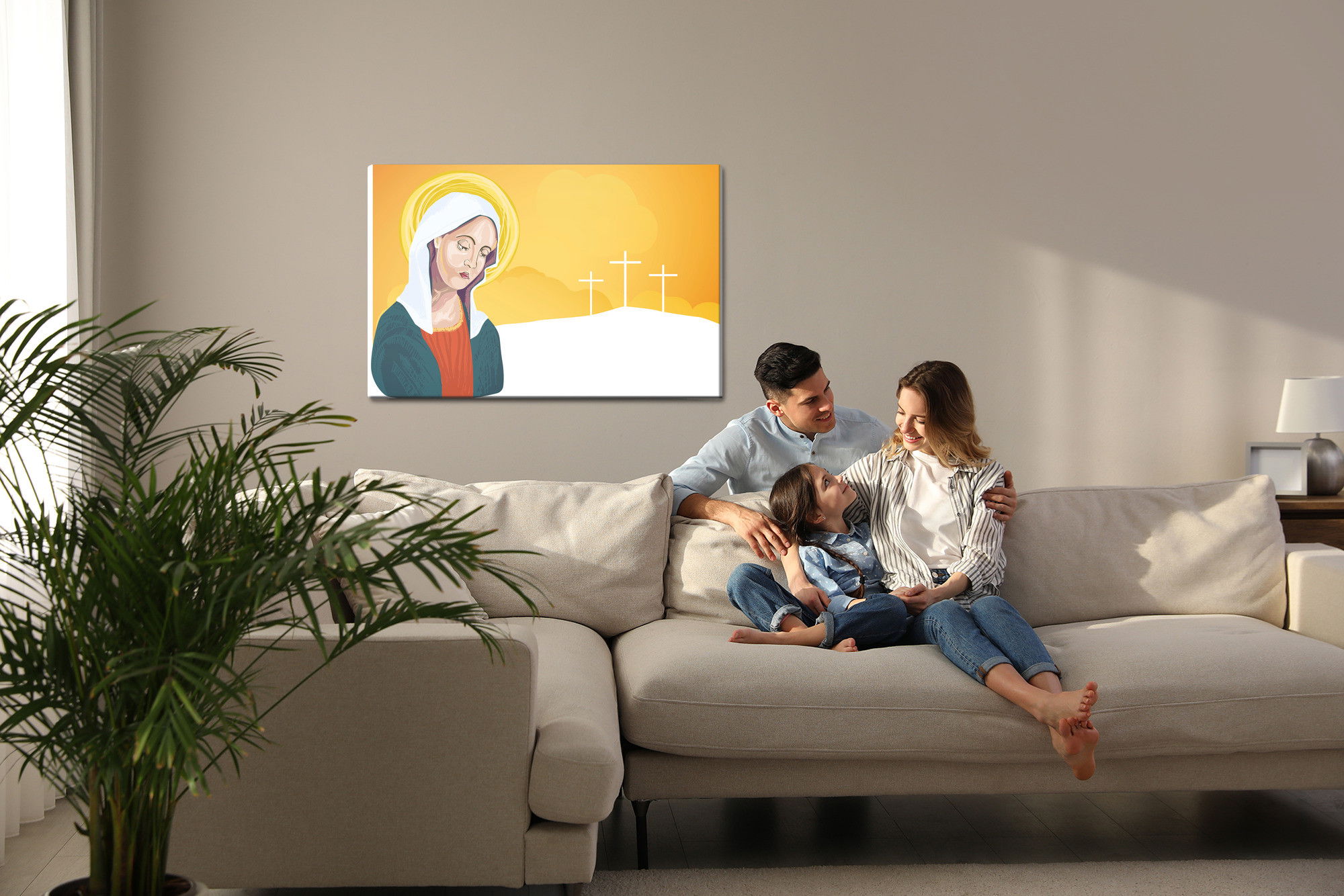 Motivet Portrait of the blessed återges med hög färgprecision och detaljrikedom tack vare HP Latex-teknologi. Trycket sker med vattenbaserade, luktfria och GREENGUARD Gold-certifierade bläck som ger en upplösning på upp till 300 DPI. Färgerna är UV-beständiga och behåller sin styrka även i ljusa rum, vilket gör tavlan lämplig för både hem- och offentliga miljöer.