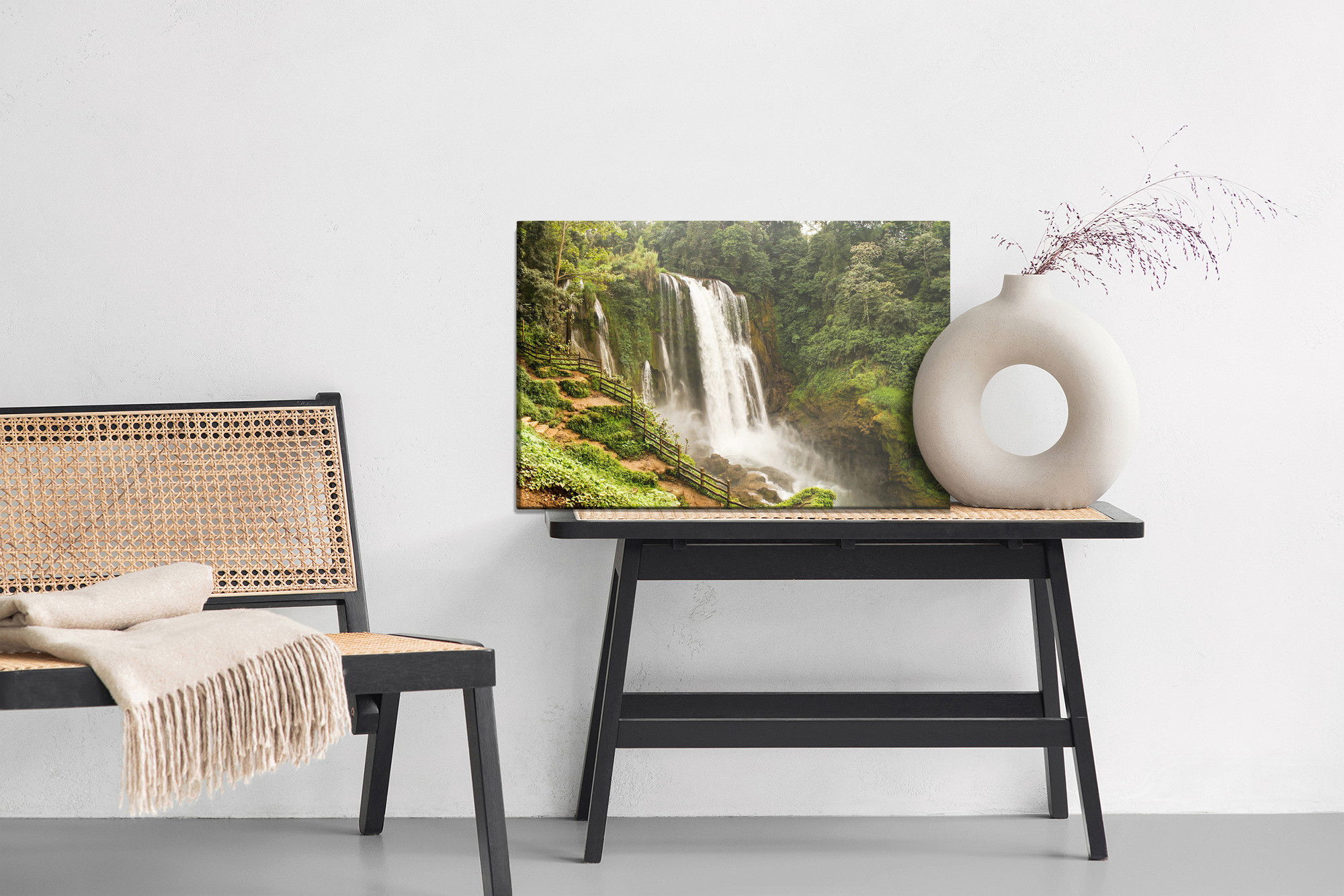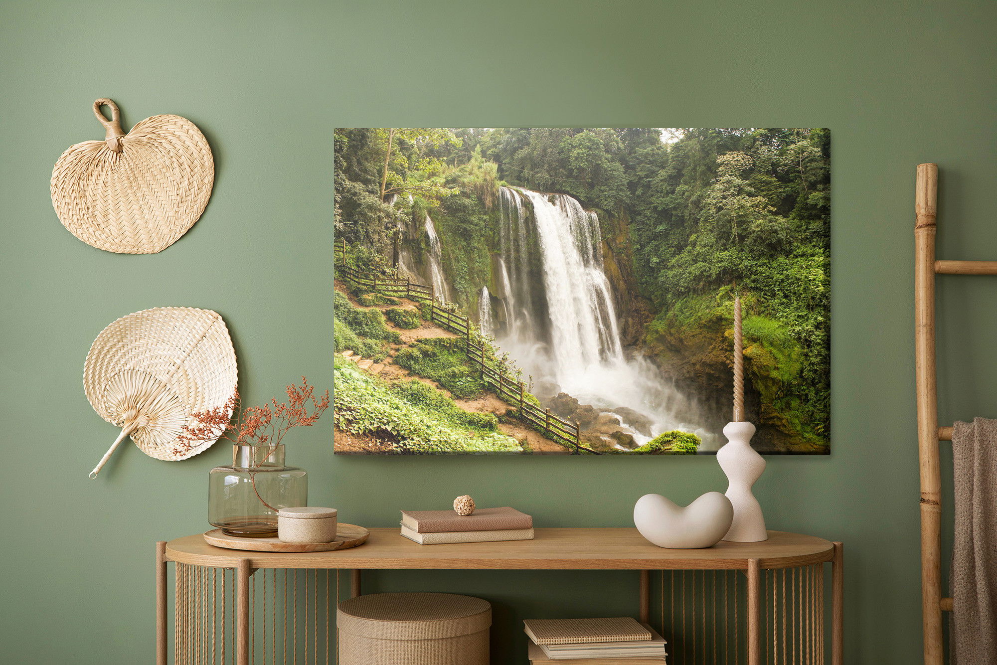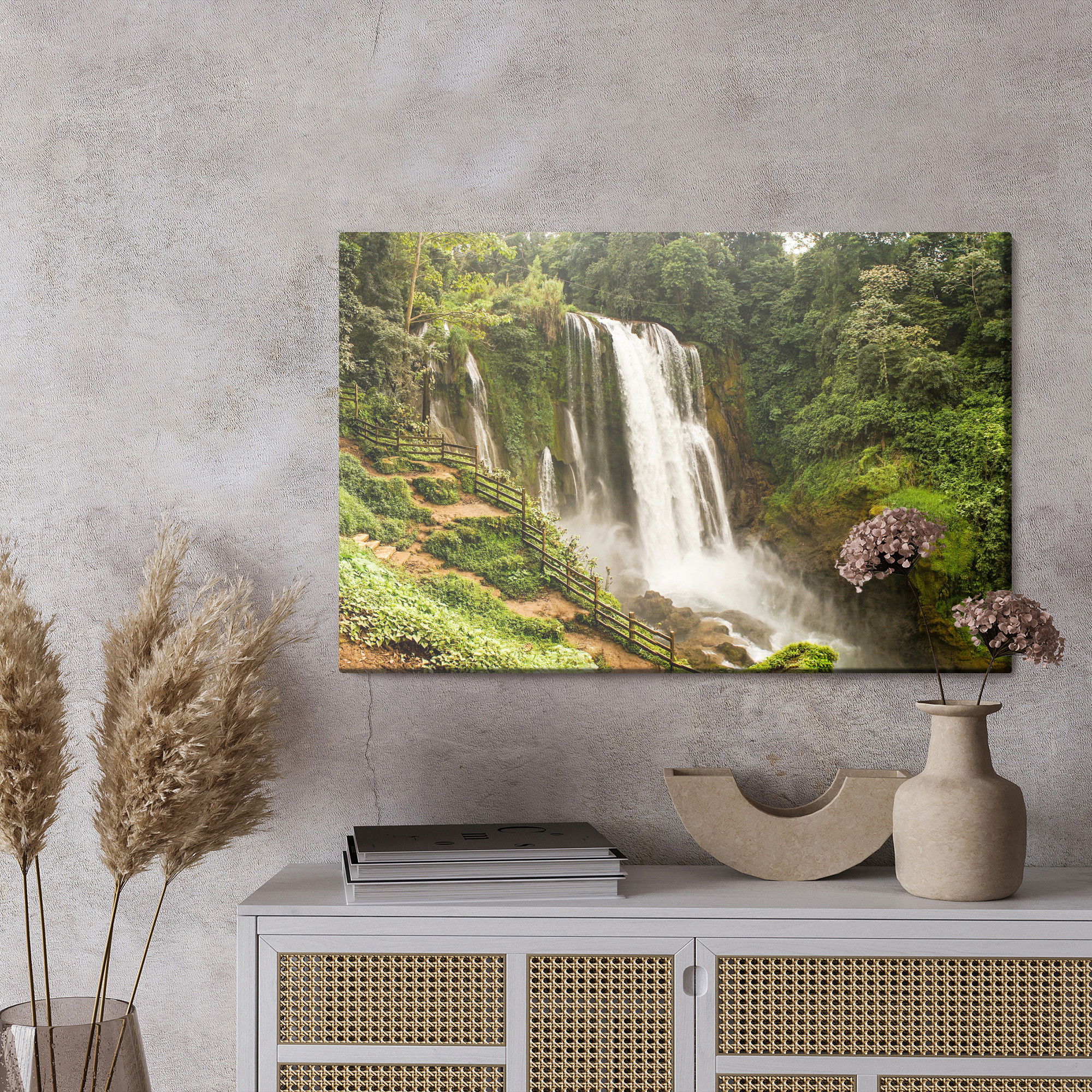 Motivet Pulhapanzak waterfall återges med hög färgprecision och detaljrikedom tack vare HP Latex-teknologi. Trycket sker med vattenbaserade, luktfria och GREENGUARD Gold-certifierade bläck som ger en upplösning på upp till 300 DPI. Färgerna är UV-beständiga och behåller sin styrka även i ljusa rum, vilket gör tavlan lämplig för både hem- och offentliga miljöer.