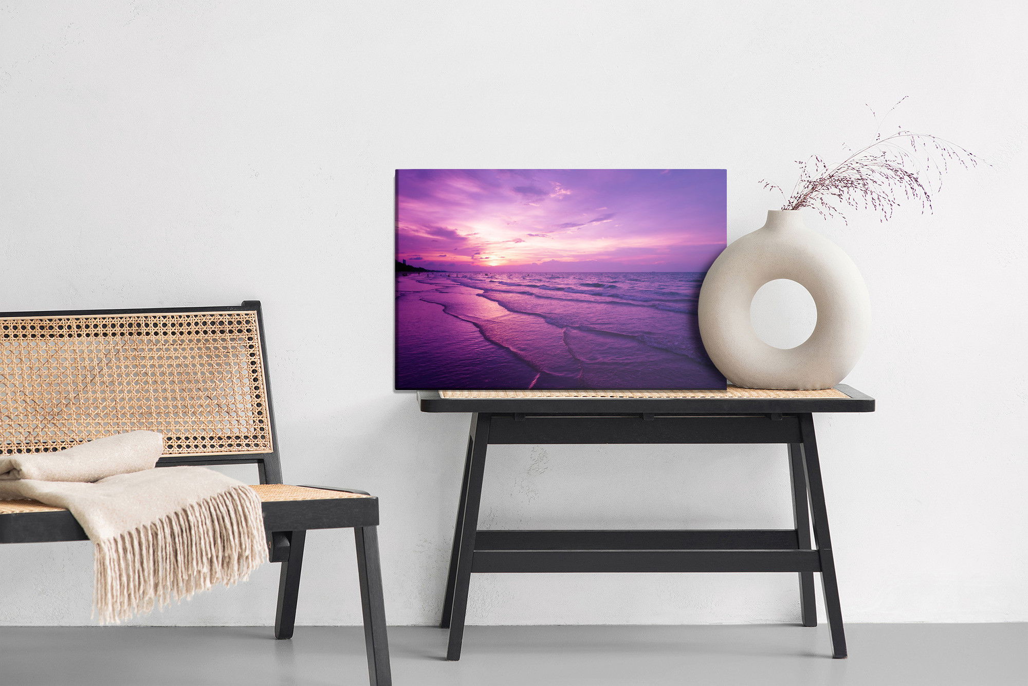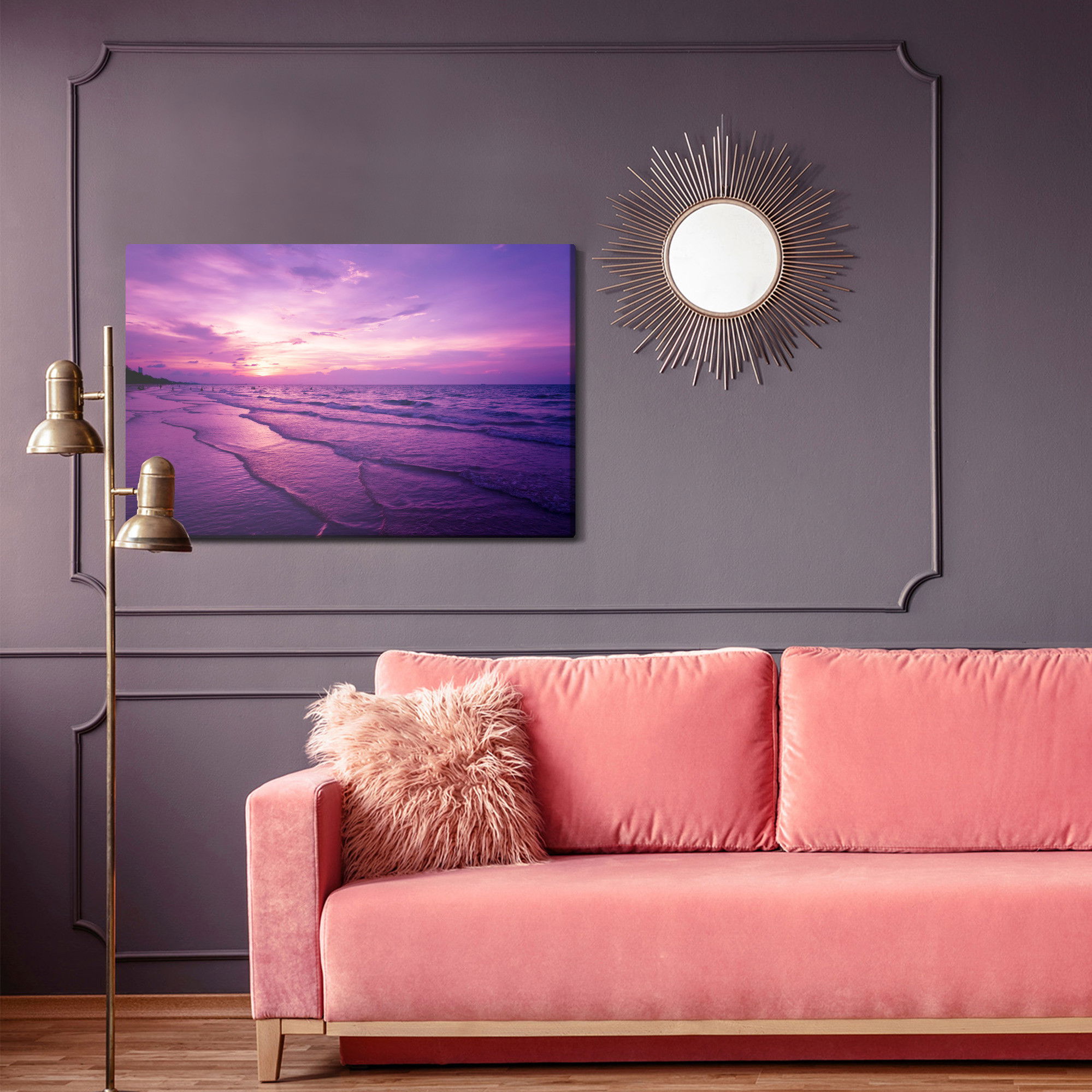 Ljuddämpande tavla – Purple sunset over the sea för lugnare rum och mjukare akustik