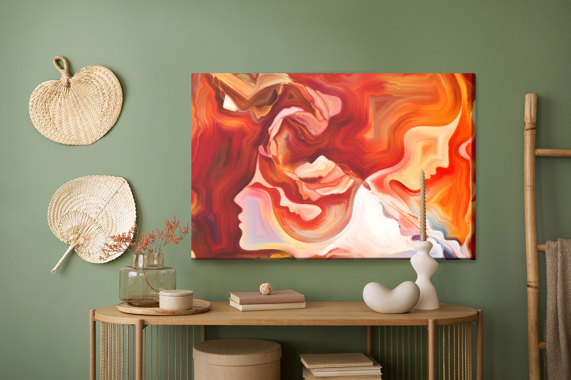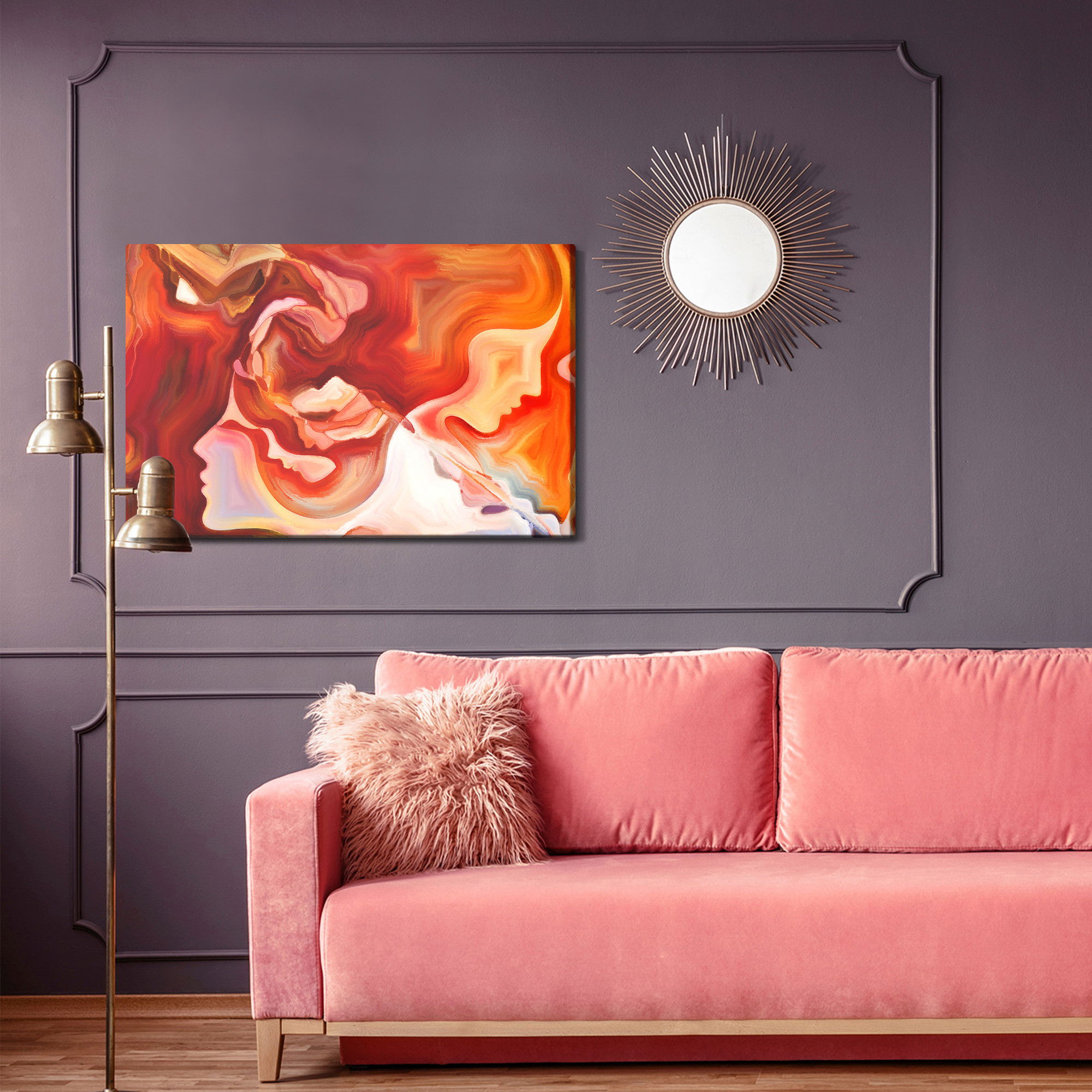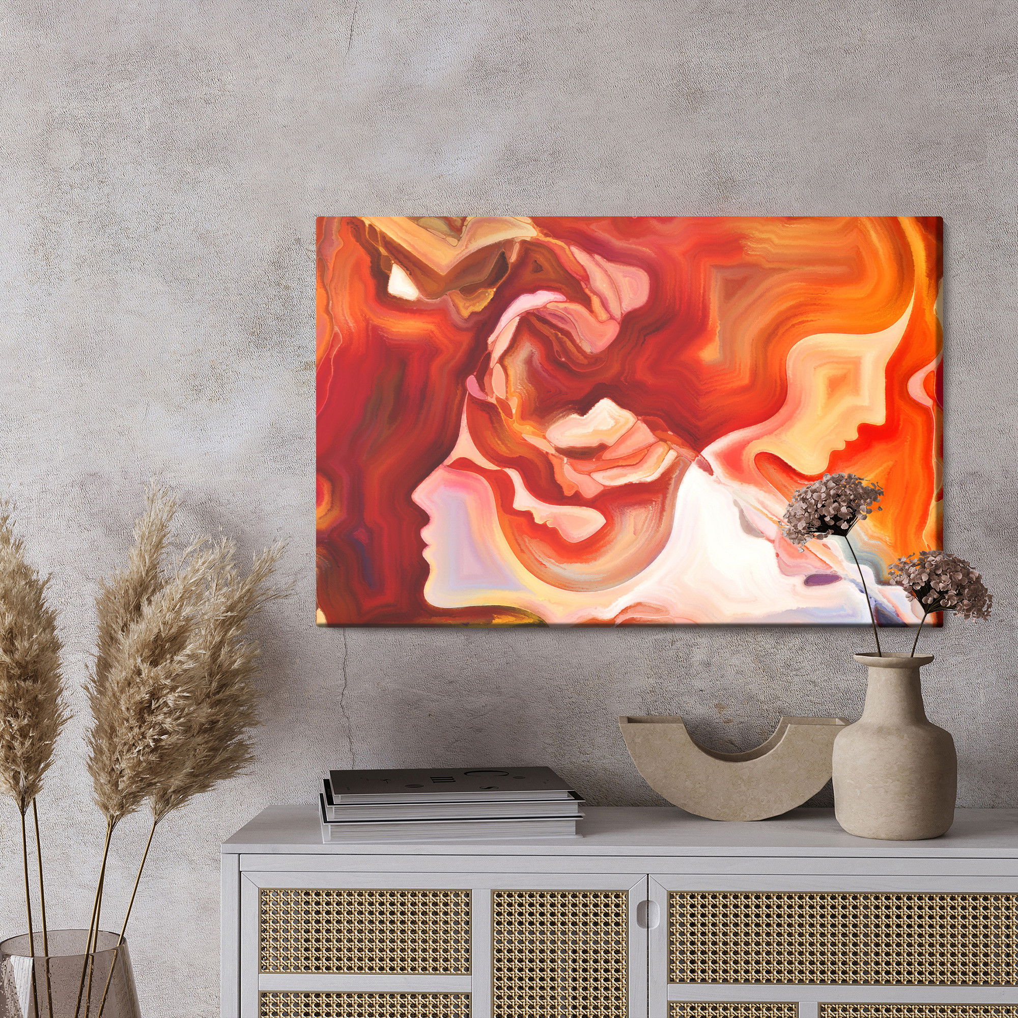 Ljuddämpande tavla – Red abstraction with face för lugnare rum och mjukare akustik