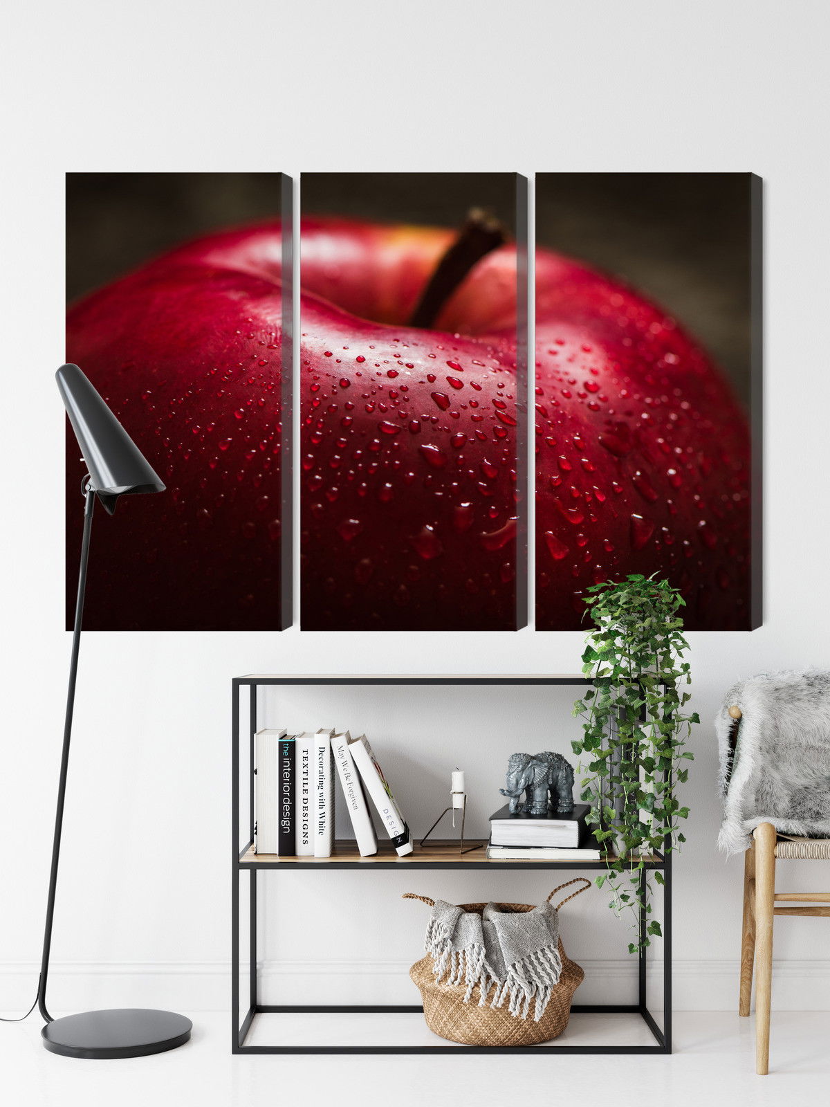 Varje tavla monteras på en massiv fururam. Format upp till 70×50 cm har en ram på 15 mm, medan format från 90×60 cm och uppåt har en ram på 20 mm. Den exakta dukspänningen gör att tavlan håller sin form över tid. Motivet Red apple on a macro scale trycks runt hela ramen vilket ger ett stilrent galleriuttryck där tavlan är lika vacker från sidan som framifrån. Kombinationen av rak dukspänning, rena linjer och korrekt tryck ger en professionell finish.