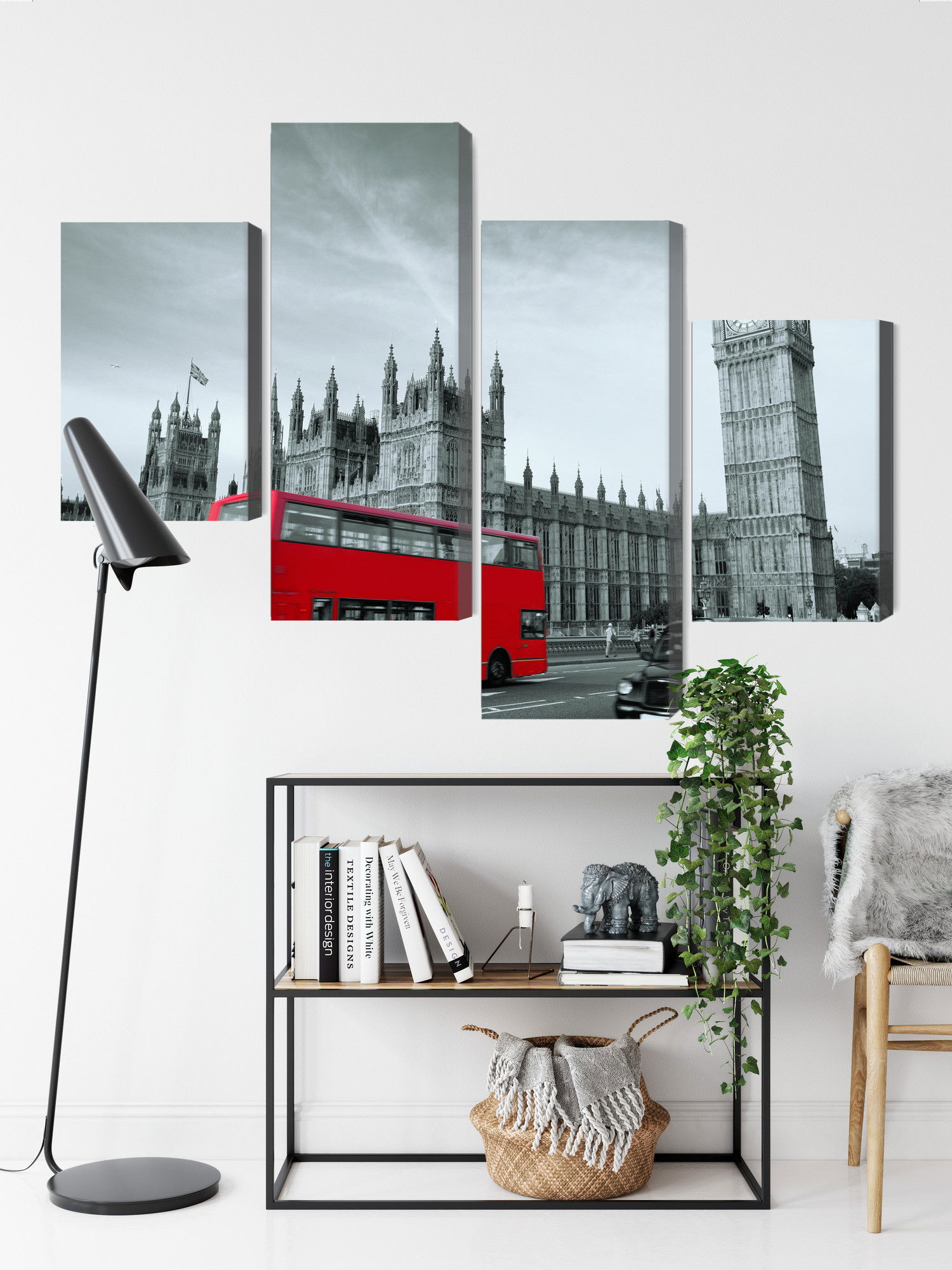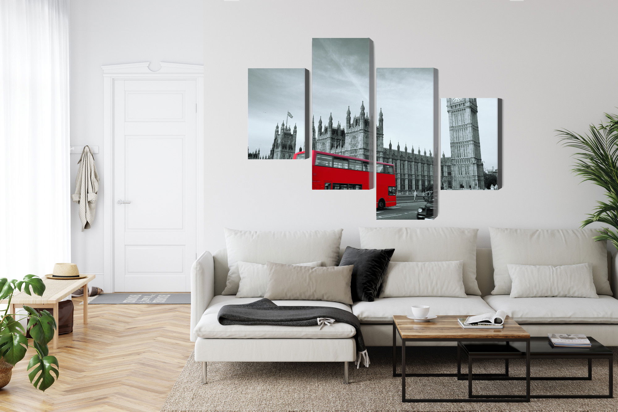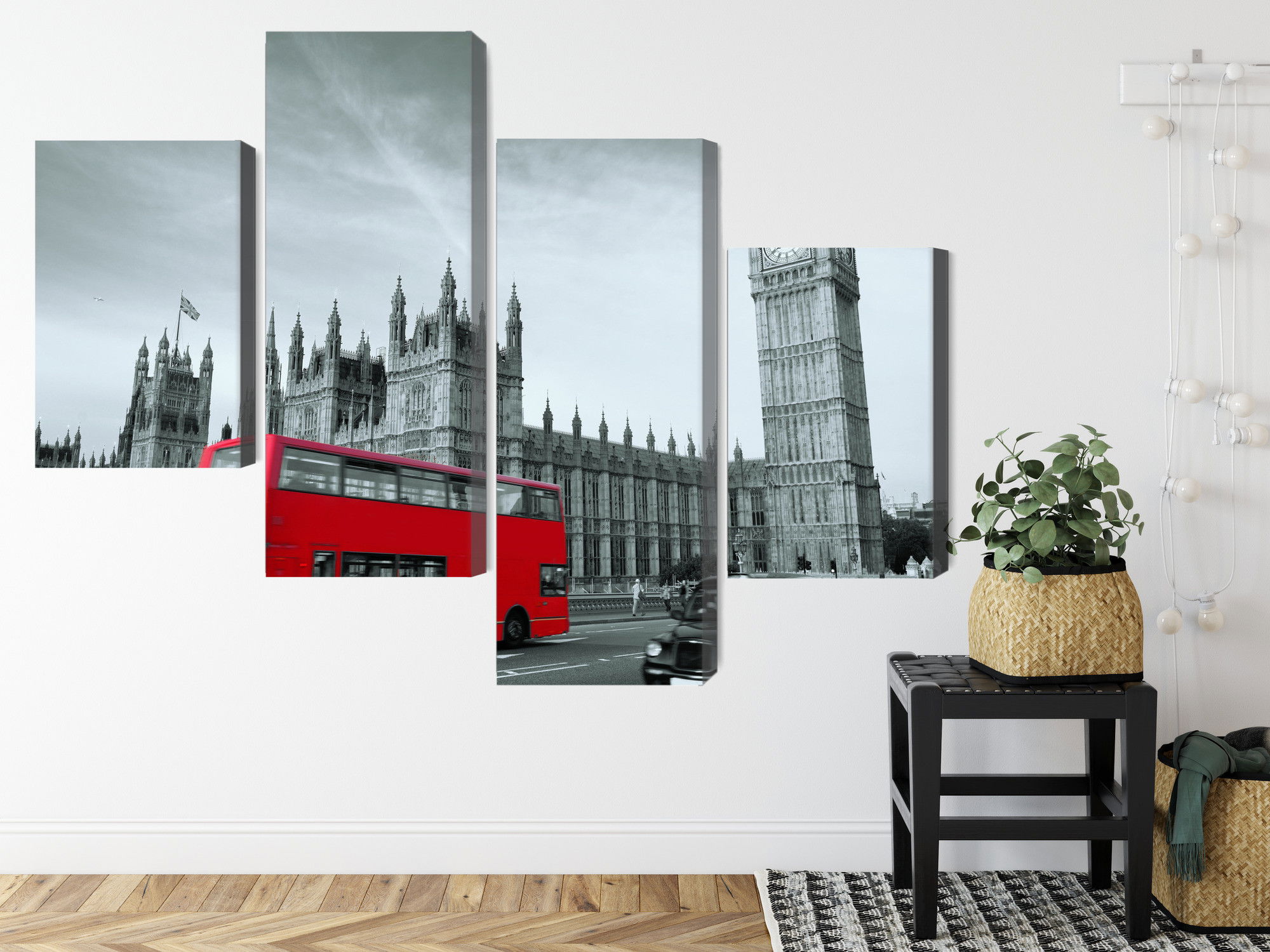 Varje tavla monteras på en massiv fururam. Format upp till 70×50 cm har en ram på 15 mm, medan format från 90×60 cm och uppåt har en ram på 20 mm. Den exakta dukspänningen gör att tavlan håller sin form över tid. Motivet Red London bus trycks runt hela ramen vilket ger ett stilrent galleriuttryck där tavlan är lika vacker från sidan som framifrån. Kombinationen av rak dukspänning, rena linjer och korrekt tryck ger en professionell finish.