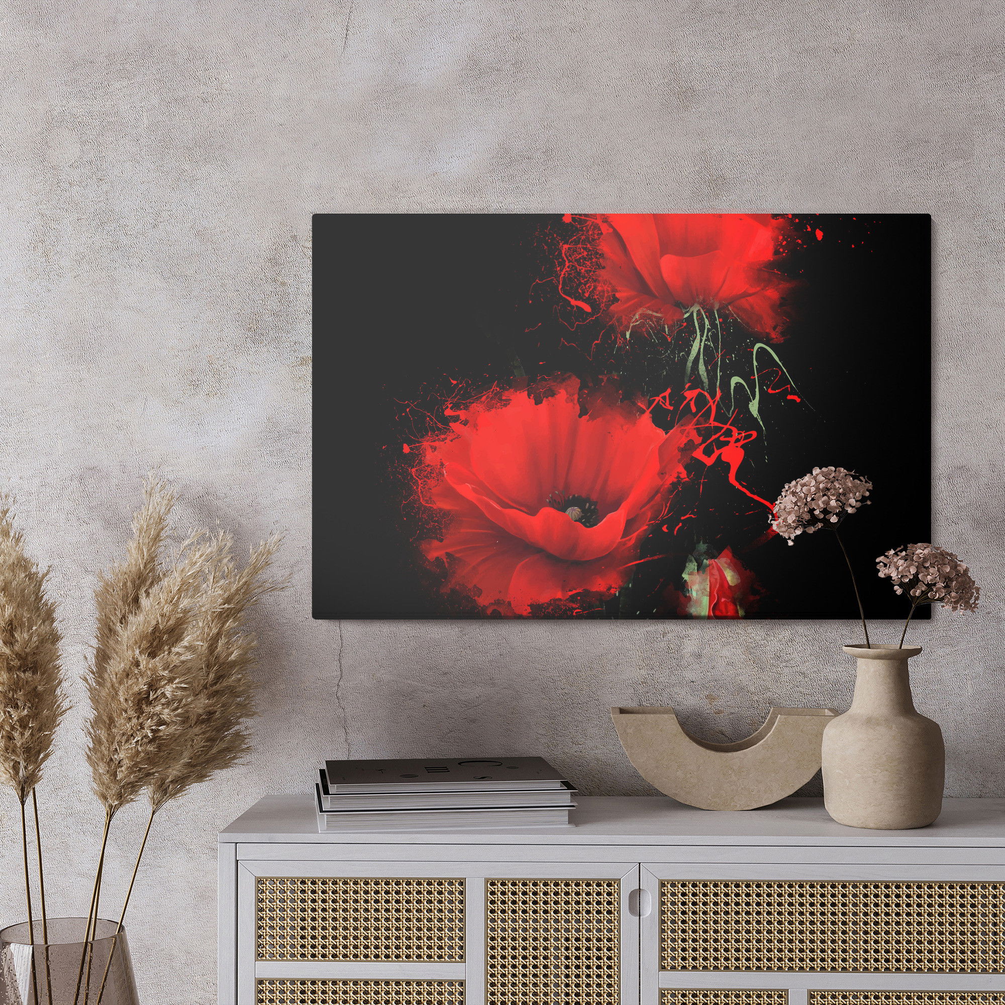 Motivet Red poppies on a black återges med hög färgprecision och detaljrikedom tack vare HP Latex-teknologi. Trycket sker med vattenbaserade, luktfria och GREENGUARD Gold-certifierade bläck som ger en upplösning på upp till 300 DPI. Färgerna är UV-beständiga och behåller sin styrka även i ljusa rum, vilket gör tavlan lämplig för både hem- och offentliga miljöer.