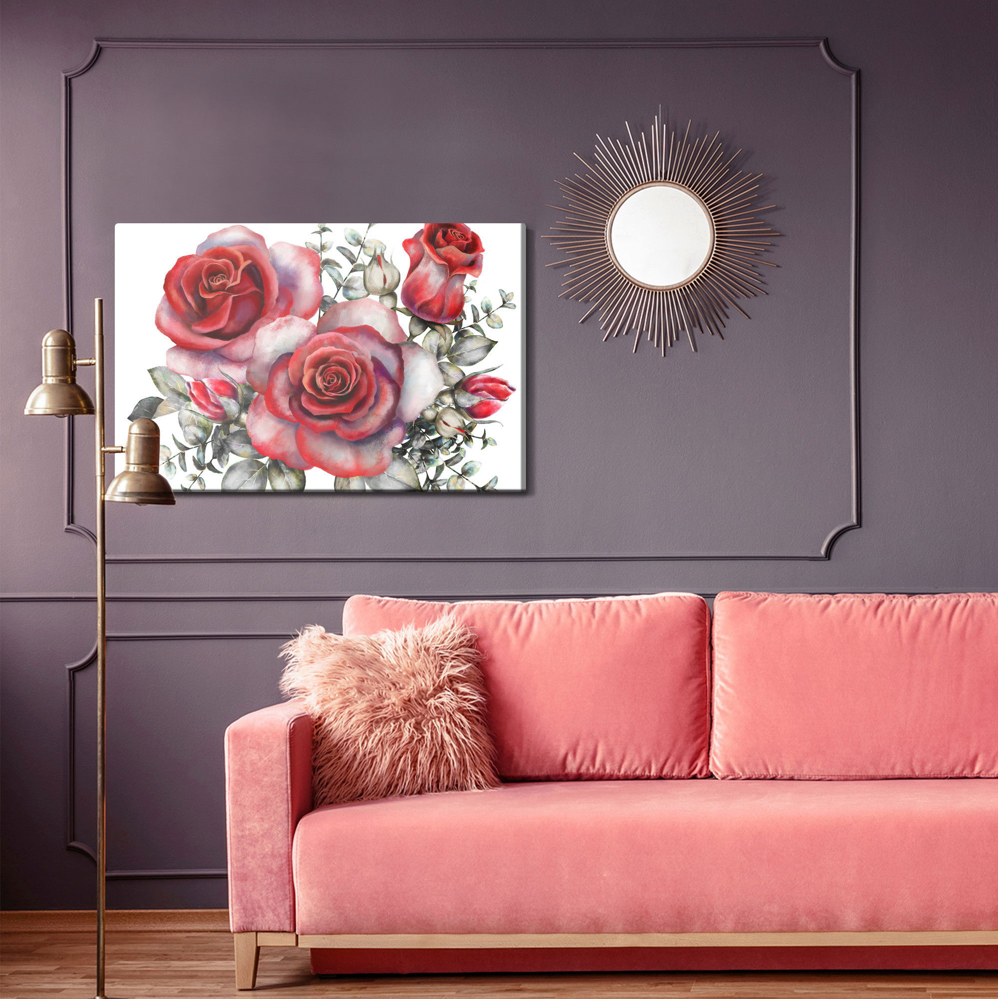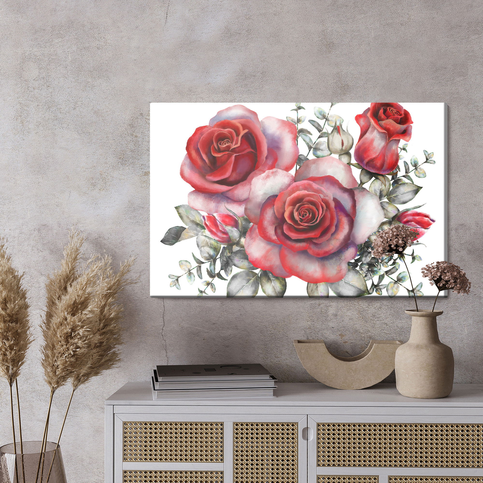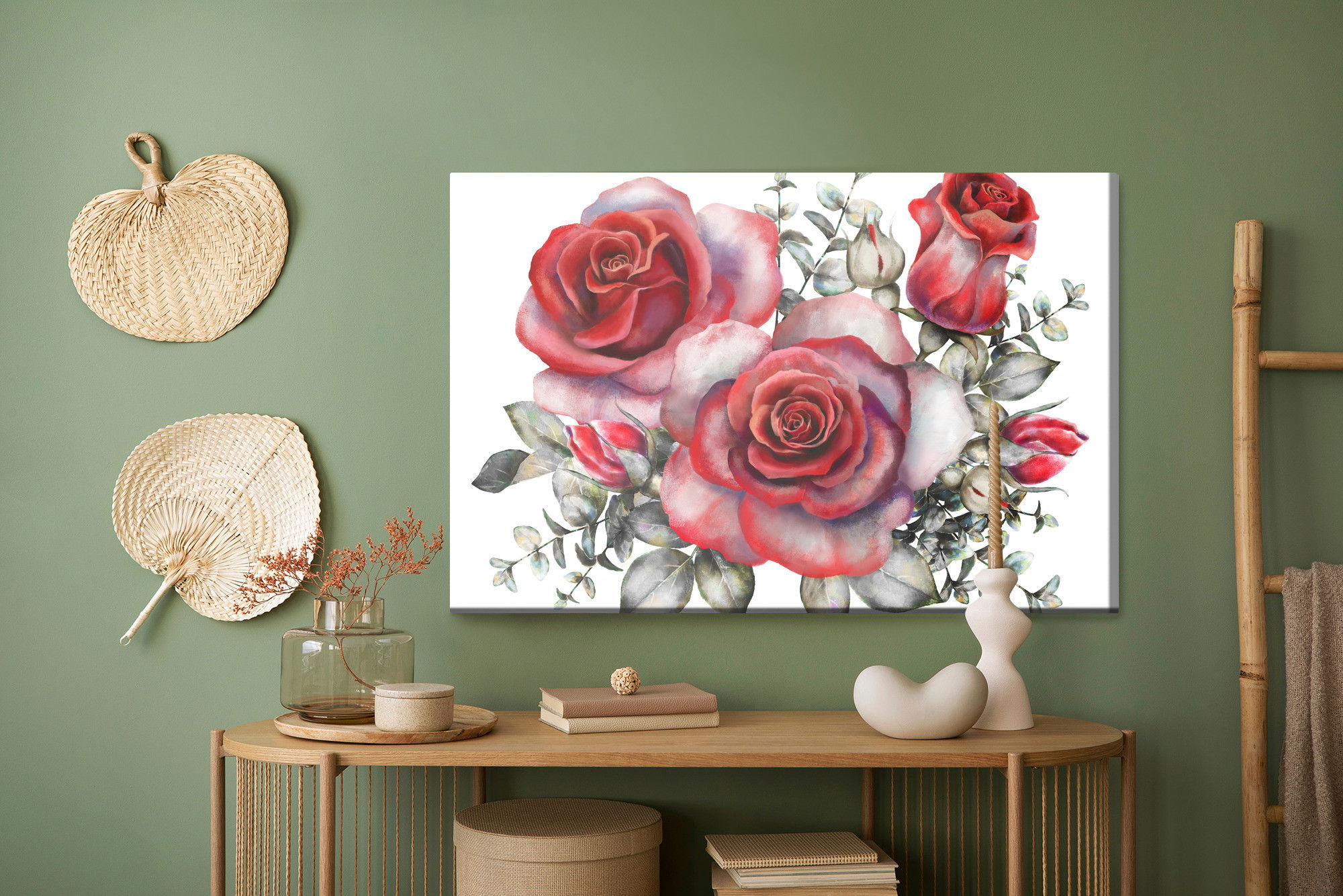 Motivet Red roses painted återges med hög färgprecision och detaljrikedom tack vare HP Latex-teknologi. Trycket sker med vattenbaserade, luktfria och GREENGUARD Gold-certifierade bläck som ger en upplösning på upp till 300 DPI. Färgerna är UV-beständiga och behåller sin styrka även i ljusa rum, vilket gör tavlan lämplig för både hem- och offentliga miljöer.