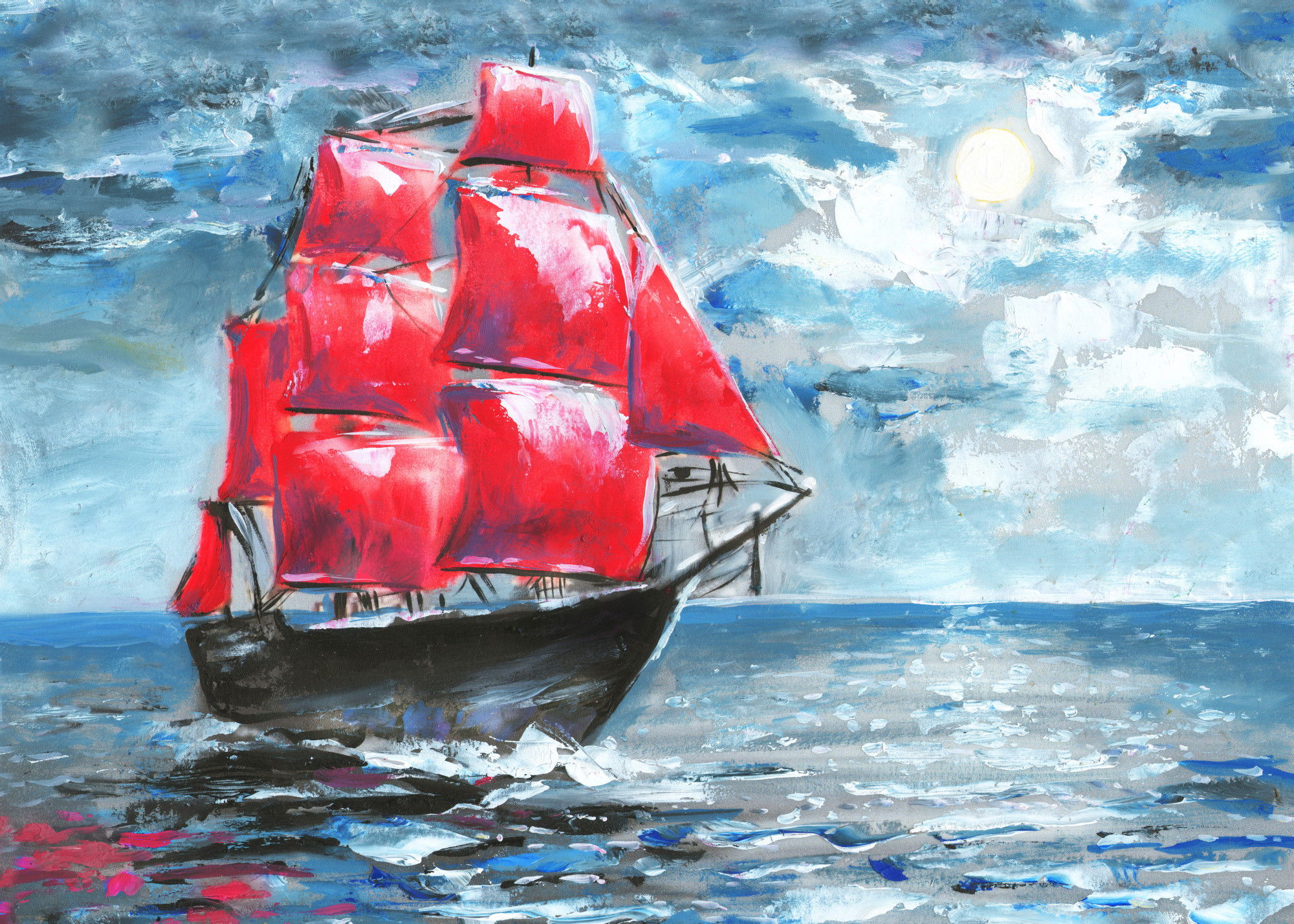 Ljuddämpande tavla – Red ship in the sea för lugnare rum och mjukare akustik