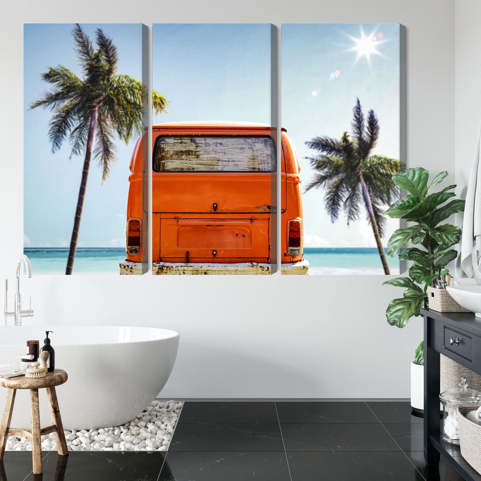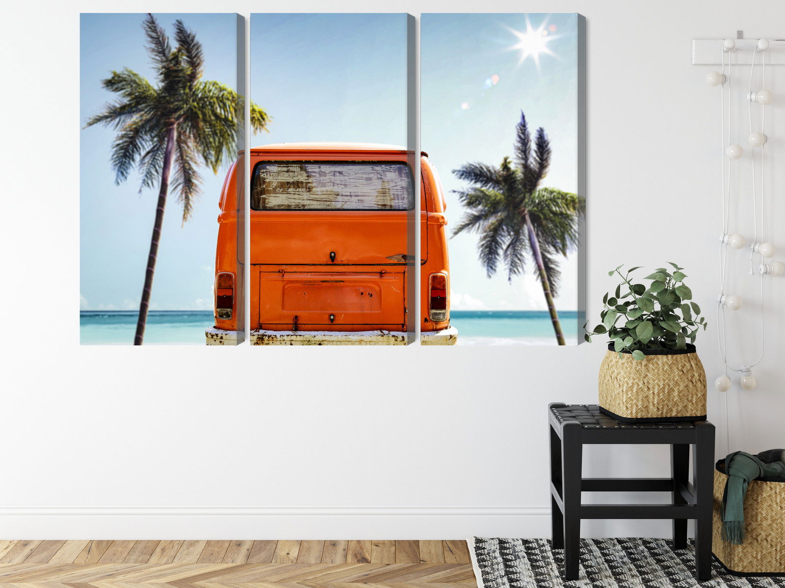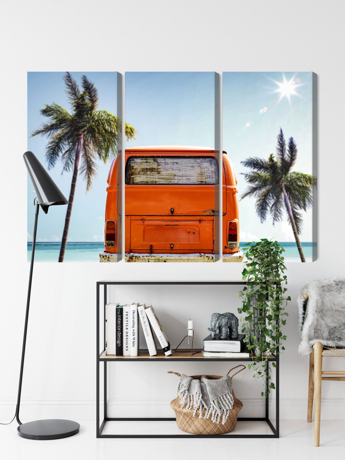 Ljuddämpande tavla – Retro car between palm trees för lugnare rum och mjukare akustik