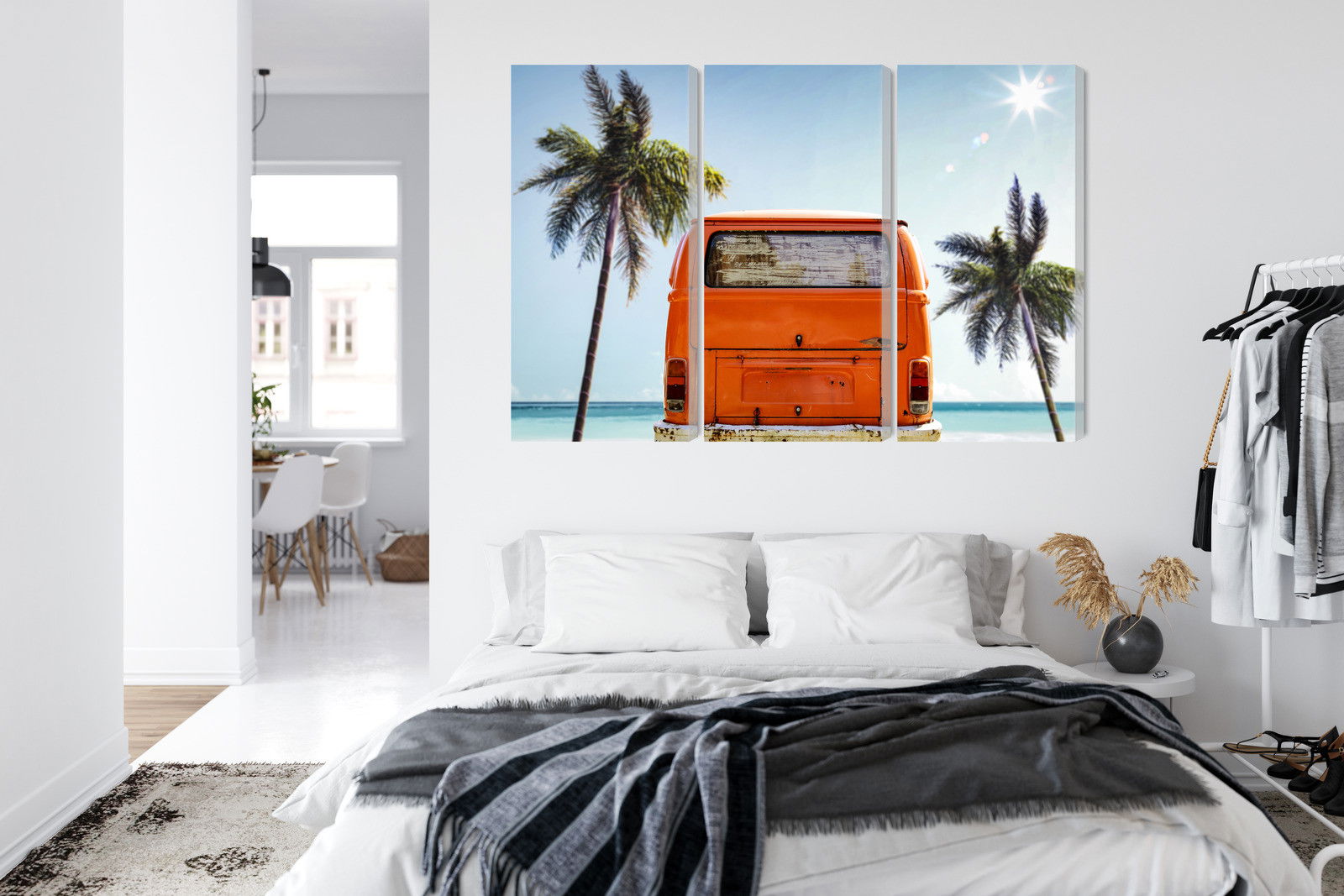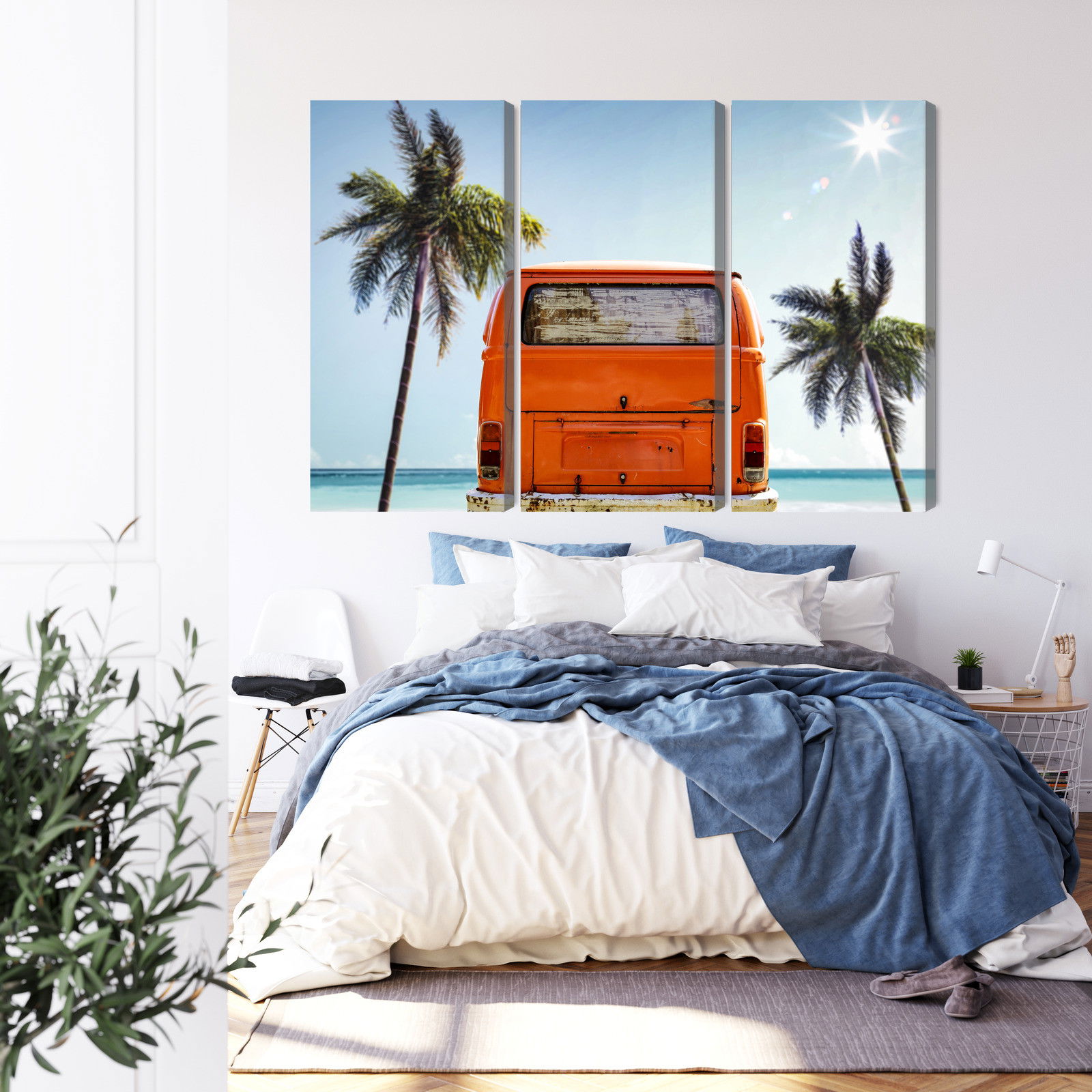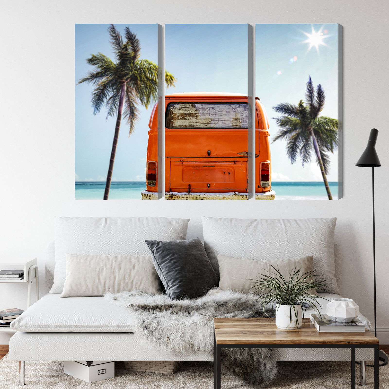Ljuddämpande tavla – Retro car between palm trees för lugnare rum och mjukare akustik
